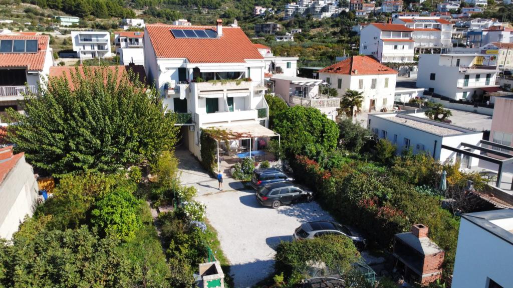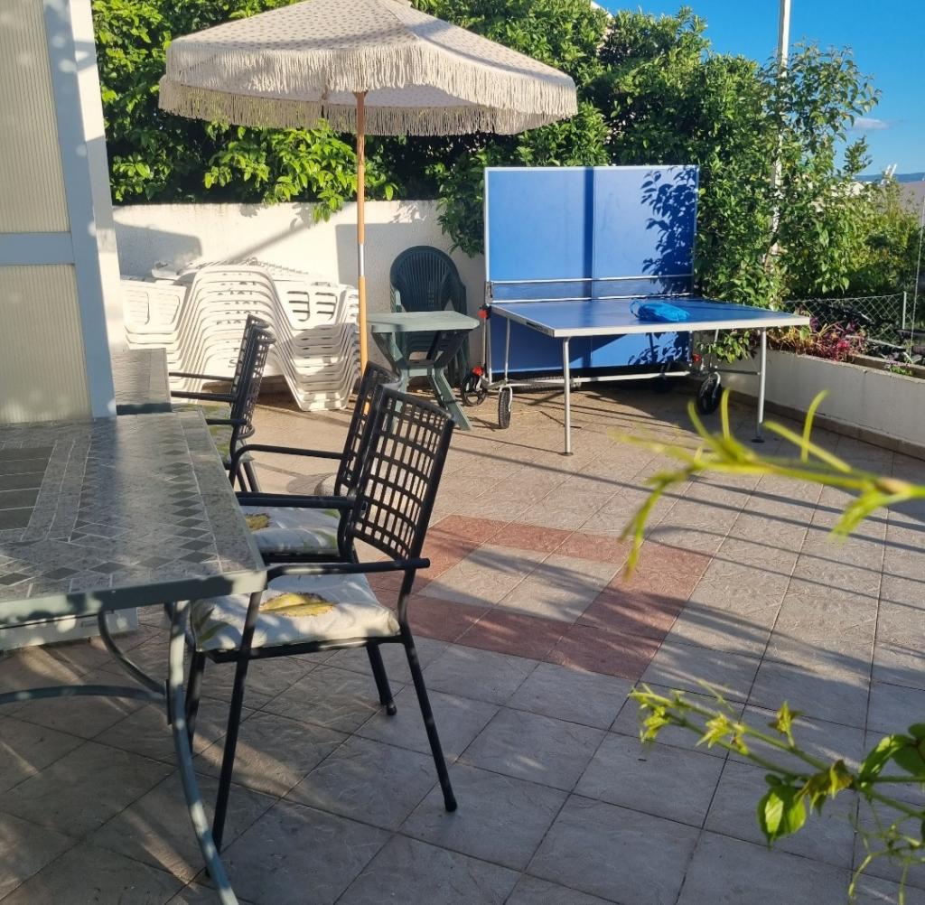 Apartments SARA are located in a family house, only 50m from the beach and the sea. Apartments Sara are located 6 km from Split towards Omiš in Podstrana (Sveti Martin) below the main road. Accommodation content: Apartments SARA are air-conditioned, have TV, free internet access, fully equipped kitchens. Guests of Apartments SARA have access to a grill and a gazebo in the yard. The beach is 30 m away and is located below the house through the garden. There is also a small cafe on the beach. Within a radius of 100 m there are two shops, a butcher's shop, two bakeries, a pharmacy, a doctor, a pediatrician, a dentist, a beautician, three cafe bars that also offer food. There is also a children's playground on the beach below the house. Parking is provided in the private, closed parking lot of the house. Each apartment can use two deck chairs on the beach for free. Welcome to Apartments Sara
