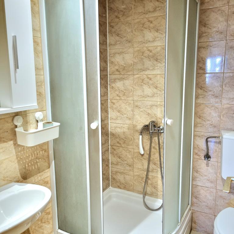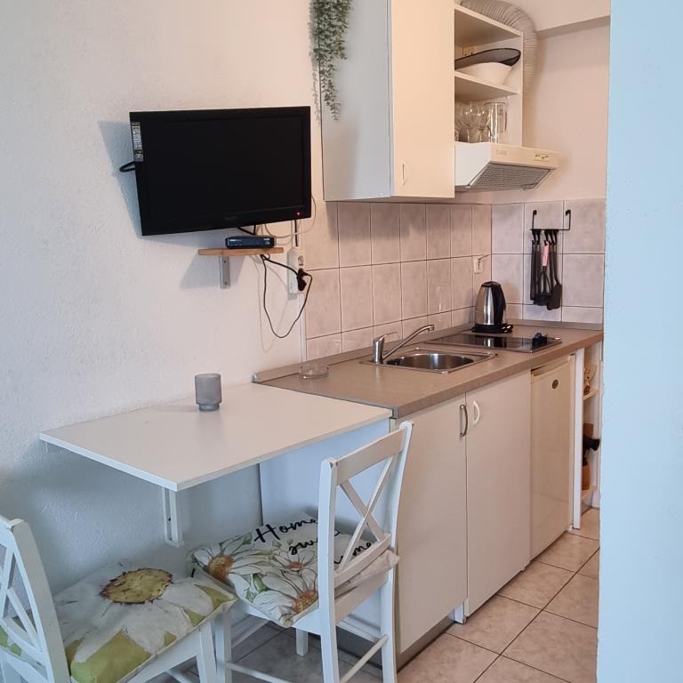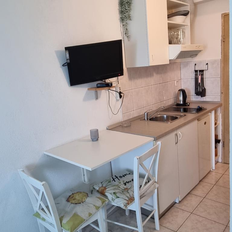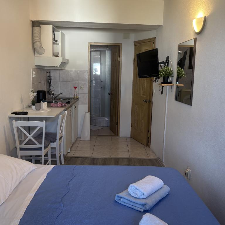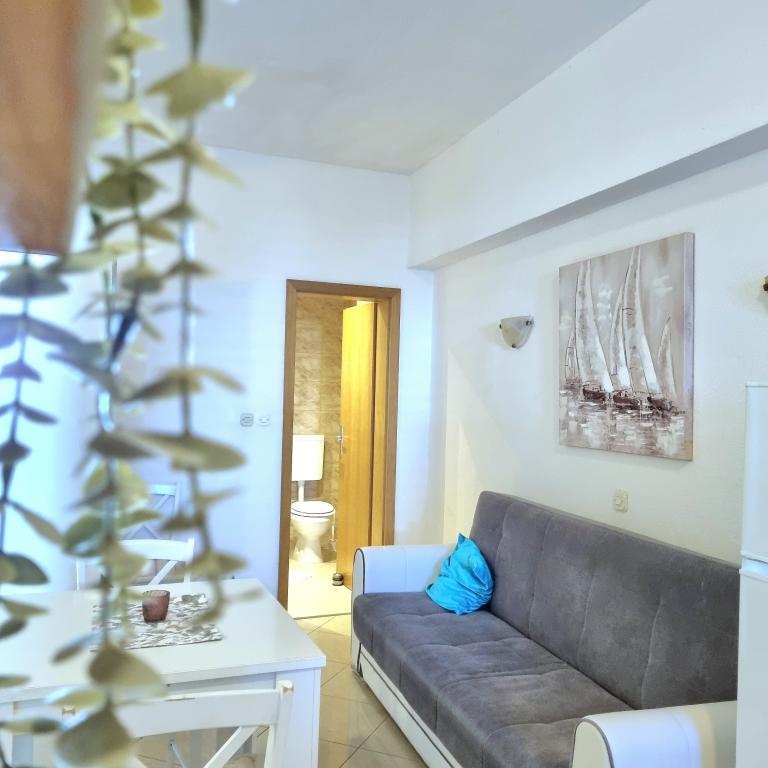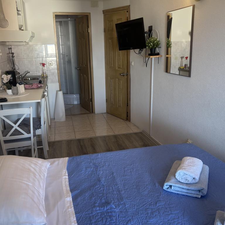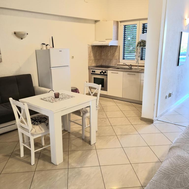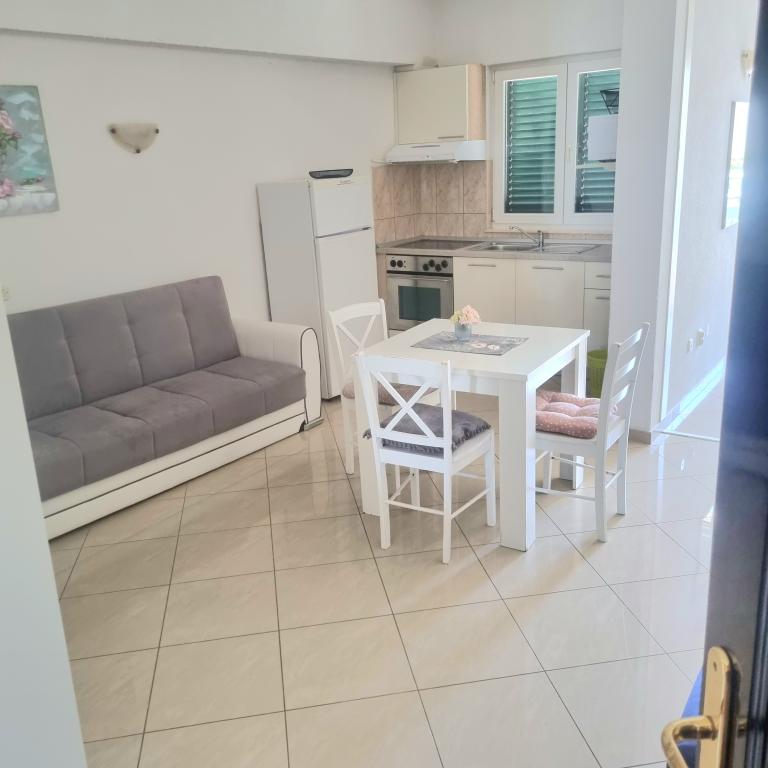 Apartments Sara are located in a perfect location and our studio where we stayed was gorgeous. You have a beach for a minute and at the beach you have your sun beds and umbrella. Right next to the beach you have a cafe and only a few minutes walk from the beach restaurant. The beach is neat and the sea is clean. Also nearby is a well-stocked bakery and bakery, so in essence you have everything basic. In the facility you also have everything basic to hand, iron, hair, towels and everything is neat and clean. The Ariela hostess is a brilliant woman who will welcome you and be at your disposal for all your needs. You essentially feel at home. Indeed, all praise and recommendation for this accommodation. You will want to return again