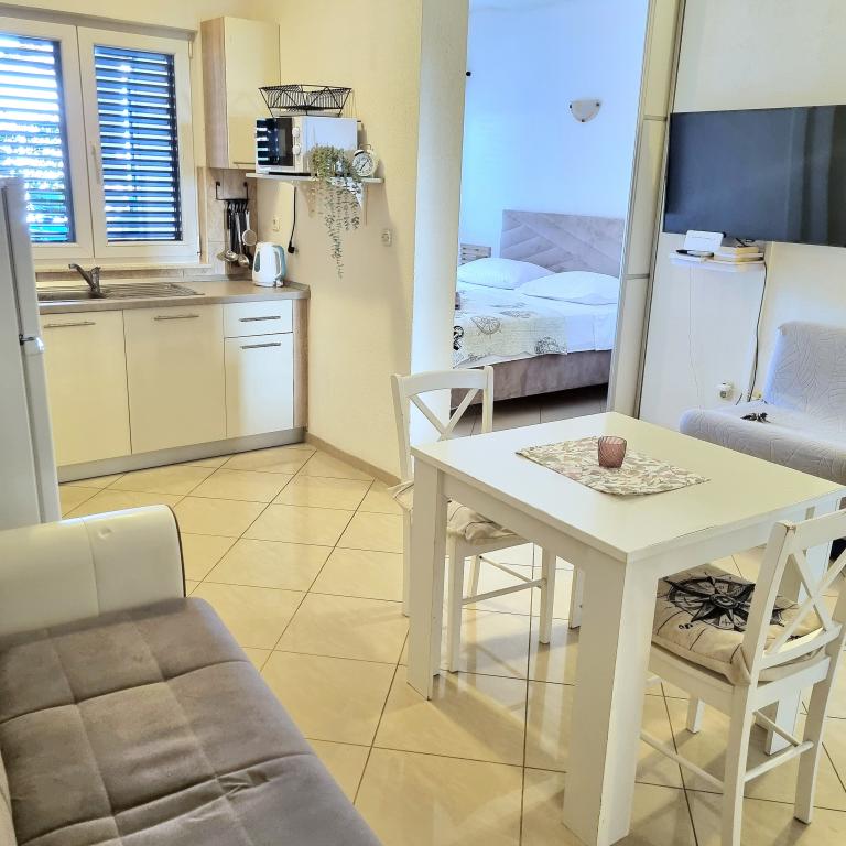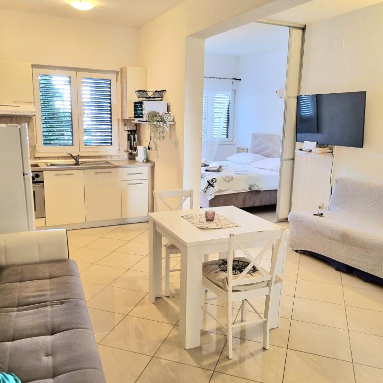 In the apartment I go regularly for 7 years and I can definitely recommend it. Great accommodation, available all you need. The owners of the apartment are really amazing people that I have very fond and who had often helped me when I needed it. Great home atmosphere ..... Apartment close to the sea, the beach is safe, can ride safely with children (and it is small). Beautifully clean sea .... beach bar where you can sit back .... I have met here only with friendly people and incredible comfort and friendliness ....