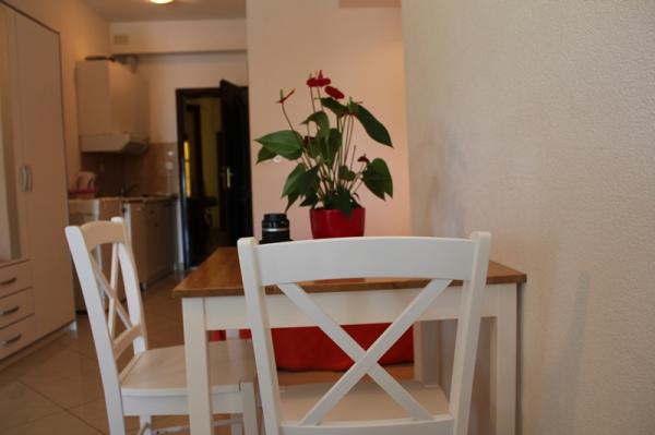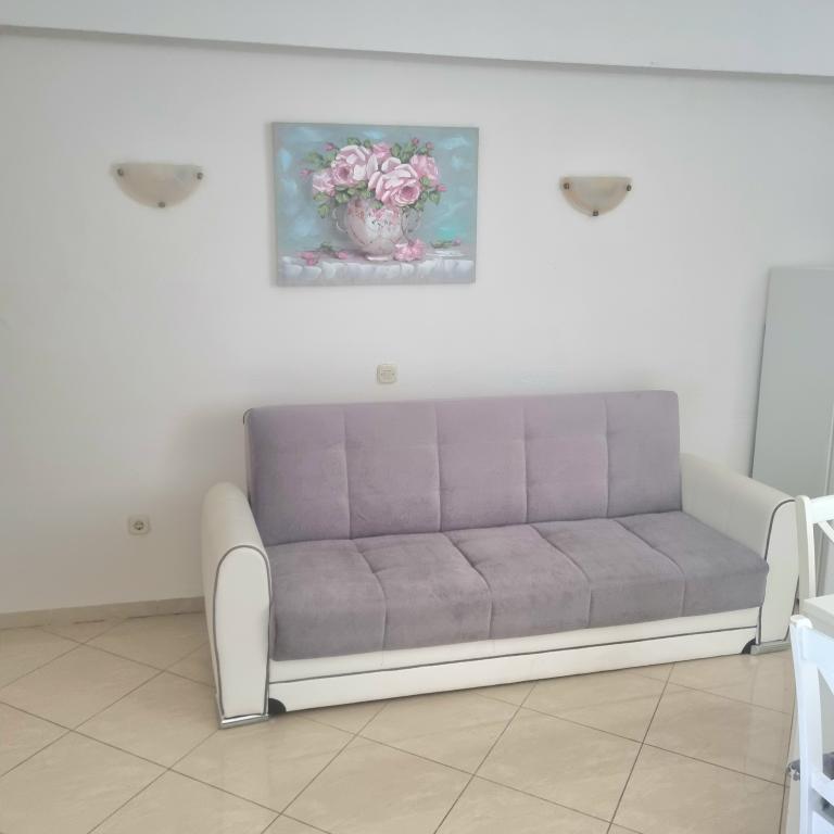 The hosts are very kind and hospitable people, always willing to come out to meet guests, advise and assist in case of any problem. The apartment has an excellent location. It is a short walk from the beach. Clean and equipped with everything necessary. At the beach (in the price) are available loungers and parasols. The bar is next to the beach, where could always sit at rest with coffee. Grocery store, a short walk from the apartment, post office - exchange office is nearby. The total value of vacation as very successful, because here therefore pleased to come back every year. :-)