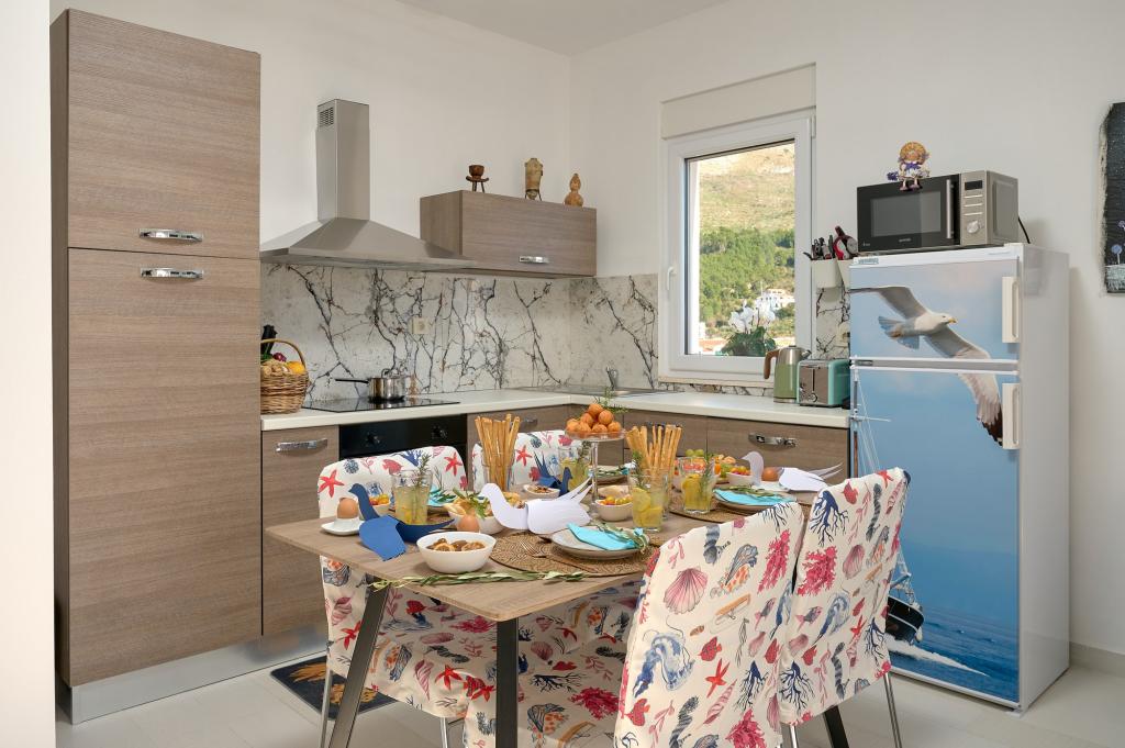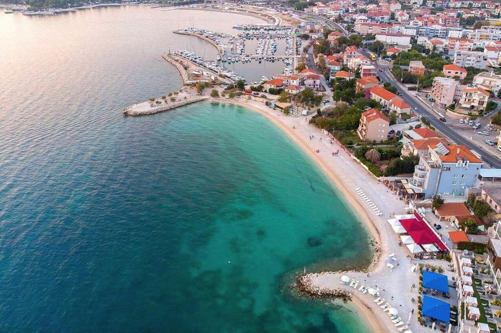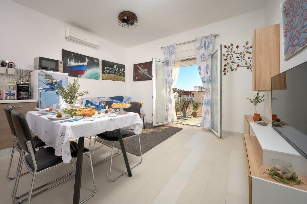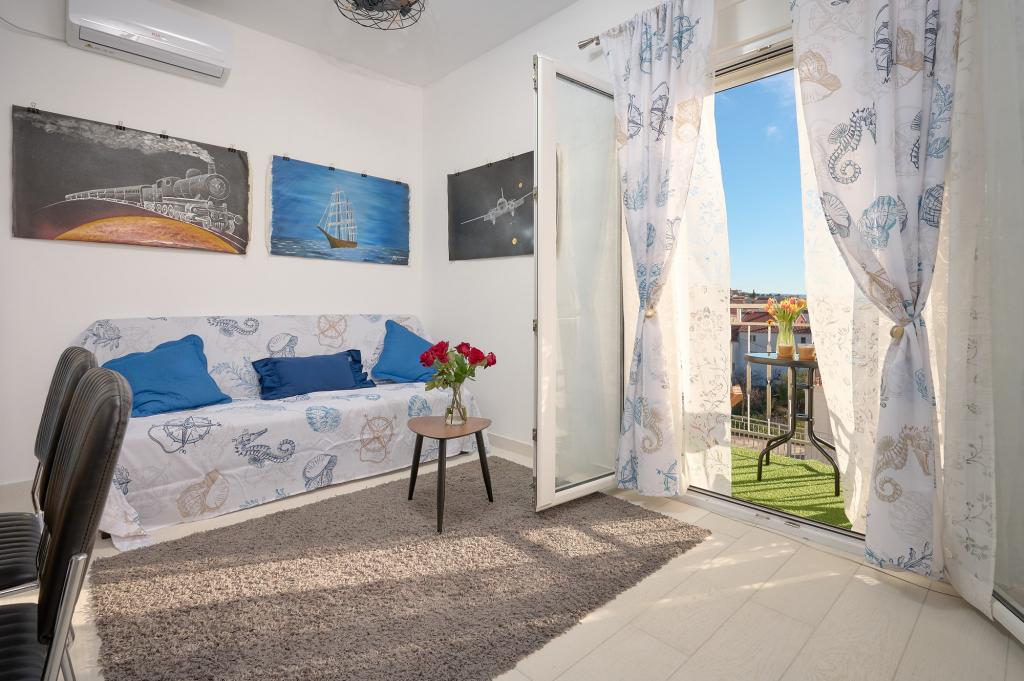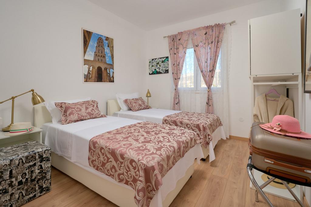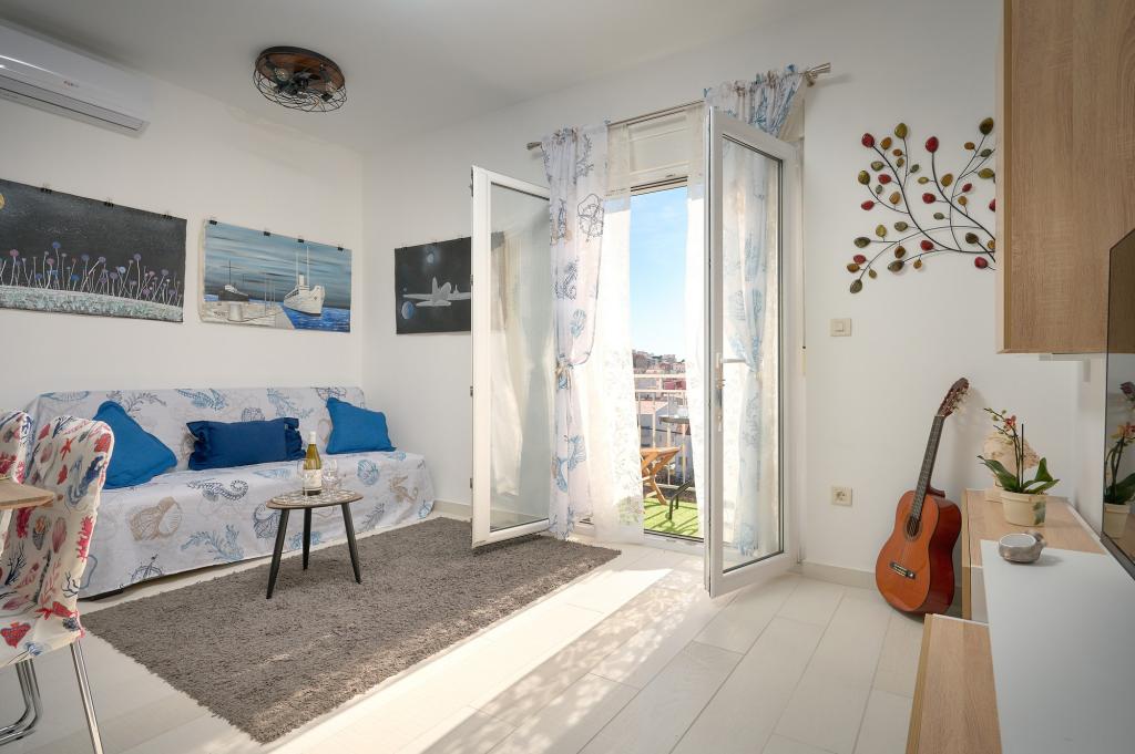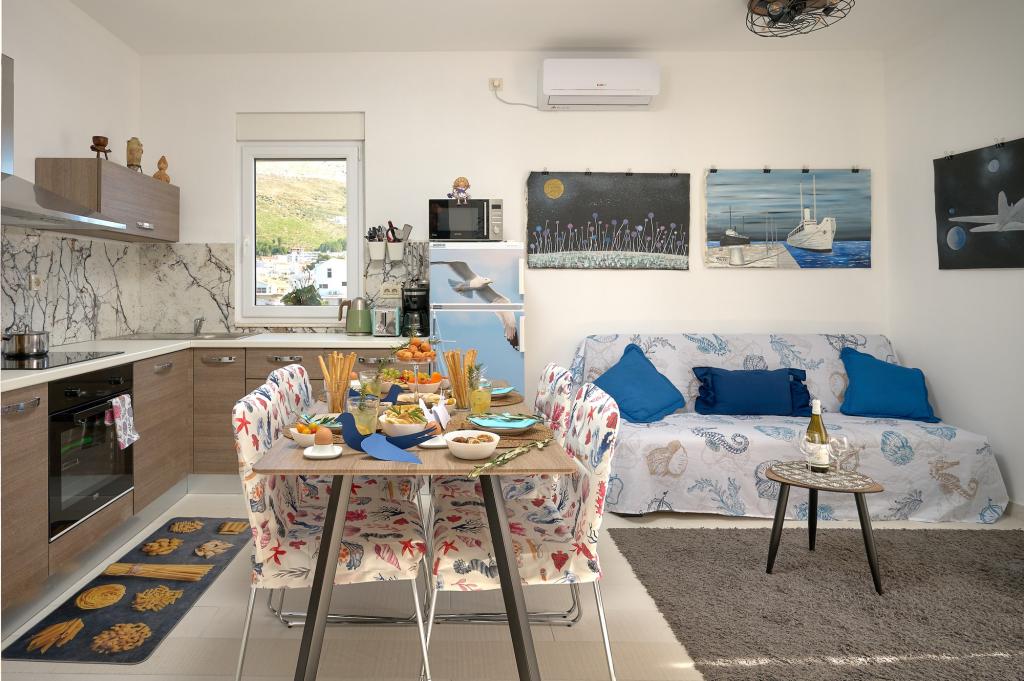 Three newly renovated apartments "Sita" are located in Podstrana, right next to the sea. This seaside oasis, which boasts pristine beaches and crystal clear sea, is the perfect destination for families and all those looking for a peaceful haven in a small town with the excitement and cultural richness of nearby Split. Each of our apartments exudes airiness and comfort, offering two bedrooms, a modern bathroom, a functional kitchen with an integrated living room, and a private balcony with a view of the sea. For your undisturbed vacation, each apartment is carefully designed and equipped with modern facilities: air conditioning, WiFi, TV. Car parking is within the property, while the proximity of restaurants, shops, pebble beaches and sports fields offers countless opportunities for exploration and activities.