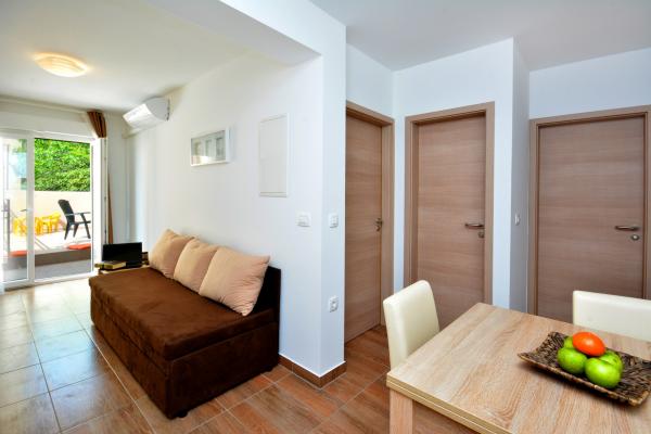 Newly built, modernly equipped apartment consisting of 2 bedrooms, large living room, kitchen and beautiful sun terrace of 50m2 with all accompanying amenities. The apartment will satisfy all your expectations for a pleasant vacation.