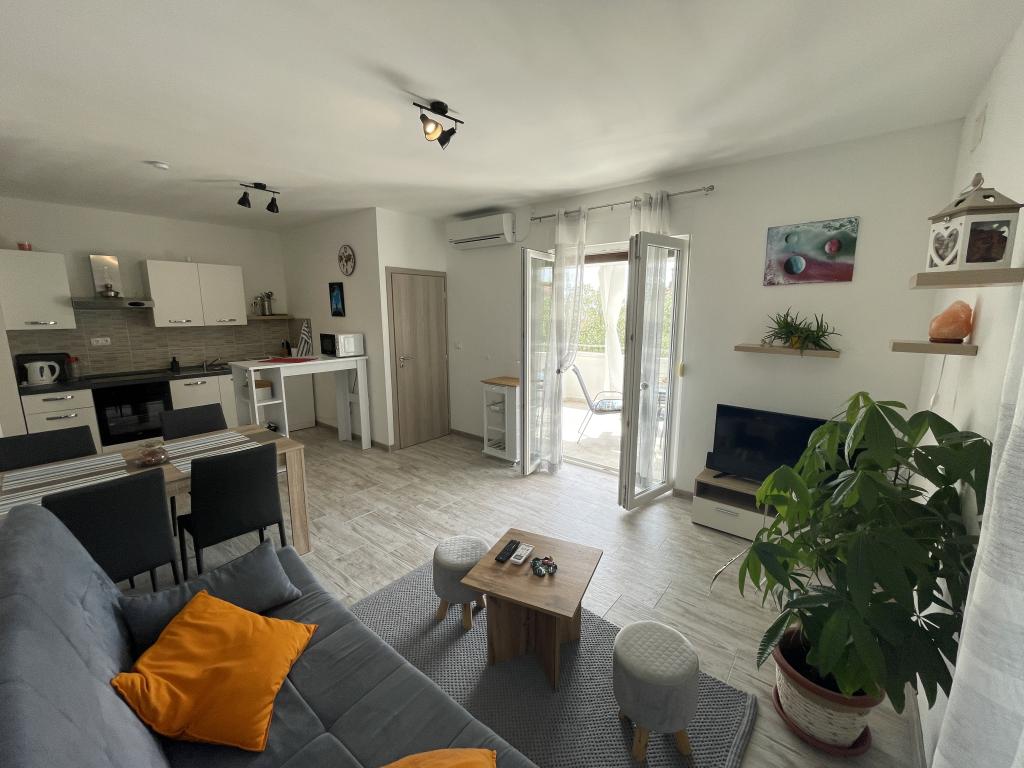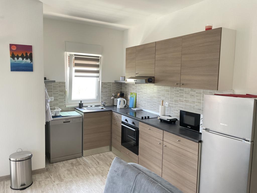 New modern apartments in Poljana, Ugljan Island, Zadar County, 100 meters from the beach, shop, restaurant, cafe are 200 meters from the apartment, each apartment has 60m2, two bedrooms, a living room and a fully equipped kitchen with a large balcony. Ideal for lovers of walking, cycling and treeking, visiting the Sveti Mihovil Fortress 4 km away, the island of Galovac 80 meters from the mainland. The ferry port is 2.5 km away with a train schedule every hour that takes 25 minutes to Zadar.