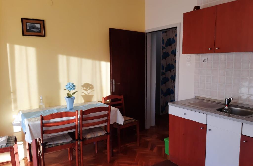 We were there for ten days, which passed like one day. The apartment was beautiful and well-equipped, we didn't miss anything. A shop and bakery nearby, you can park your car and forget about it. I really like that the place is quiet, romantic, without any noise. A monastery nearby... you don't even need a watch, you just count how many times it rings in the morning. Swimming on the main beach, nicely arranged, but we had a small dog and they were in the "Uhilič bay" the whole time, a little away from the crowds - but almost alone (the beach is rocky, shady, and the sea is warm. Walks by the sea, along winding streets... or in nature - among the pine trees by the sea or through olive groves. Mrs. Mandica told us on the first day to feel at home... and we really got that impression. She even baked us a fruit tart, and a jar of fig jam to take home. Thank you, it was a wonderful vacation.