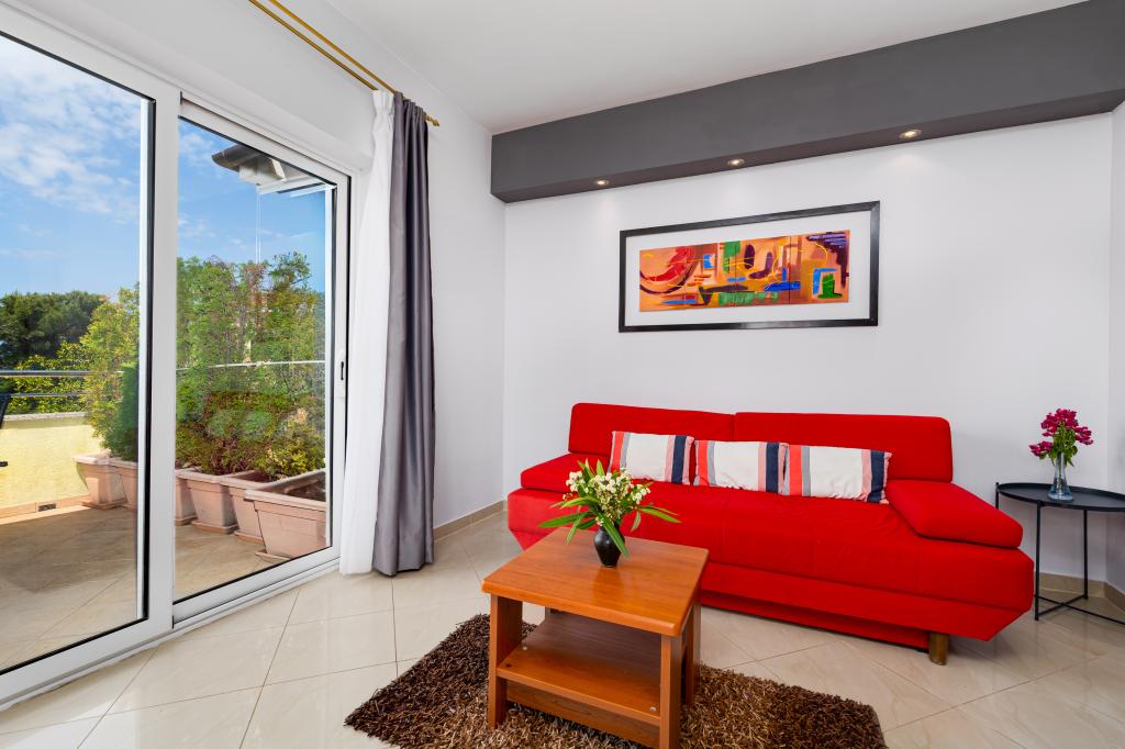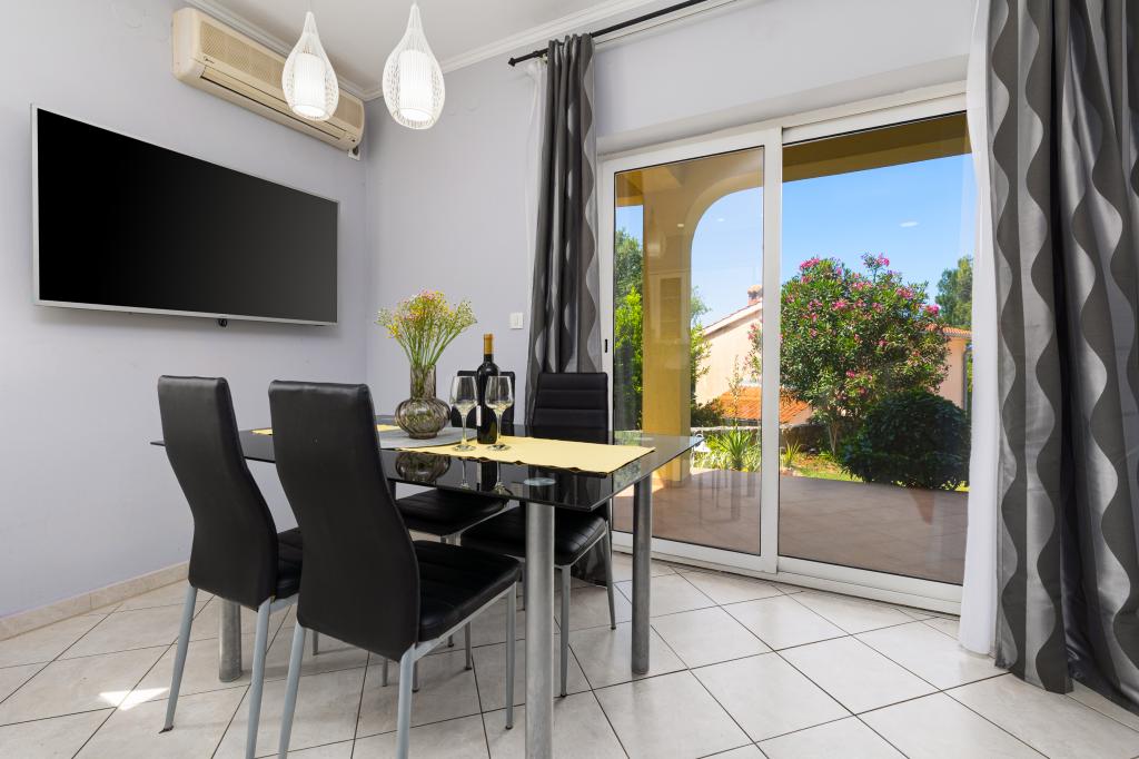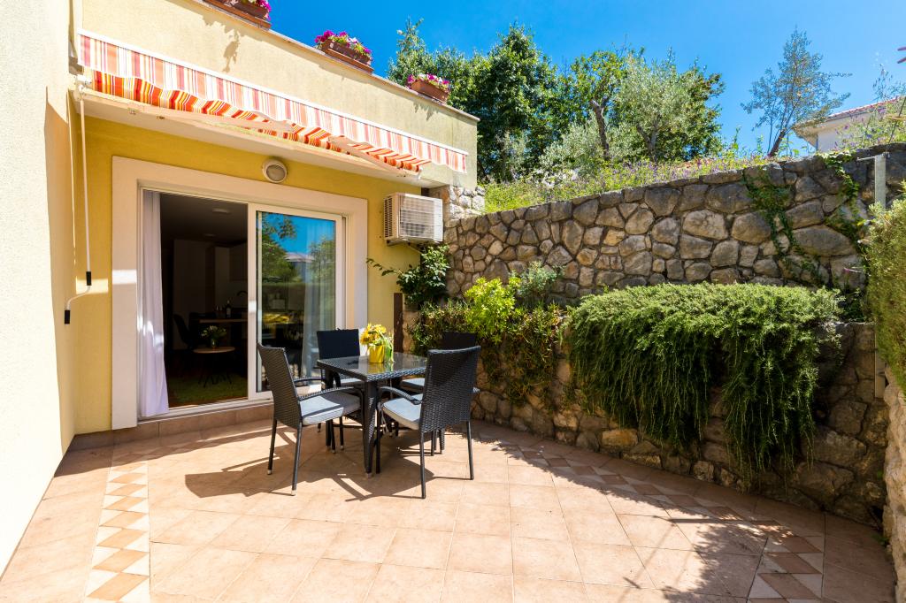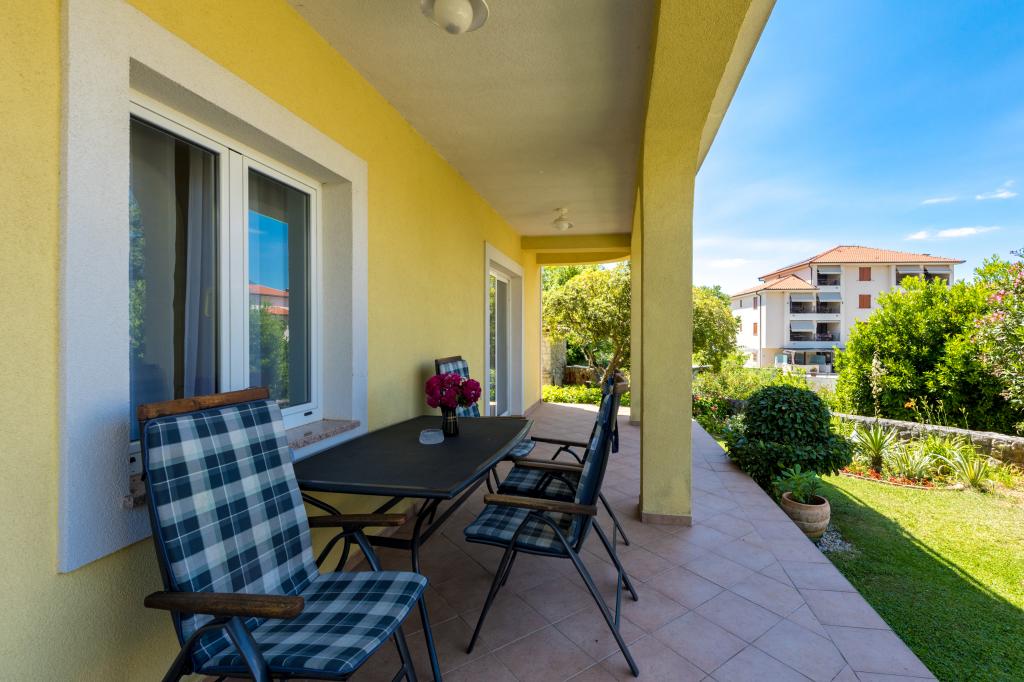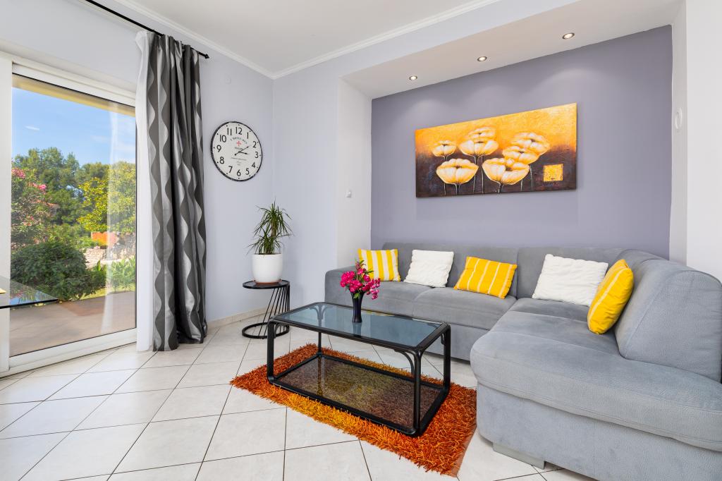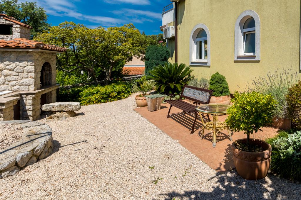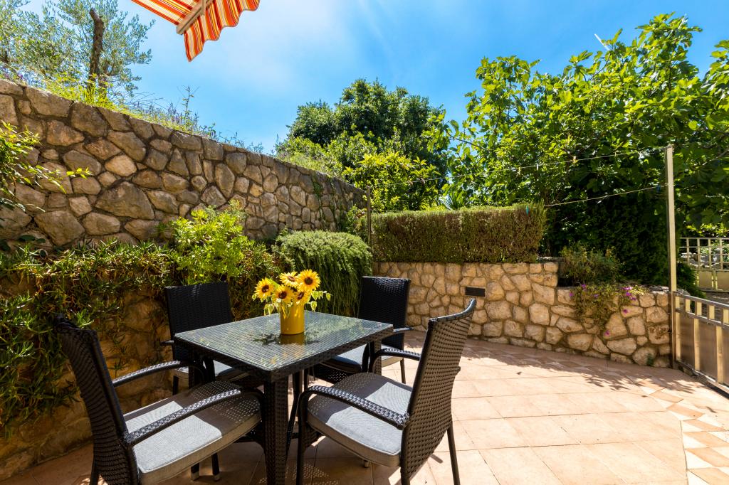 A cozy and tidy house located in a quiet environment, with a beautifully landscaped garden and a covered terrace ideal for outdoor living. The garden is horticulturally decorated, with a lawn, flowers and Mediterranean plants, and provides privacy and a pleasant atmosphere for rest and relaxation. The restaurant and the beach are only a two-minute walk from the house.