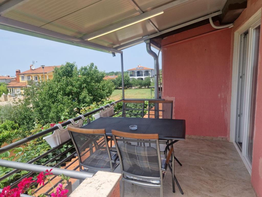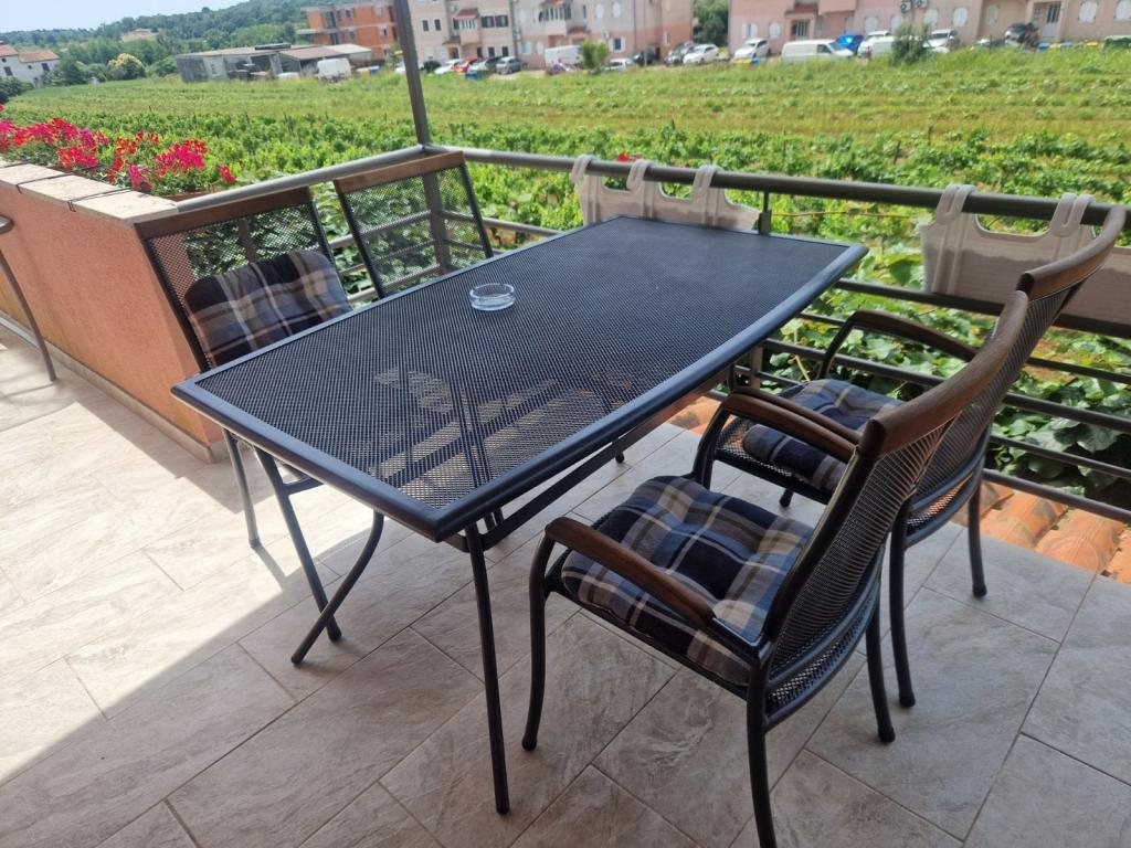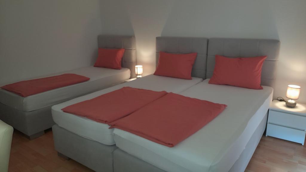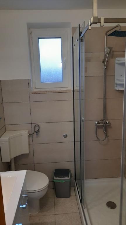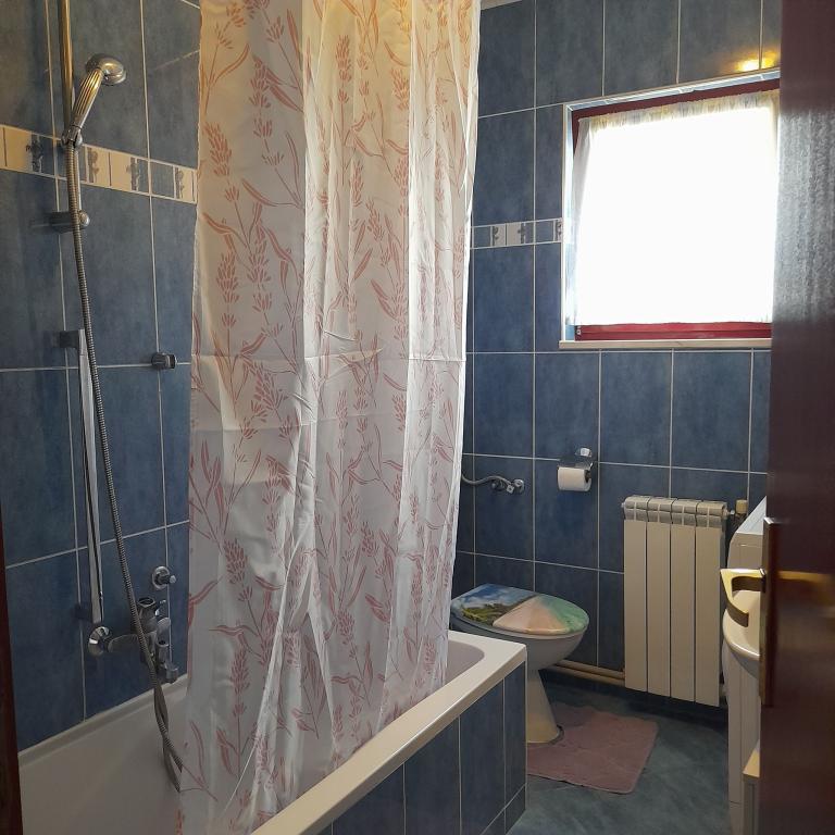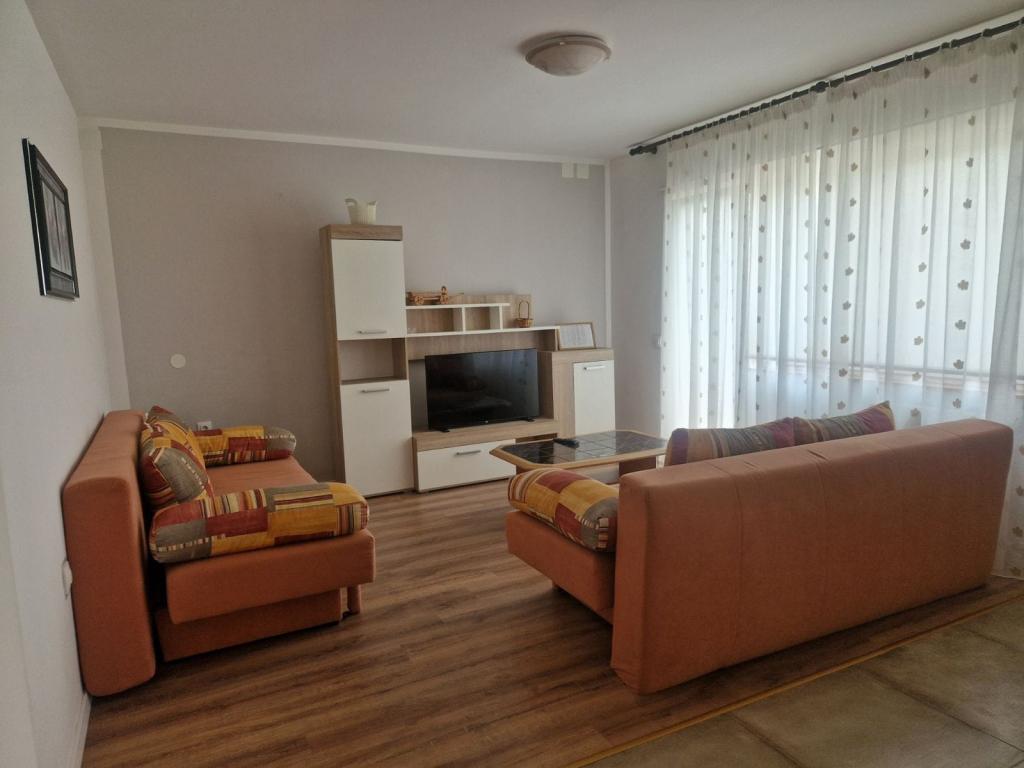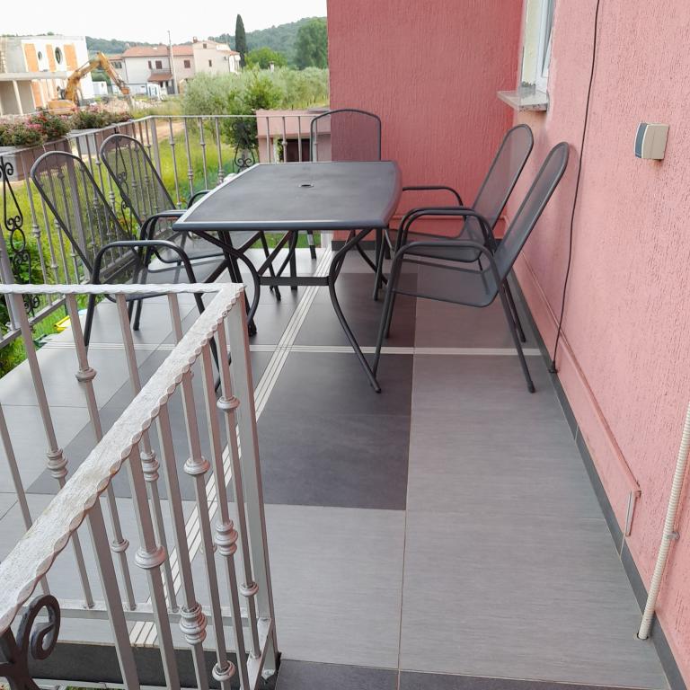 Property description Unit description A1 - this apartment is located at the same entrance and on the same floor as the 2-bedroom apartment, so it is ideal if a group of ten people is coming. When entering this apartment, you have a living area with TV/SAT. From it you enter a double bedroom as well as a second walk-through room. The hallway leads straight to the kitchen, bathroom and third bedroom which has access to the terrace. The apartment is designed for 6 people. Terraces: 1 Balconies: 1 Living room with kitchen: 1 Bedrooms: 3 Bathroom: 1 Apartment area: 75 m² A2 - this apartment is located at a separate entrance on the first floor. The large living room with dining room and kitchen has access to a terrace facing southwest. A bedroom with a double bed and a small room with two separate beds as well as two sofa beds in the living room allow a comfortable stay for a larger family of 4-6 people, as well as younger people. Terrace: 1 Balconies: 1 Living room with kitchen: 1 Bedrooms: 2 Bathroom: 1 Apartment area: 85 m² A3 - apartment also on the ground floor with a terrace. It has one triple room, and a kitchen with TV/SAT and a sofa bed, a shower bathroom. Ideal for a couple with 2 small children. Terrace: 1 Living room with kitchen: 1 Bedroom: 1 Bathroom: 1 Apartment area: 35 m² A4 - Studio apartment is located on the ground floor and has access to a terrace. It consists of one space that has a mini kitchen, a sofa bed for 2 people, TV/SAT and a shower bathroom. Ideal for a younger couple. Terrace: 1 Living room with kitchen: 1 Bathroom: 1 Apartment area: 24 m2 Special discounts are available for guests who stay with us for longer than 14 days. All pets are allowed. Nearby: beach - pebble, beach - pebble and sandy, beach - nudist beach Amenities within the accommodation: internet, wi-fi, parking by the property, barbecue area Children: swing, cot Meal: breakfast, meals not included Services: laundry, calling a taxi service Kitchen: electric oven