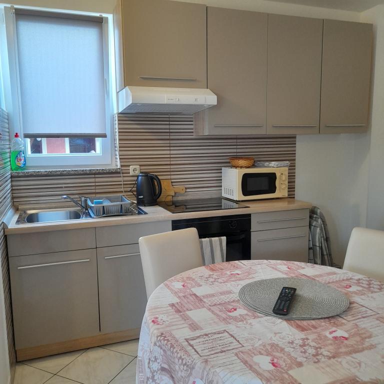 This year we stayed with Mrs. Dragica, an extremely kind and warm landlady, as well as her wonderful landlady daughter for 10. The accommodation is extremely beautiful, with a modern design, the beds are excellent, the space is clean and tidy, my favorite part was that the accommodation has everything... Lots of towels, a washing machine, which was extremely important. Excellent air conditioning, everything was pleasant and very nice.. We are happy to return at the first opportunity The location of the apartment is very quiet and pleasant The landlady is great.