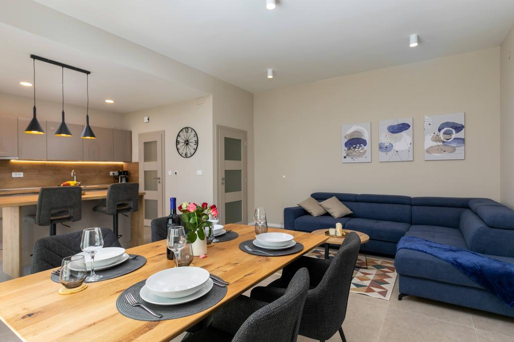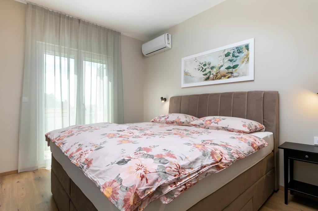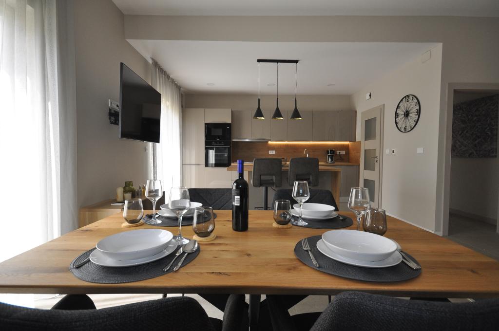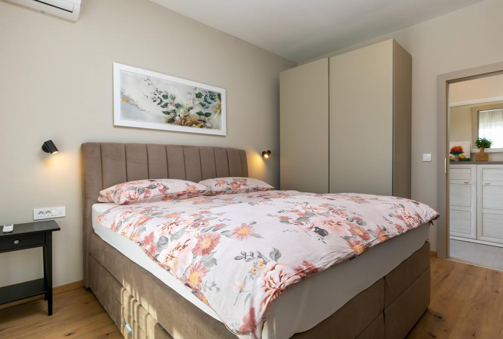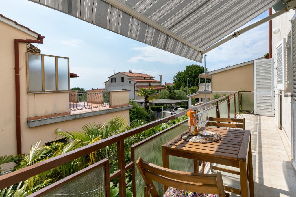 Poreč, Apartment Nona Ana, newly renovated apartment with one bedroom, bathroom, spacious living room with dining room and kitchen, and balcony. The kitchen is equipped with a dishwasher, a microwave oven, an oven, a filter coffee machine and an espresso coffee machine, a kettle and a toaster. The apartment also has a TV-SAT, Wi-Fi, a hair dryer, an iron for ironing clothes, and a washing machine in the bathroom. The apartment is heated and cooled via an inverter air conditioner located in the living room and in the bedroom. The apartment is located on the 1st floor. Parking space provided in the yard. The distance from the sea is only 900m-1000m, the distance from the market 500m, the restaurant 600m, the distance from the center 2500m.