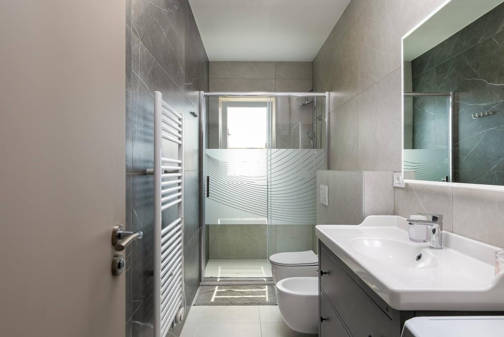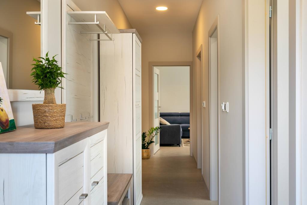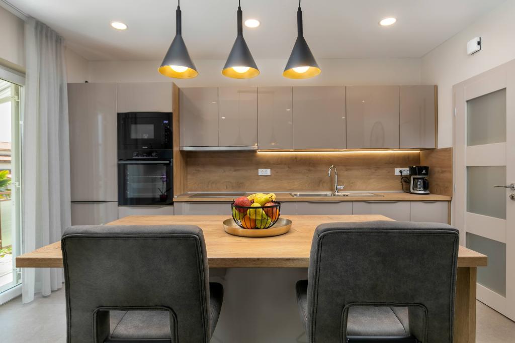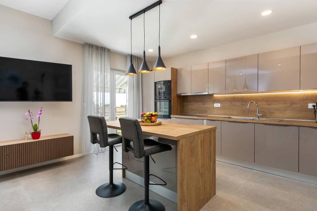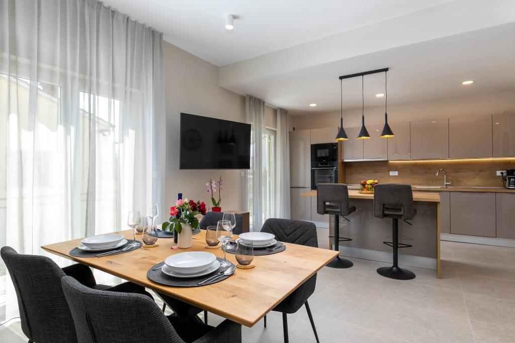 Poreč, Apartment Nona Ana, newly renovated apartment with one bedroom, bathroom, spacious living room with dining room and kitchen, and balcony. The kitchen is equipped with a dishwasher, a microwave oven, an oven, a filter coffee machine and an espresso coffee machine, a kettle and a toaster. The apartment also has a TV-SAT, Wi-Fi, a hair dryer, an iron for ironing clothes, and a washing machine in the bathroom. The apartment is heated and cooled via an inverter air conditioner located in the living room and in the bedroom. The apartment is located on the 1st floor. Parking space provided in the yard. The distance from the sea is only 900m-1000m, the distance from the market 500m, the restaurant 600m, the distance from the center 2500m.