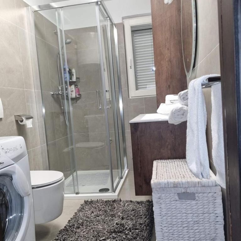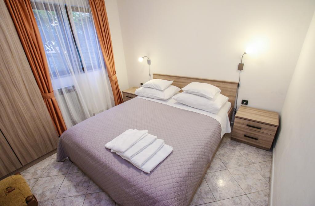 Apartments in a private house near the sea and the center. The apartment is located on the ground floor and has 2 bedrooms, a living room with an extra bed, a kitchen, a bathroom and a terrace. This accommodation has an ideal location because you can go everywhere on foot, 2 minutes to the beach and three minutes to the city center. The shop is only 50 m from the apartment. Just take your toothbrush and leave everything else to us!