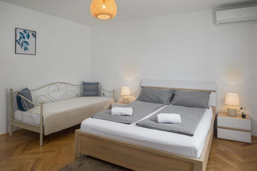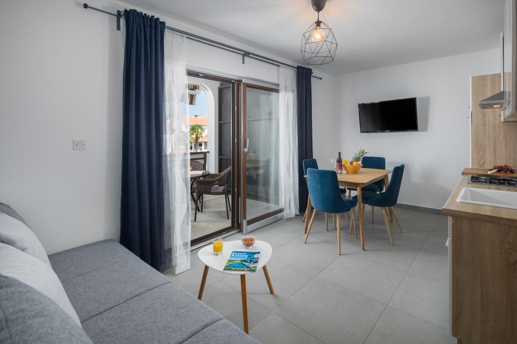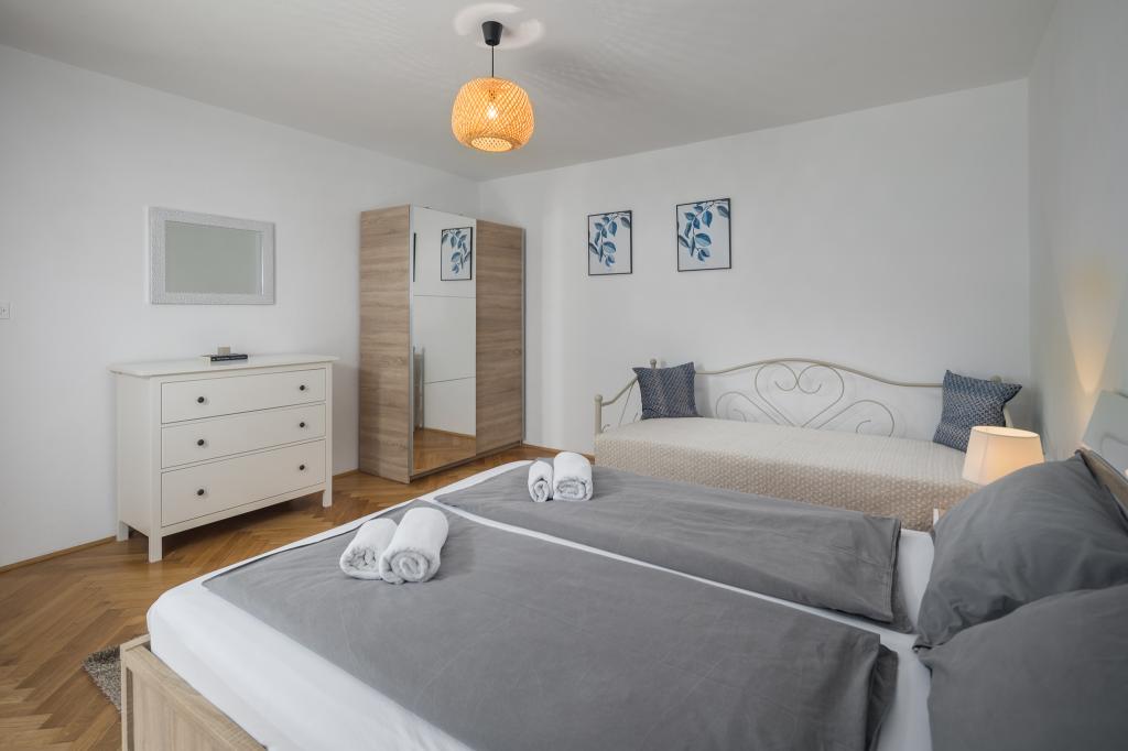 Nice, spacious and clean apartment. It has 3 bedrooms and a larger living room with a kitchen for socializing. There is a beautiful view of the sea from the terrace. The owner is friendly and helpful. Good location of the apartment, the larger Market Plodine is in the immediate vicinity, and the center of Poreč is also not far away.