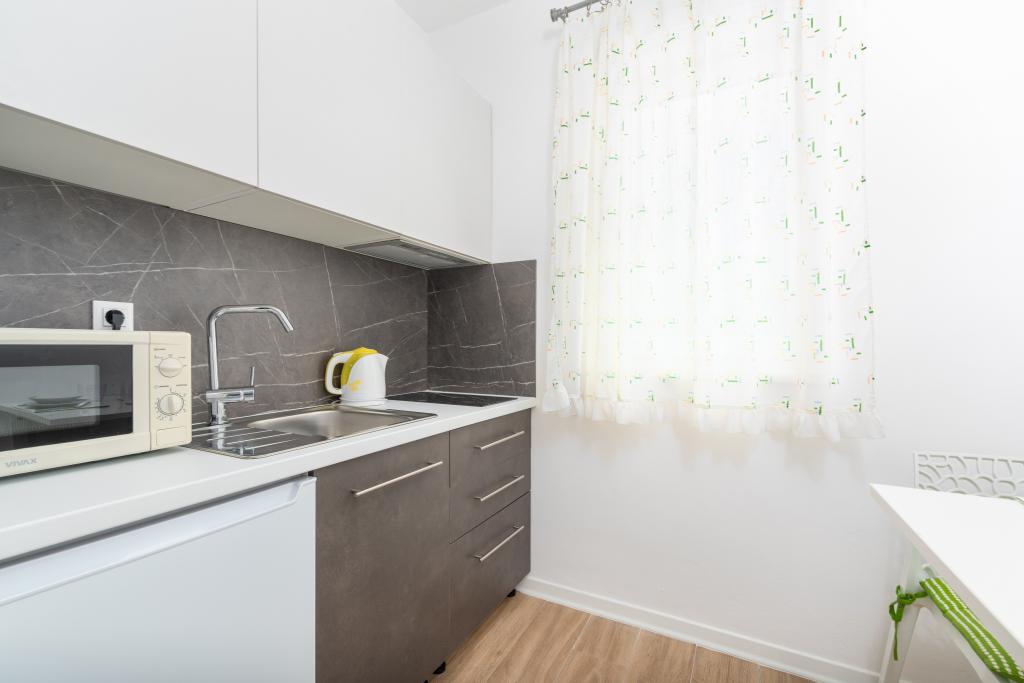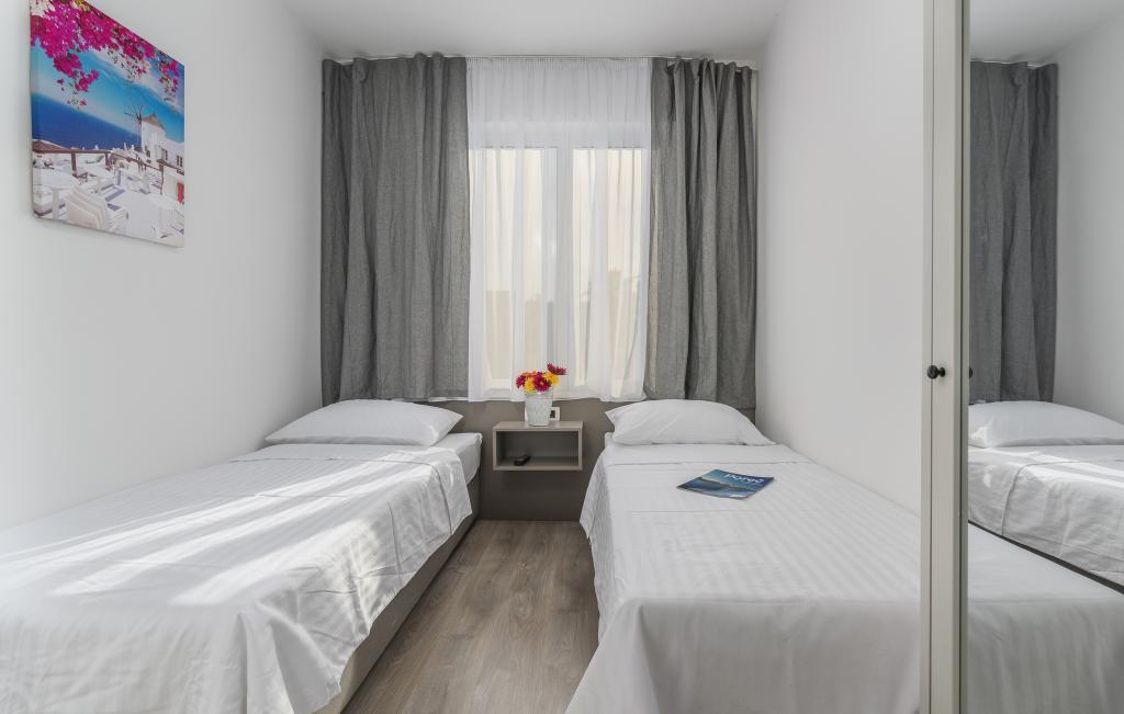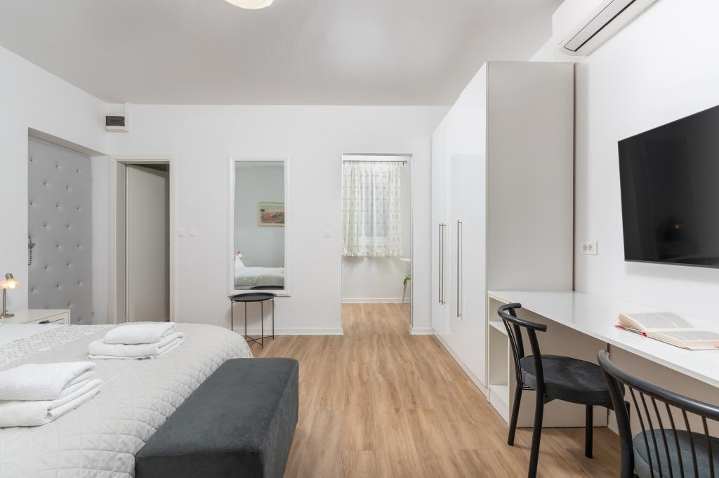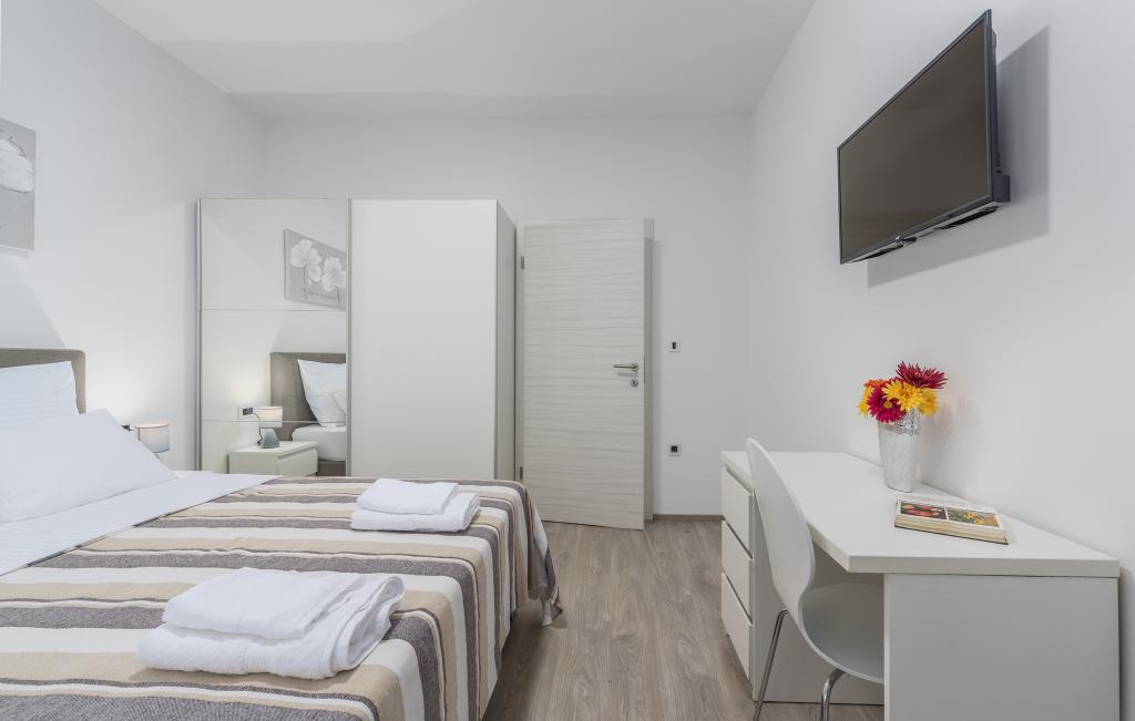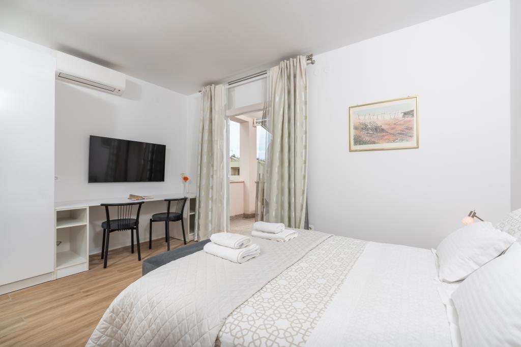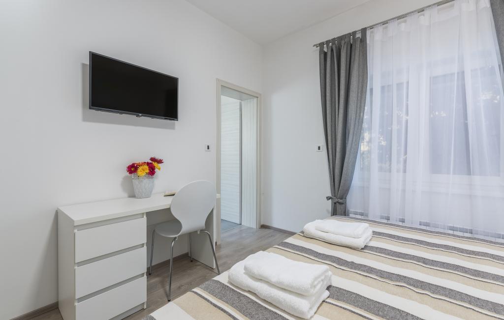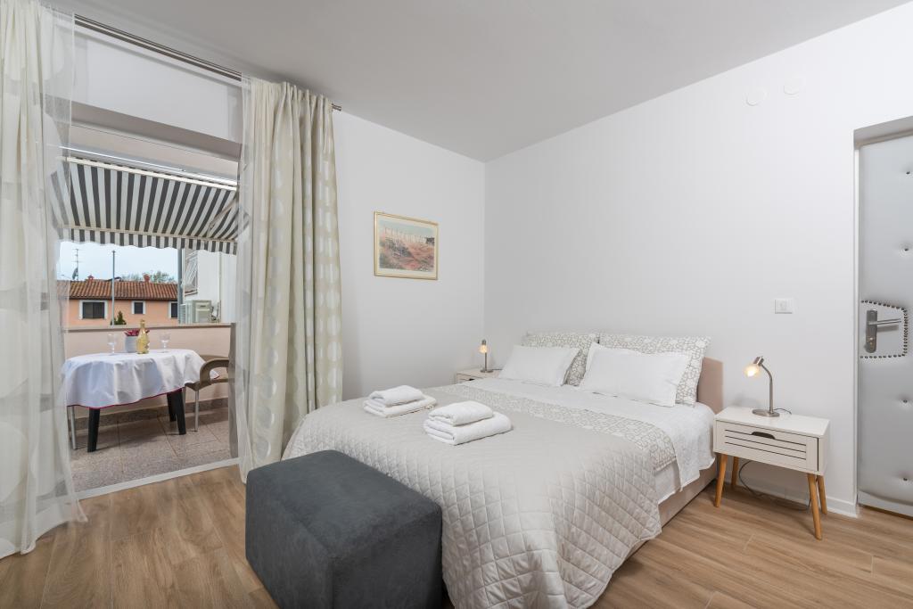 Our apartments are located in a beautiful and quiet residential area, offering a perfect escape from the summer crowds, yet close to everything. A leisurely 10-15 minute walk will take you to the beautiful Borik beach or the lively historic center of Poreč. A large supermarket is just a 4 minute walk away, which is very convenient for families.