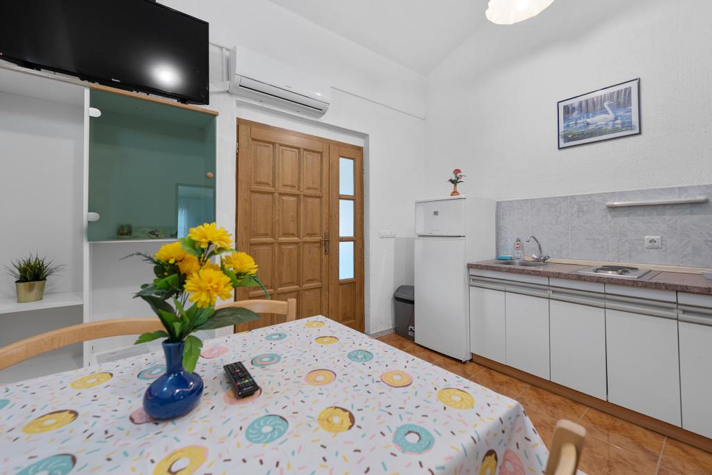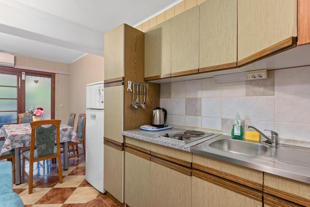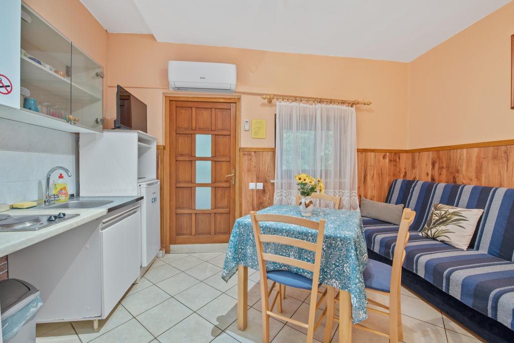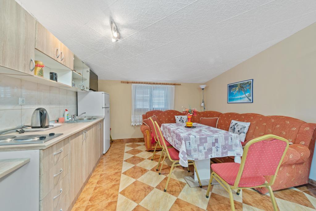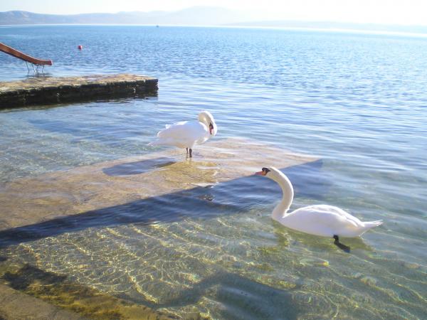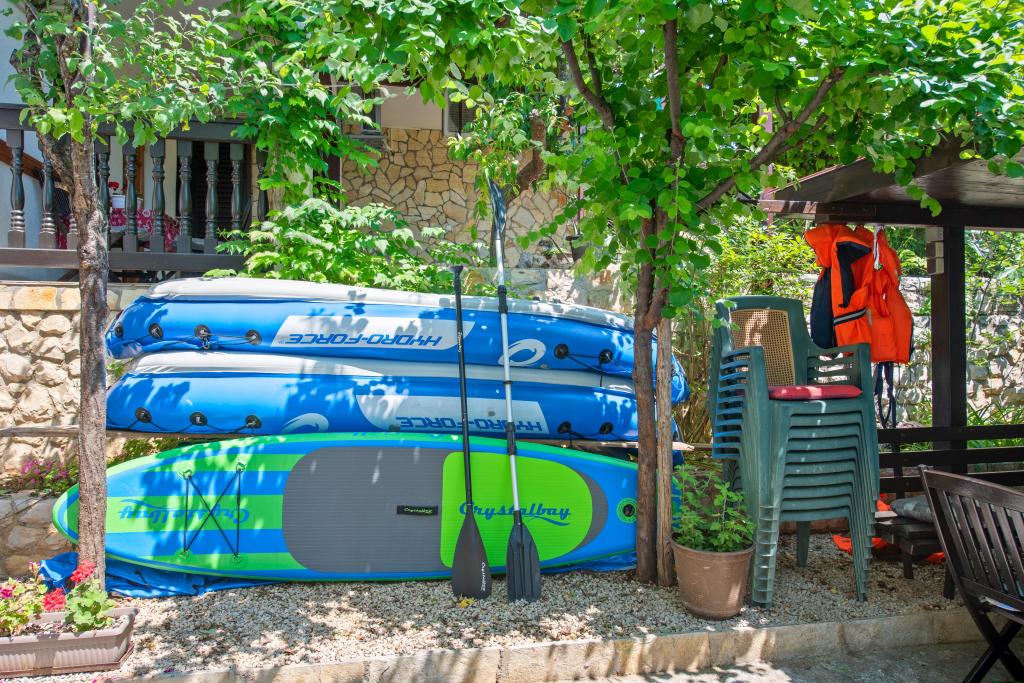 BREAKFAST IS INCLUDED IN THE PRICE OF ACCOMMODATION. We provide guests with all the necessary information related to this area and beyond, and leaflets are available with offers for excursions. Detailed information and house rules can be found in each accommodation unit. The guest can rent 2 kayaks for shorter rides at a symbolic price of 2 € per hour. Pets are allowed, it is necessary to announce and confirm. On the beach we have seats and tables, slide for children ... Yard with parking with secured space for 1 vehicle for each apartment. It also has a barbecue with a covered seating area.
