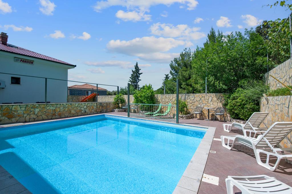 The pension is located in a quiet cottage village, without traffic and crowds. It is located in an environment of untouched nature near the sea and the beach, suitable for people who love peace and relaxation, and families with children. And there is an outdoor pool next to the house. In addition, we offer dinner according to our offer, and the sale of alcoholic and non-alcoholic beverages and ice cream. Program of excursions and visits to the city of Zadar and other nearby interesting destinations as well as the proximity of 7 national parks, which is an advantage of the location where we are. Visit us and you will be our dear guests and we will become friends ...