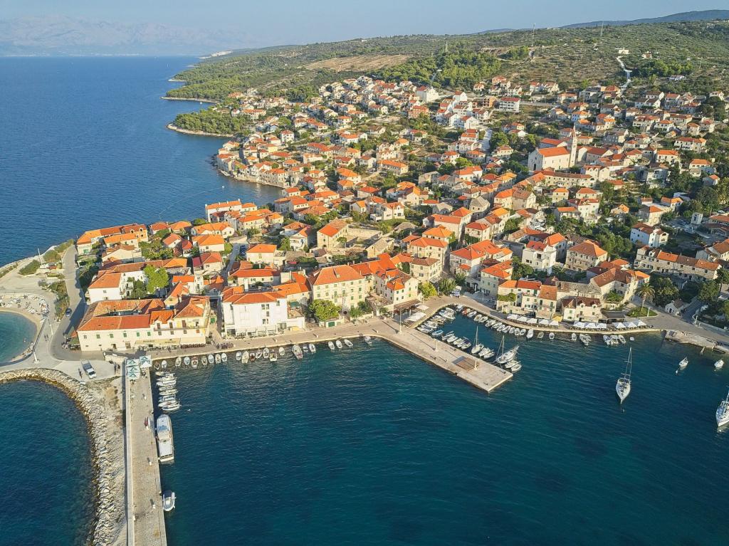 The house is located in the center of a small picturesque village of Postira. Nearby are restaurants, shops, promenades and two beautiful pebble beaches. The facility is located in a small street with no traffic and crowds. On the ground floor is an apartment with two bedrooms, one of which has a double bed and the other bunk beds. Guests are provided with air conditioning, free internet, a washing machine, a dishwasher and a spacious covered terrace. On the first floor is an apartment with three bedrooms that can accommodate up to 4 people. It is equipped with air conditioning, free internet, washing machine and dishwashers. It also has two balconies and a large covered terrace overlooking the sea. In front of the object there is a private parking with two parking spaces.