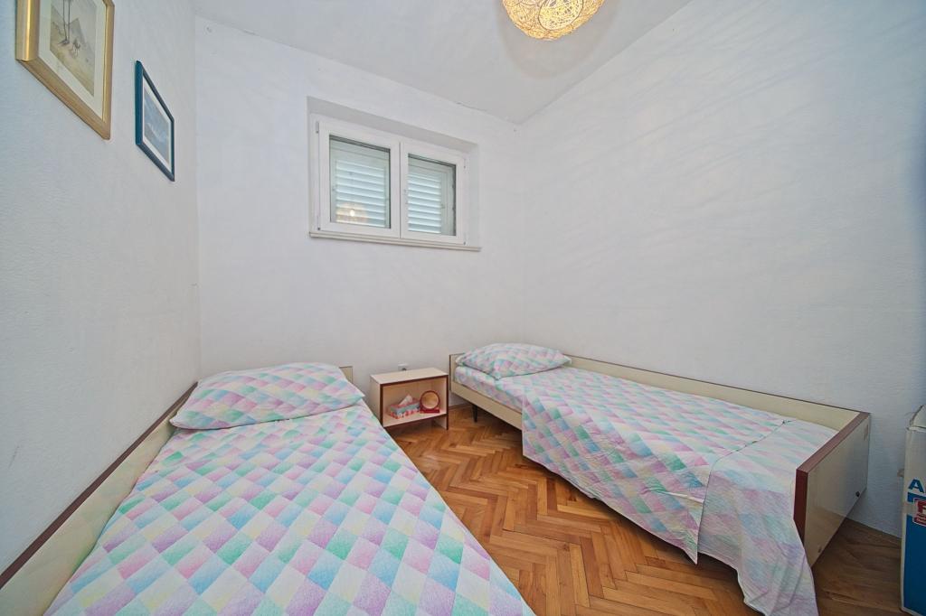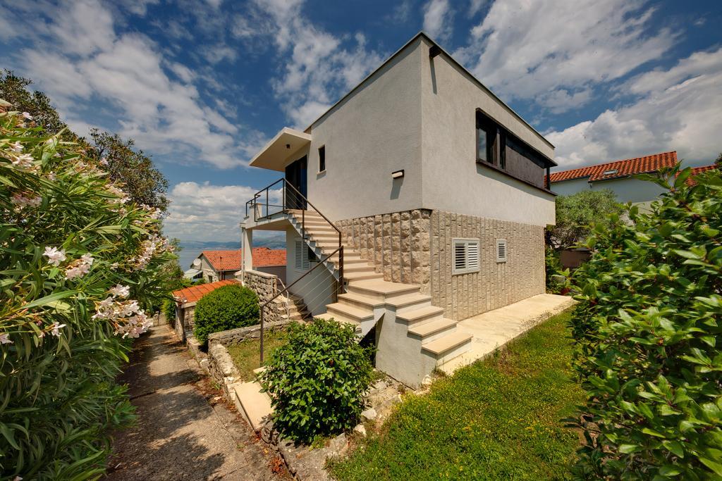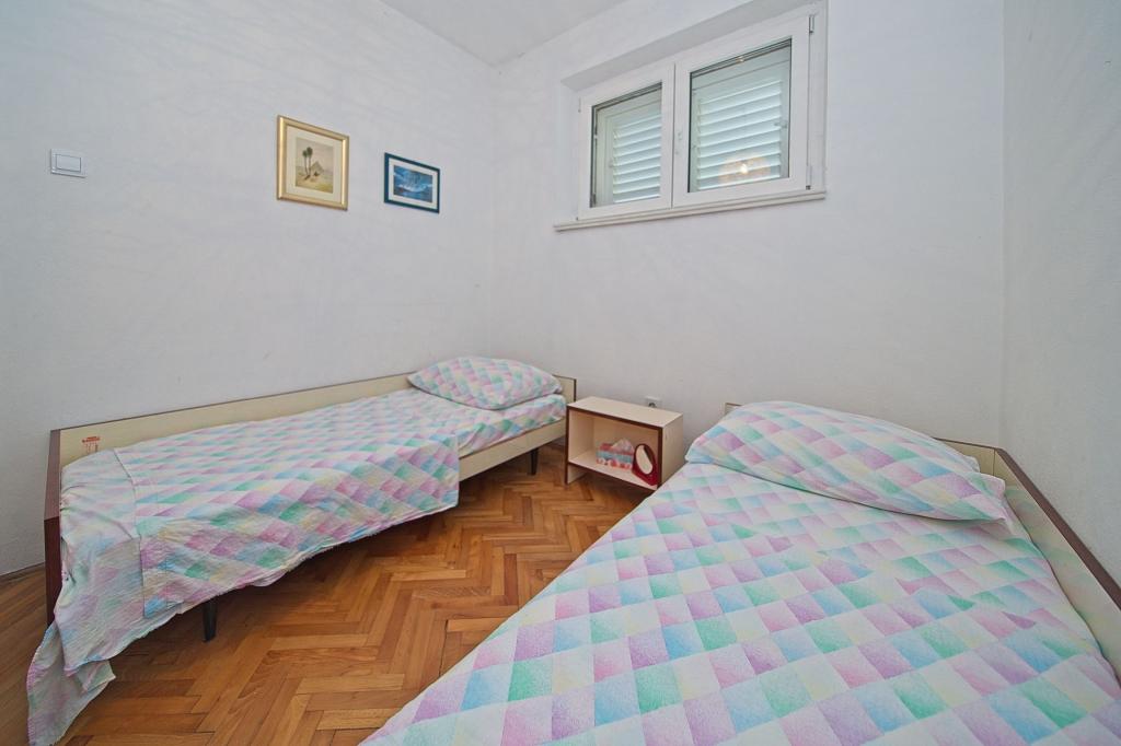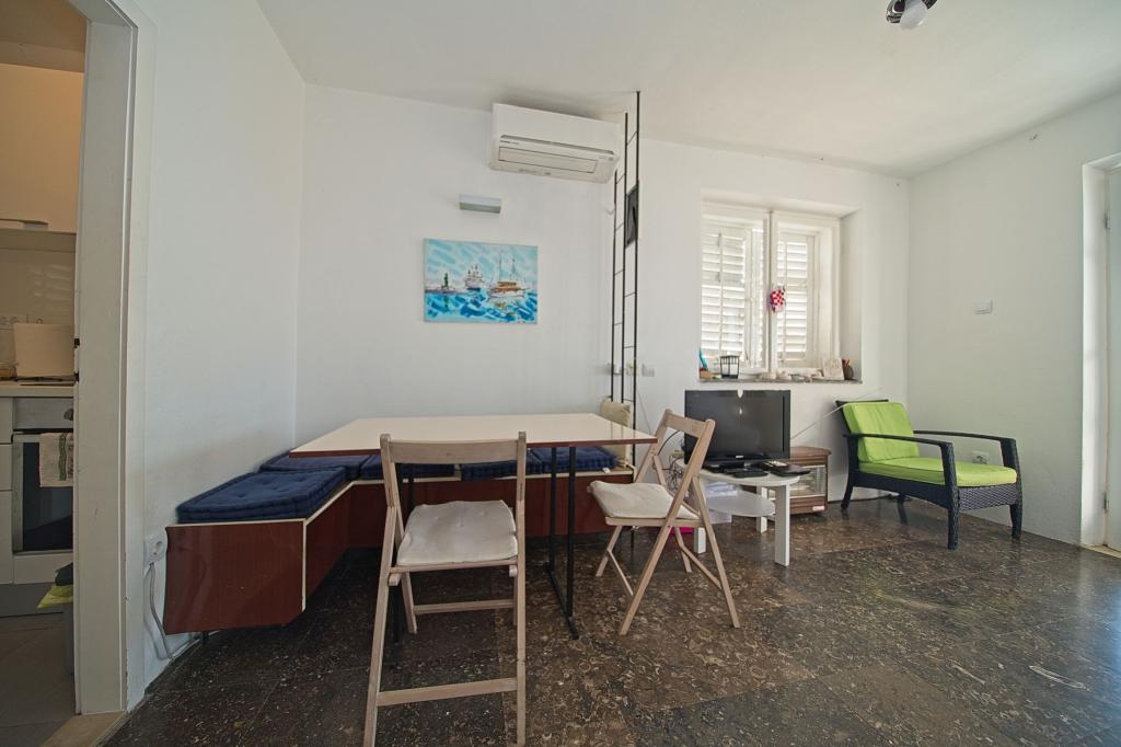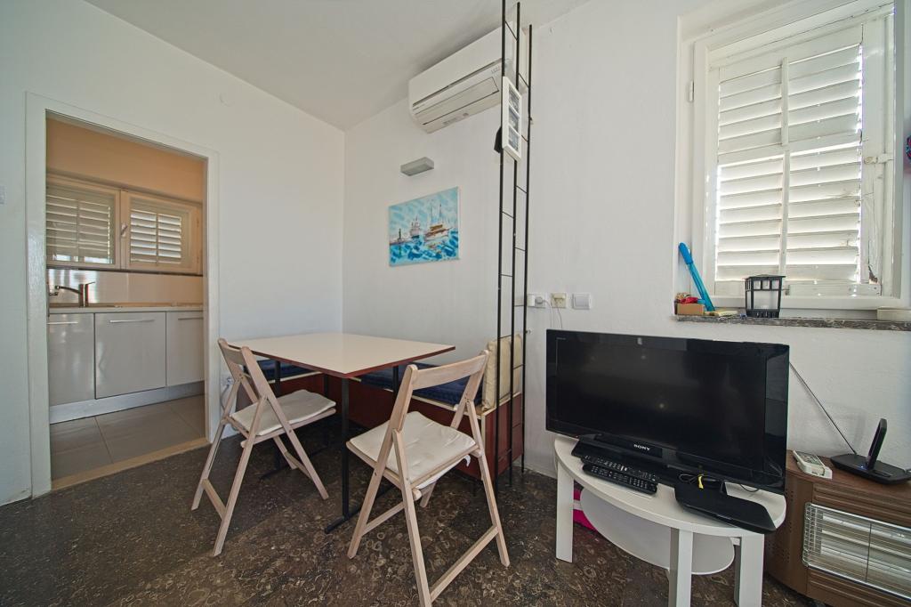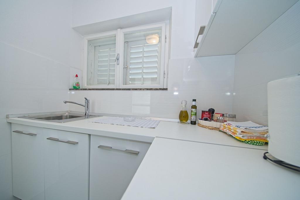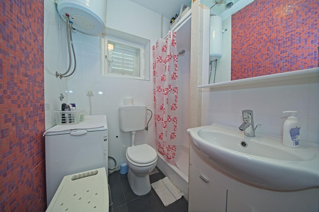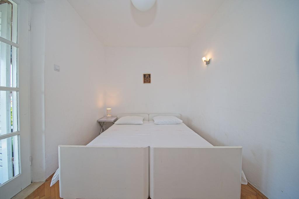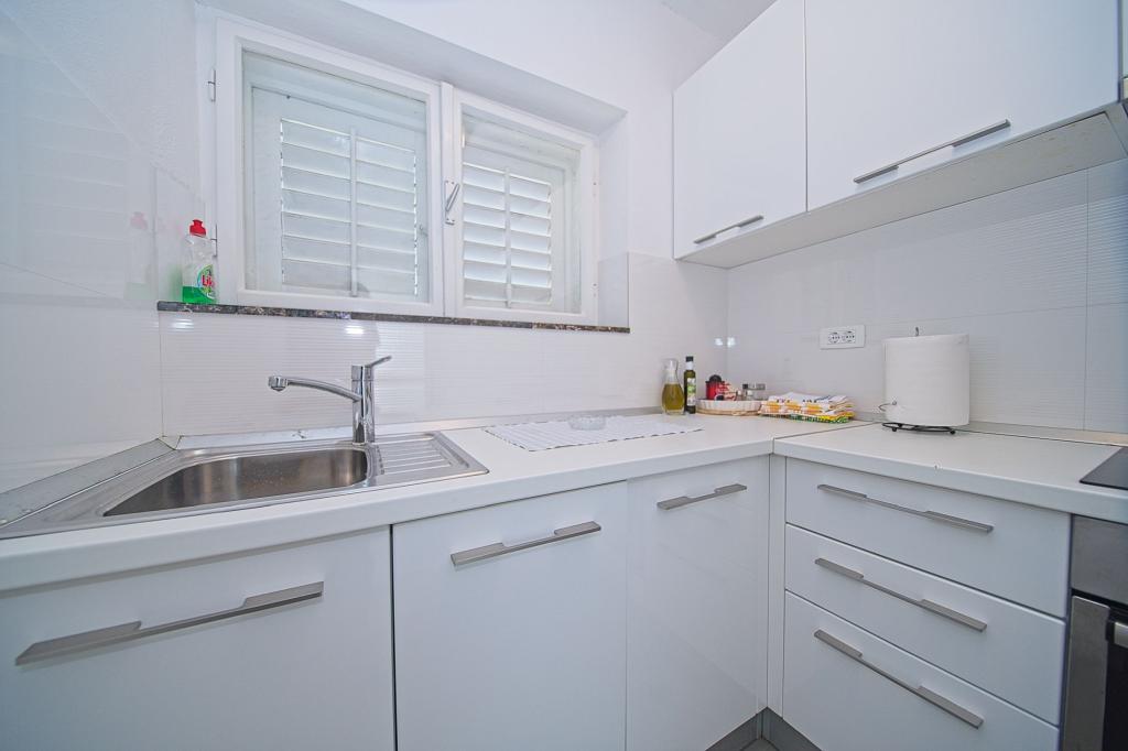 The house in which the apartments are located is located in a quiet and attractive part of the town. Surrounded by a garden and flowers, and a spacious covered terrace offers a beautiful view of the sea. There is a parking space in front of the house and a barbecue in the yard. The sea is only 80 m away. The nearest beach is sandy. The bay is quiet, but you have a 2-3 minute walk to the center of town.