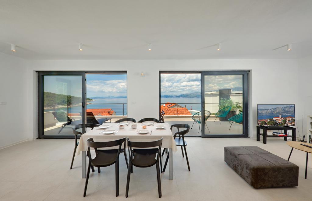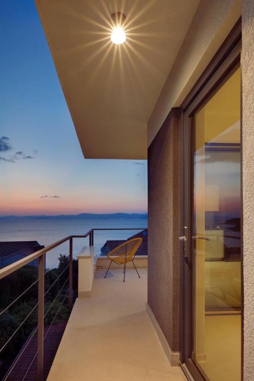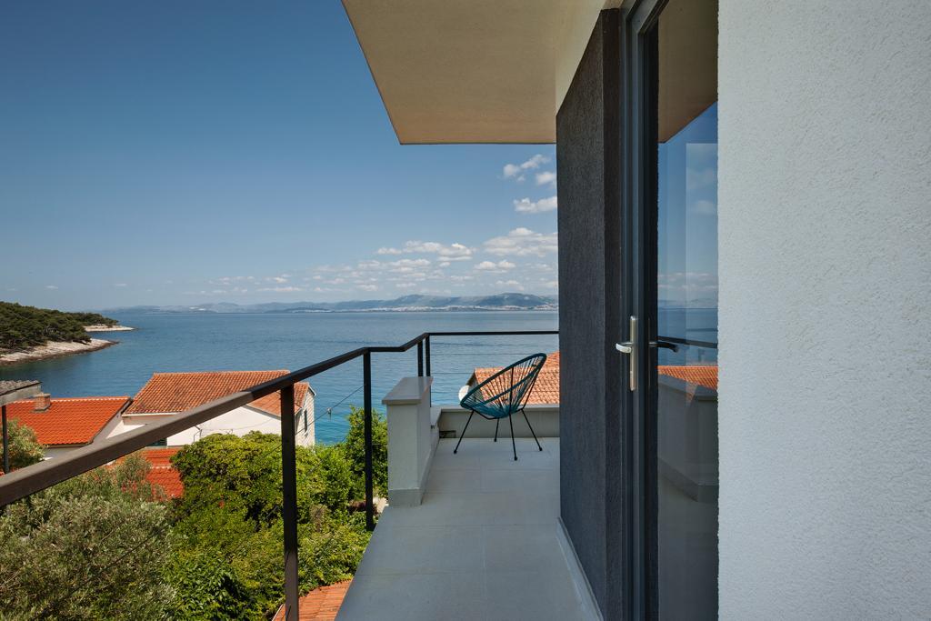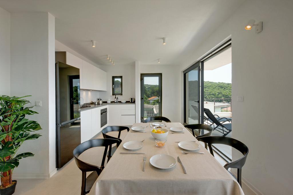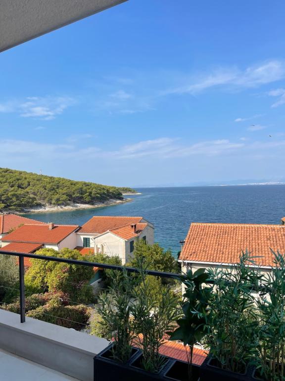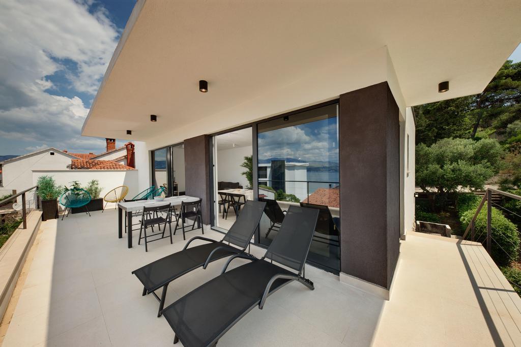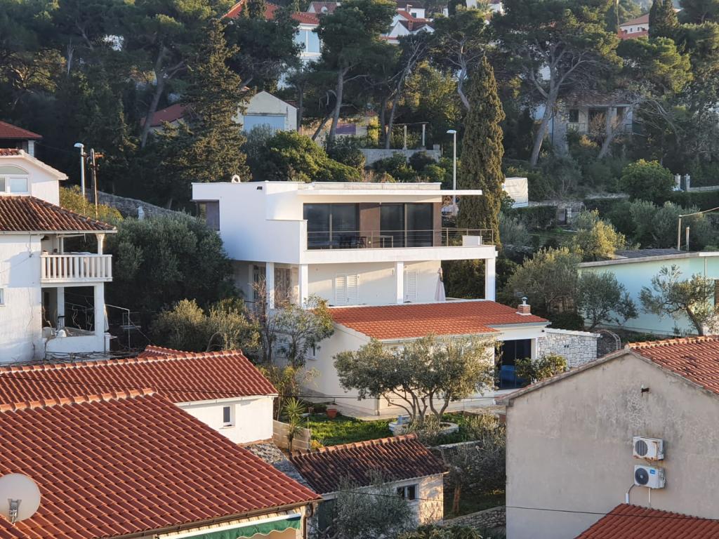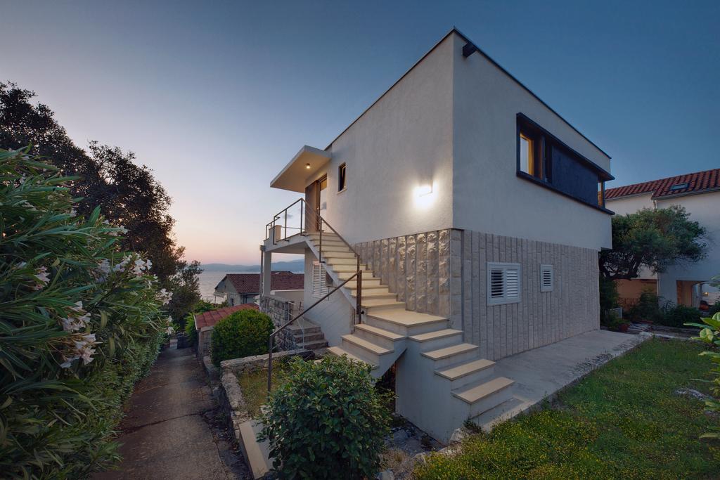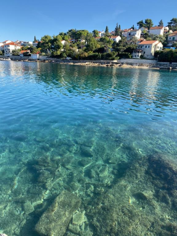 The house in which the apartments are located is located in a quiet and attractive part of the town. Surrounded by a garden and flowers, and a spacious covered terrace offers a beautiful view of the sea. There is a parking space in front of the house and a barbecue in the yard. The sea is only 80 m away. The nearest beach is sandy. The bay is quiet, but you have a 2-3 minute walk to the center of town.