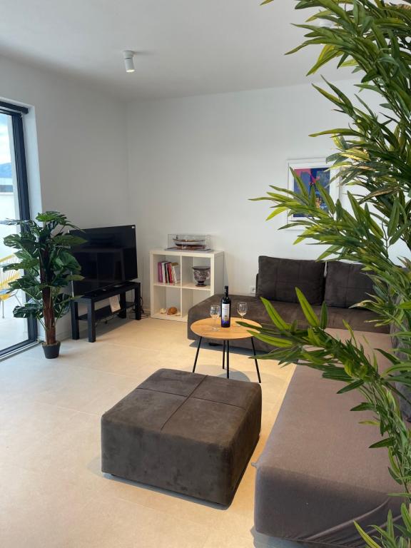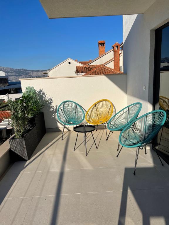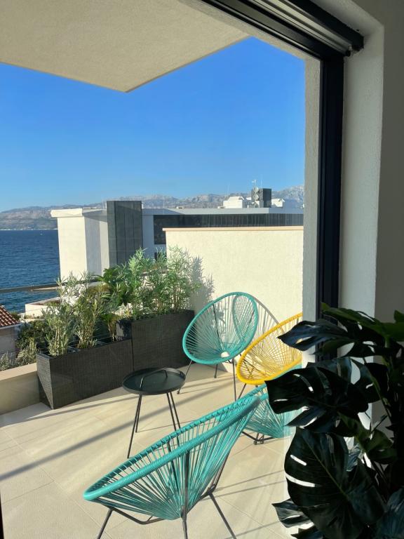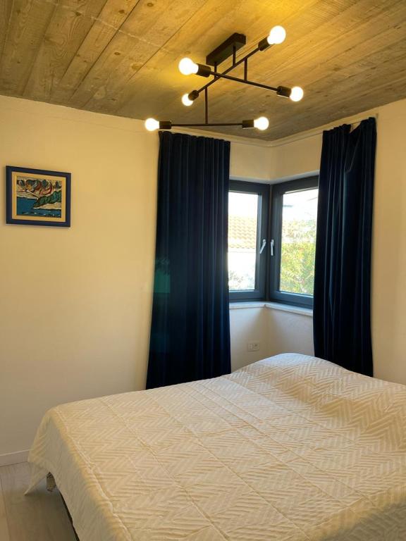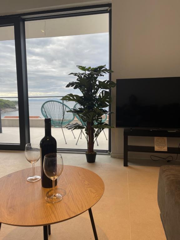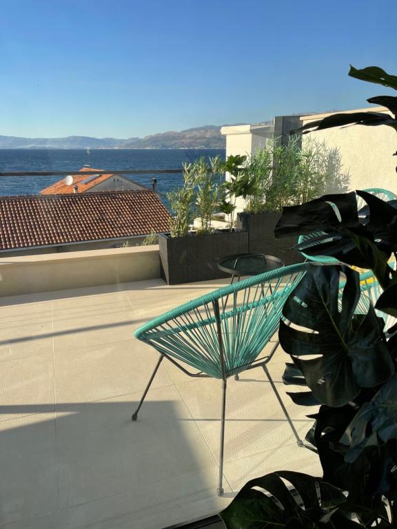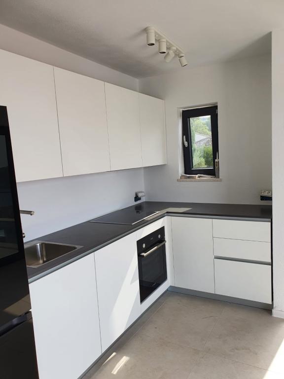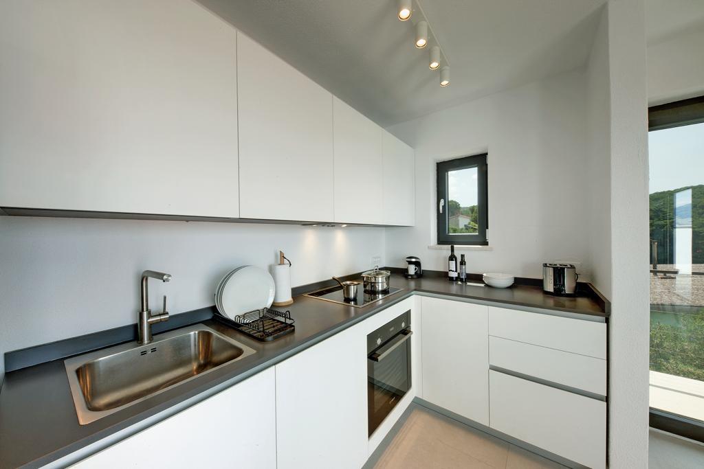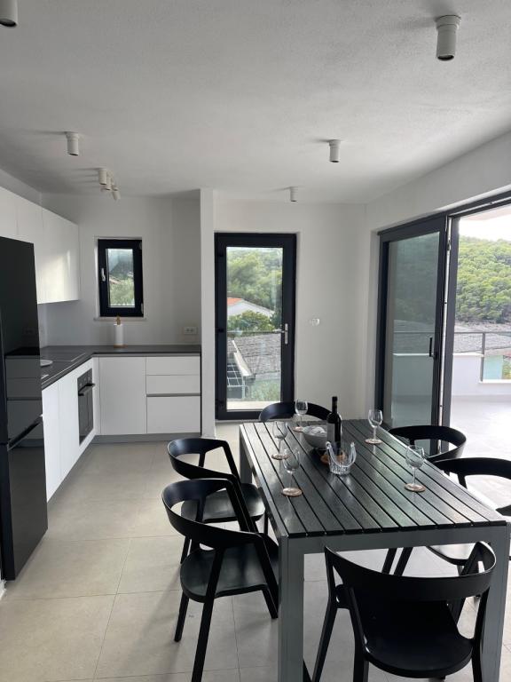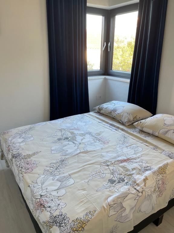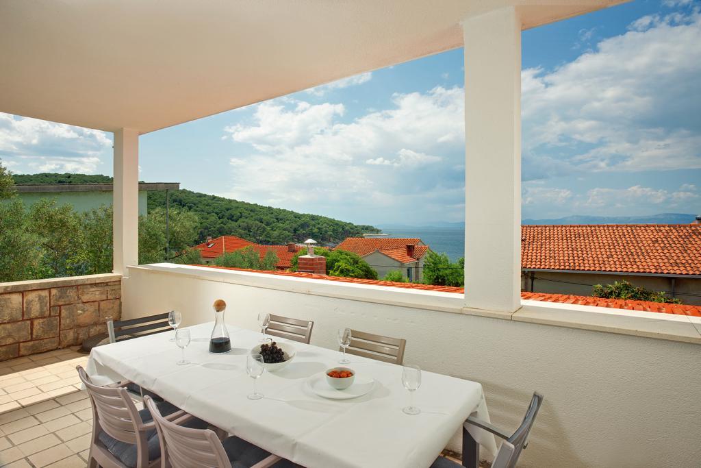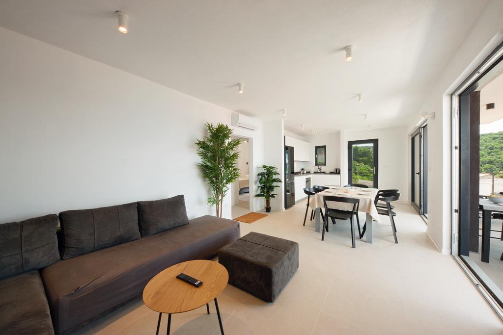 The house in which the apartments are located is located in a quiet and attractive part of the town. Surrounded by a garden and flowers, and a spacious covered terrace offers a beautiful view of the sea. There is a parking space in front of the house and a barbecue in the yard. The sea is only 80 m away. The nearest beach is sandy. The bay is quiet, but you have a 2-3 minute walk to the center of town.