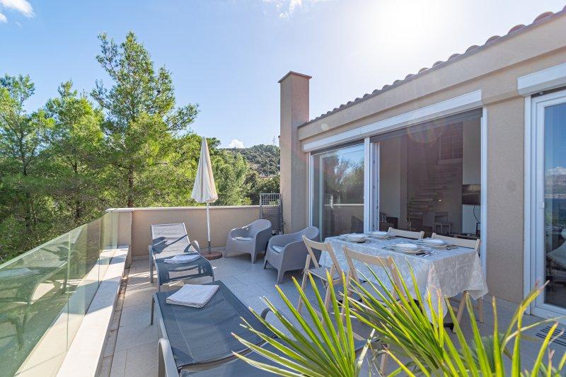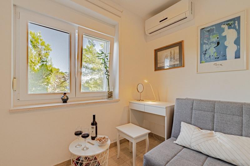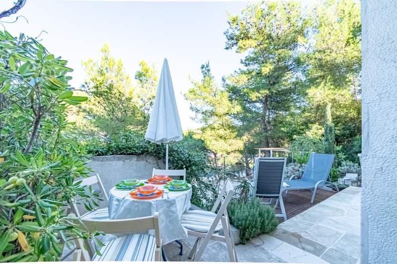 Residential tax is included in price.Villa Inga is located in the Mala Lozna bay. In the immediate vicinity of the apartment there is a cafe bar located on a rock that blends in very nicely with the natural environment and whose terraces extend all the way to a pebble beach suitable for the whole family where there is the possibility of renting deck chairs, umbrellas and a shower. A few steps away begins the rocky coast along which you can enjoy the sea and swimming in a much more intimate environment. In front of the Villa there is a road through a pine forest and along the sea that leads to the Lovrečina bay - ideal for cycling, walking, jogging, etc. 100 meters away, there is a well-stocked supermarket with an excellent offer of food, drinks and household goods. The center of Postira can be reached in about 20 minutes, by a leisurely walk along the seashore.