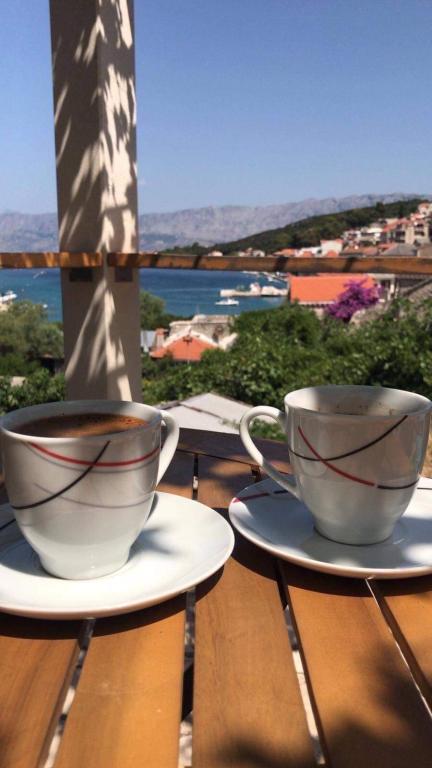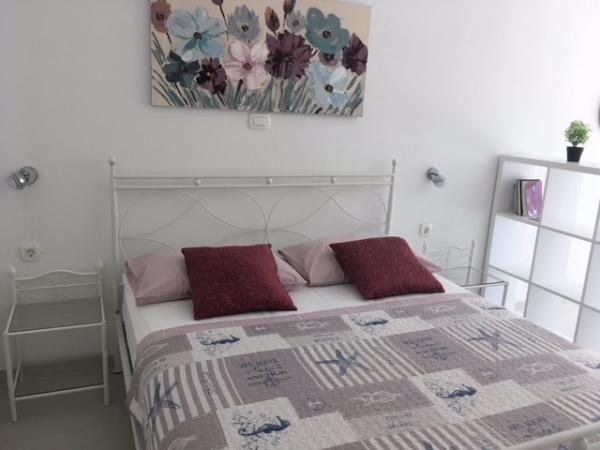 Apartment 6 for 2 persons with a beautiful view of the sea, sunny and very spacious with three bedrooms with double beds, living room with double bed, two bathrooms, massage shower, two air conditioners, induction cooker, dishwasher, washing machine , coffee maker, electric kettle, microwave and refrigerator. Terrace with fireplace, barbecue area and terrace overlooking the sea which have separate tables and chairs. TV is in the living room, and wireless Internet access is provided. It is equipped with dishes for preparing and serving food and drinks and cutlery in adequate quantities. It is located on the first floor of the house in the town center. It is located near the sea (40 m) shop (50 m), numerous beaches, restaurants, bars and other catering establishments. The price includes parking space in front of the house, use of the boat mooring, bed linen and towels, cleaning after departure and the use of children's bed if necessary