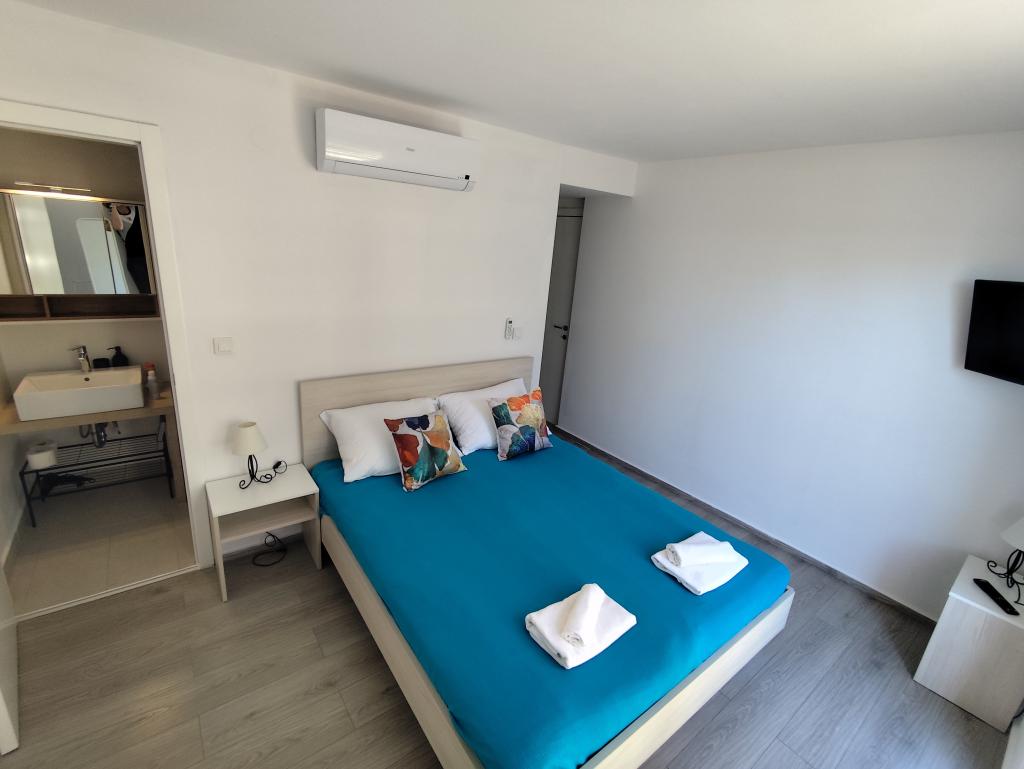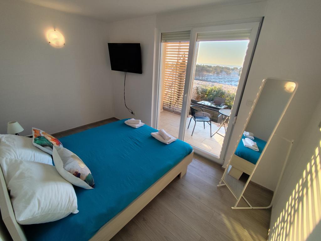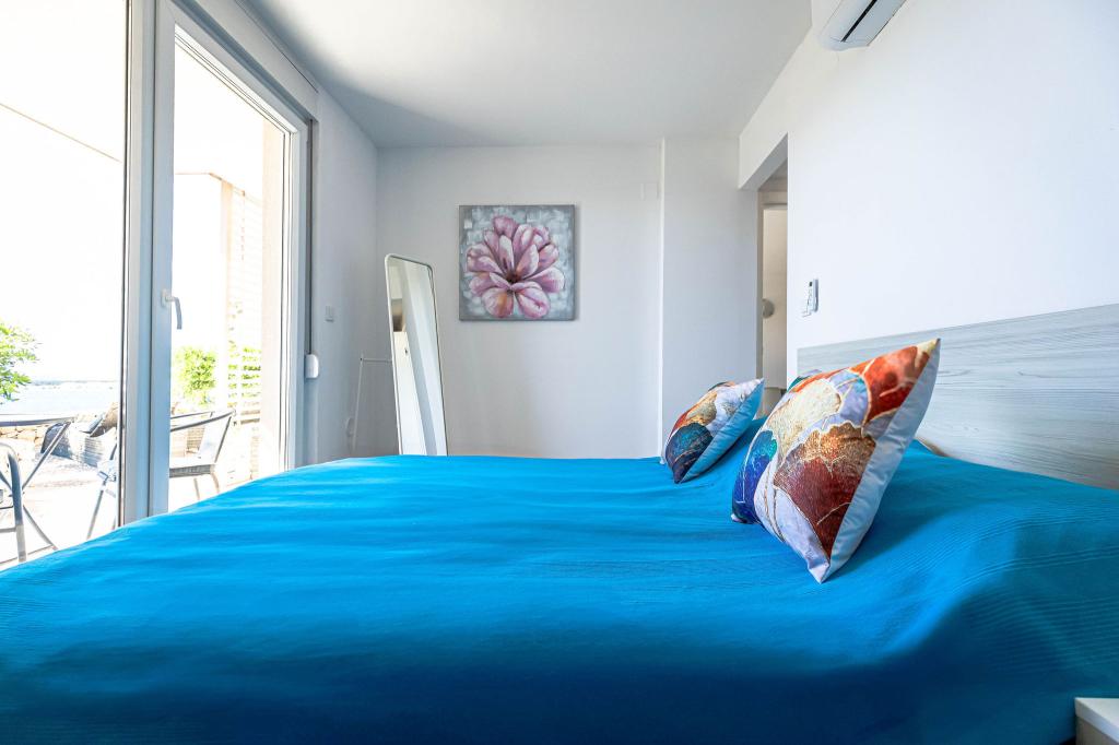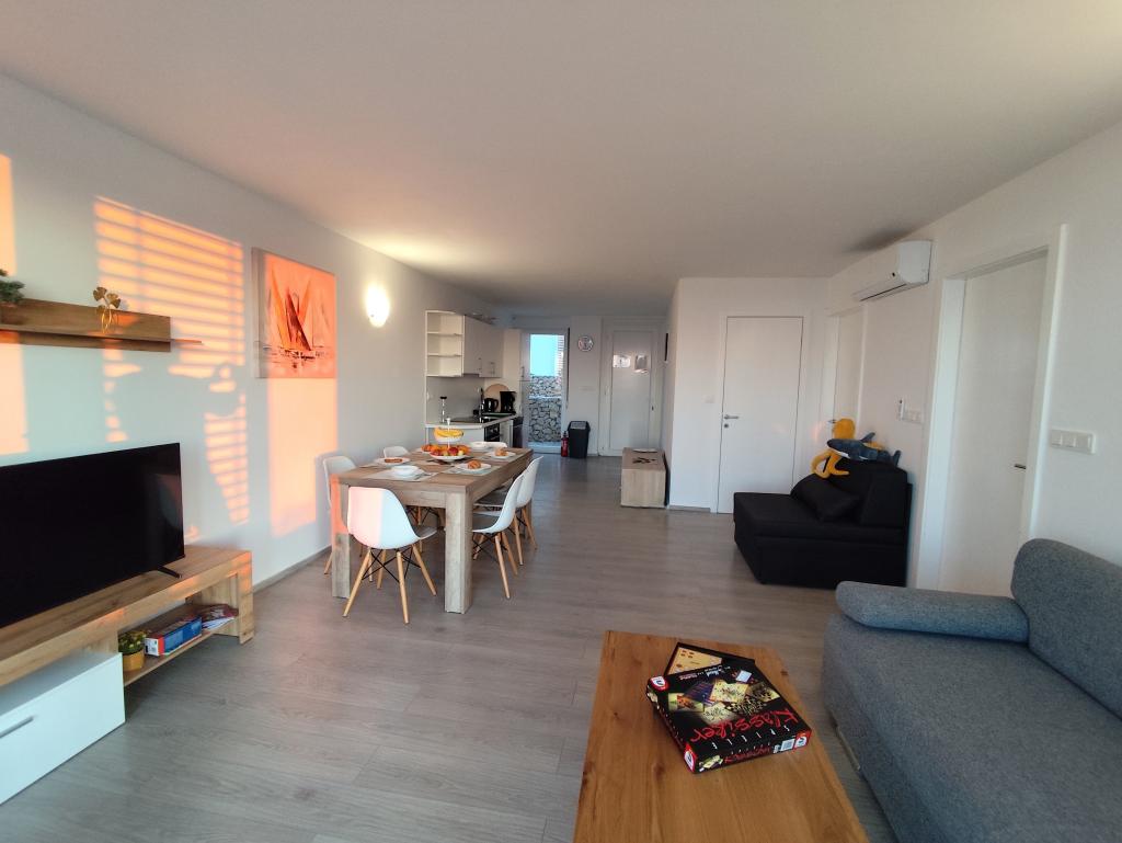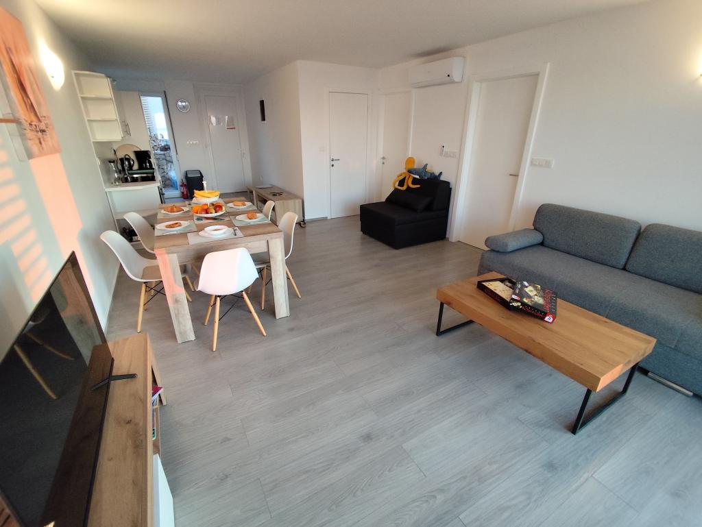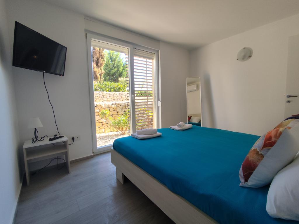 Apartment MORE I MIR is located in a quiet part of Povljana, Rastavac peninsula, which is only 150 meters from the sea and the sandy beach Trokut. The apartment is located on the ground floor and is fully equipped with all amenities for a pleasant vacation. The accommodation capacity offers 2 bedrooms with two bathrooms, a living room and a kitchen. Additional beds in the living room (pull-out sofa and armchair). The apartment is fully equipped with kitchen appliances, 3 air conditioners, 3 TVs. For apartment users, free parking and internet, a swimming pool, the possibility of using a barbecue, an outdoor shower and a common play area (slide, table tennis, etc.) are provided. The apartment has a private terrace and a garden with deckchairs and a sitting area with a view of the sea, 1st row. In the immediate vicinity there is a campsite, bakery, shop, restaurant. Povljana, due to its beautiful sandy and pebble beaches and clear shallow sea, offers a quality vacation for families; the center is 3.6 km away.