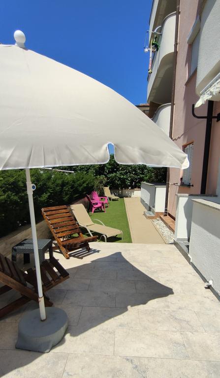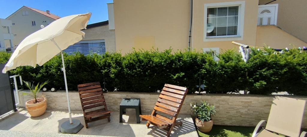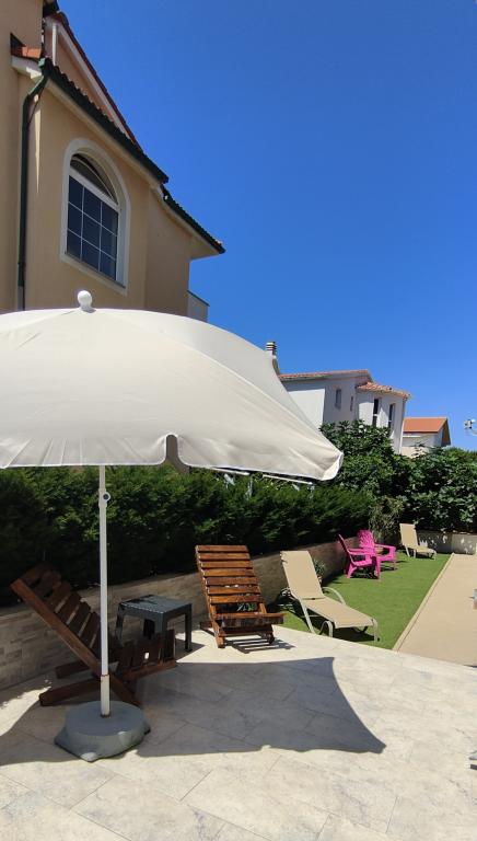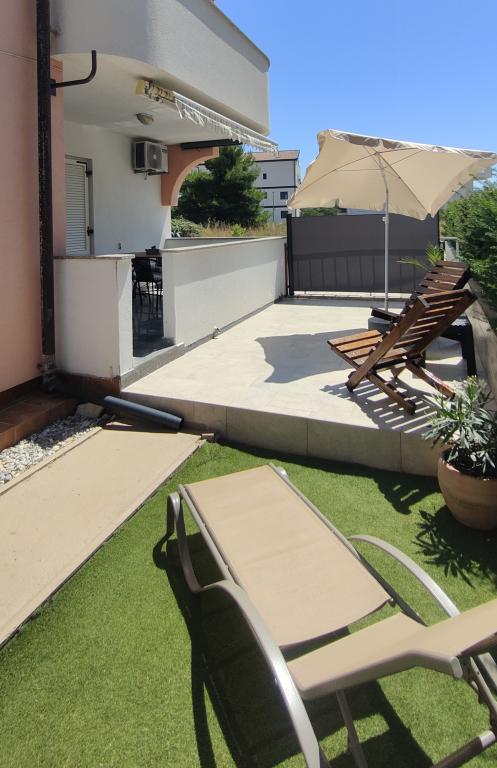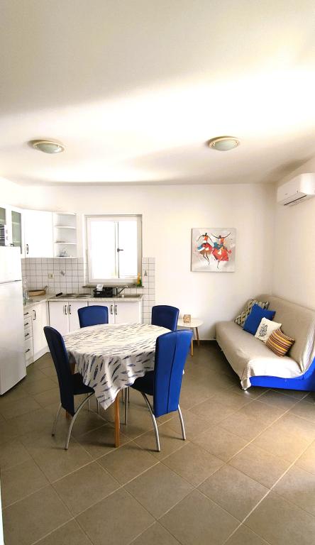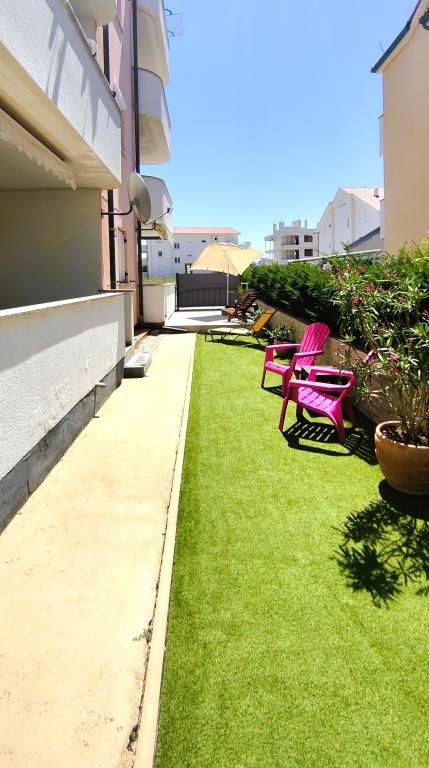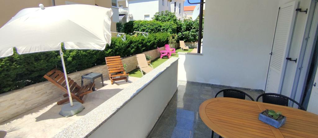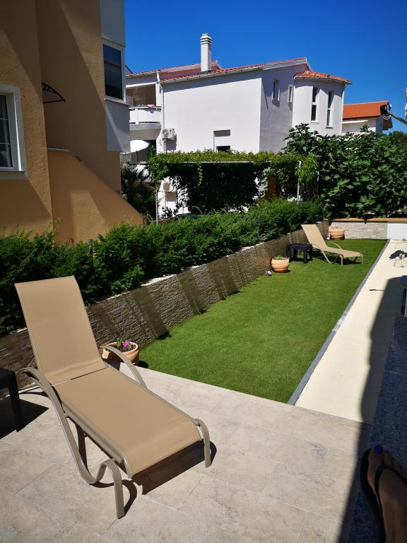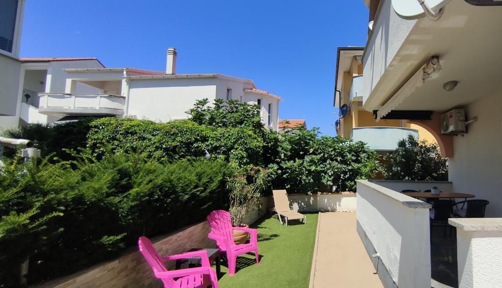 "Benedetti Apartments" are located almost right next to the beach, in a perfect location where you could almost jump right into the sea! They are located in a small, quiet place, perfect for relaxation, 2 rows from our main beach. This is an opportunity to escape the hustle and bustle and start a perfect vacation. The apartments are decorated with landscaped gardens, creating an ideal environment for relaxation. Imagine yourself on deck chairs with a cocktail, surrounded by peace and flowers. The pebble beach "Mali Dubrovnik" is only 20 m away (2 minutes), and the sandy beach is only 5 minutes away on foot. Restaurants are 50 m away, and a shop is 30 m from the apartments. For larger purchases, a leisurely walk or drive will take you to the center of Povljana (600 m). A cafe and tennis court are only 20 m away, right across the street. The apartments are located on the ground floor, perfect for families with children and couples who love a quiet vacation. Free parking and internet are provided for apartment users, as well as the possibility of using a barbecue, and there are shared outdoor areas for relaxation. Park your car and enjoy!