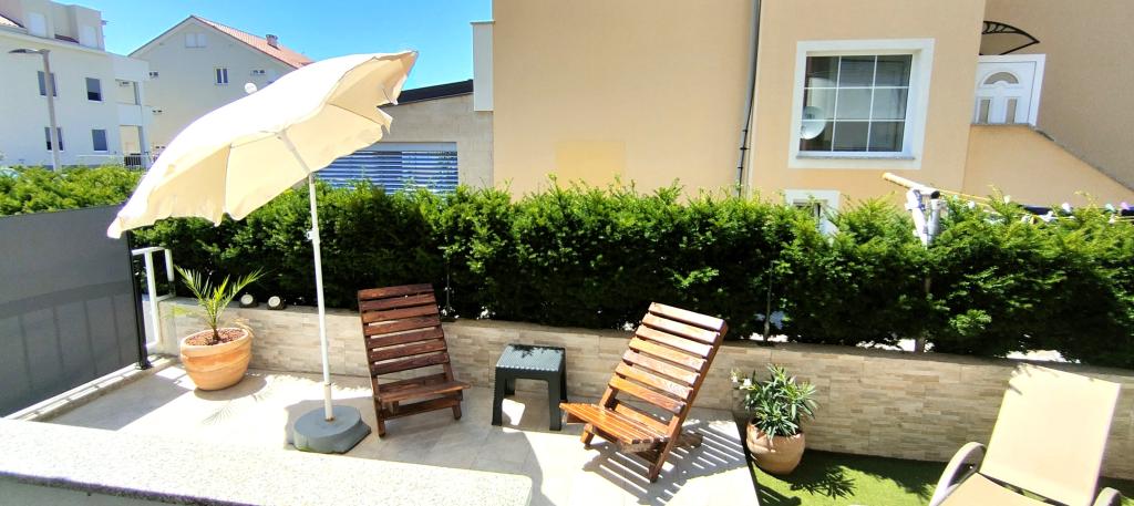 Fantastic accommodation. Clean and tidy. The kitchen is fully equipped and you can cook without any problems. There is a shop right on the beach. I would highly recommend. A piece of garden with deckchairs...