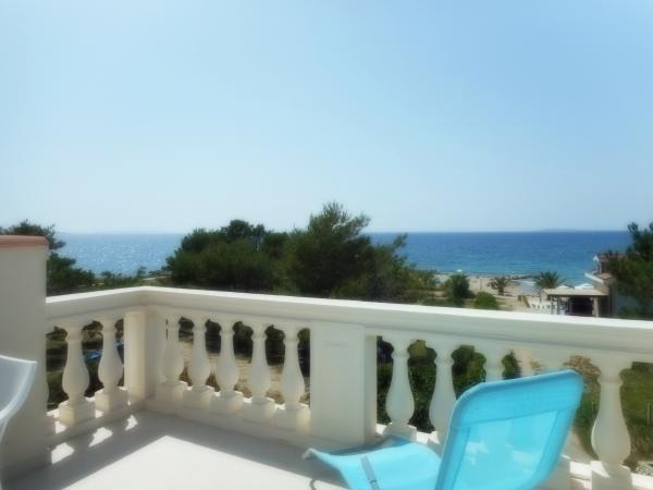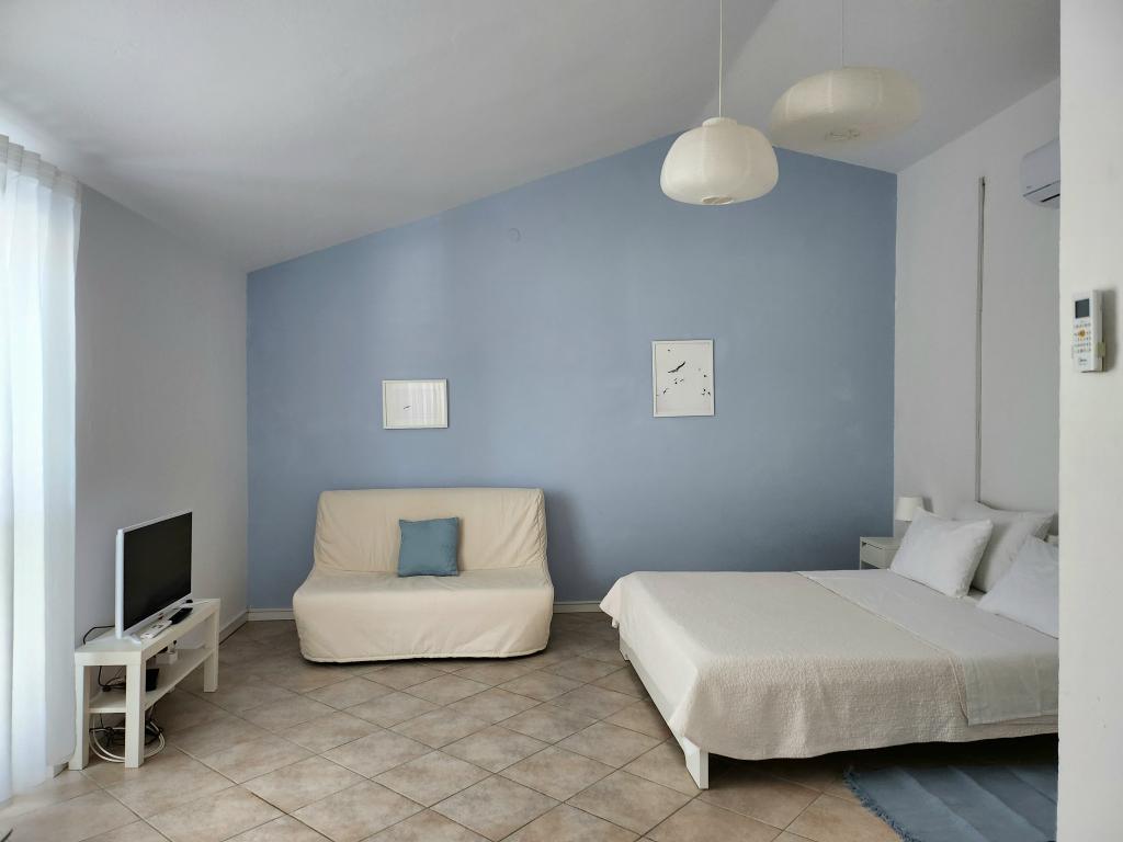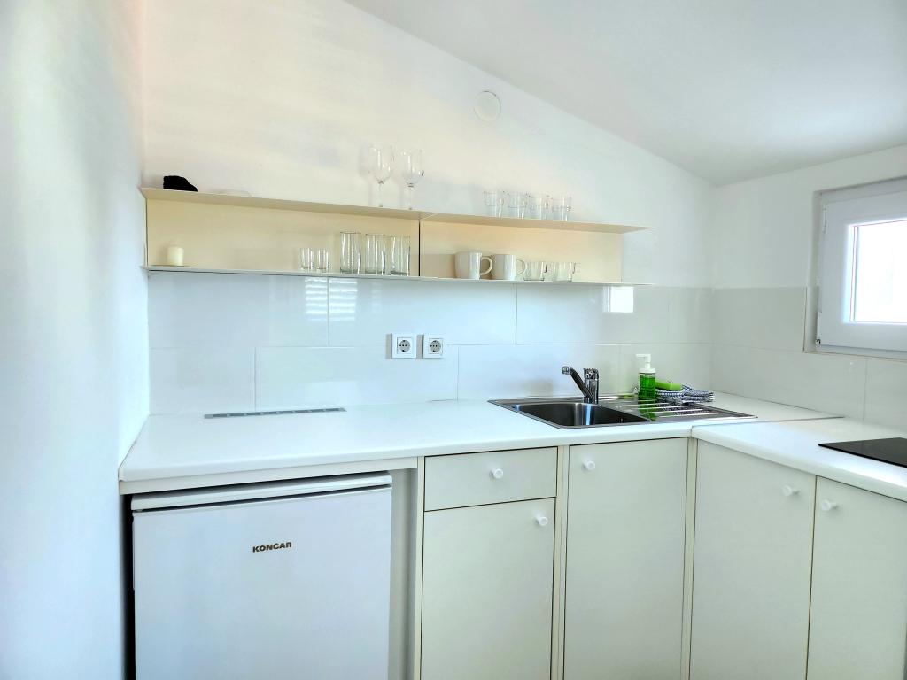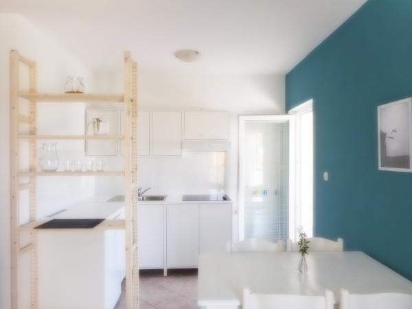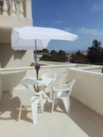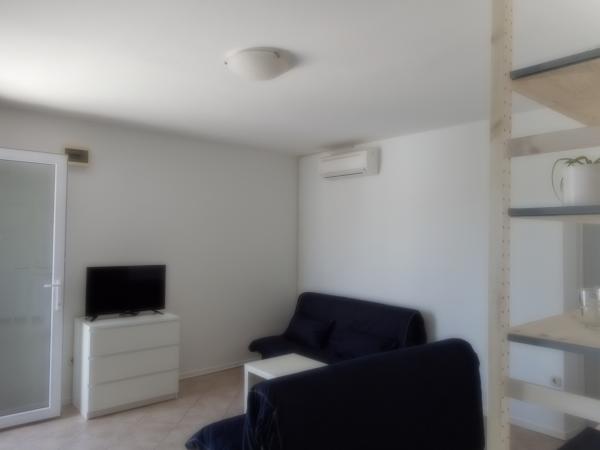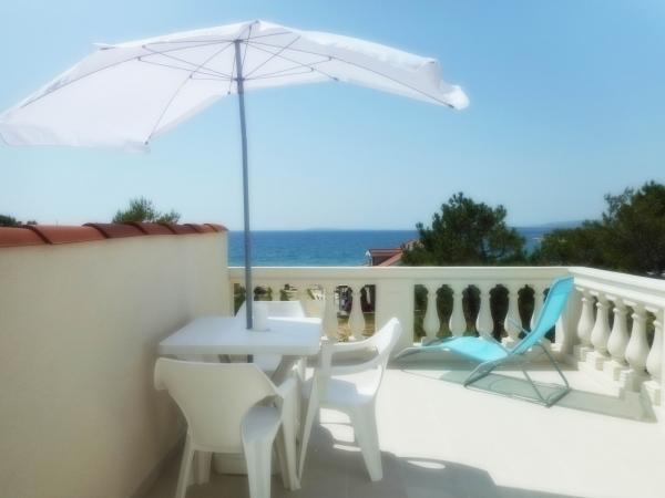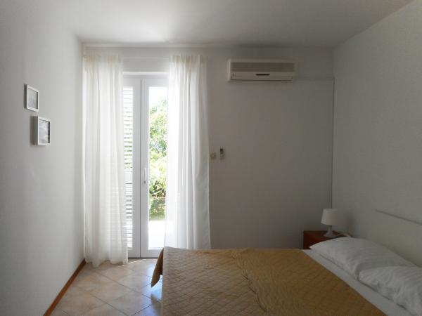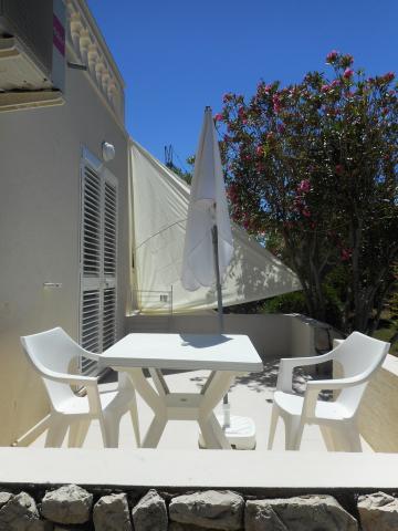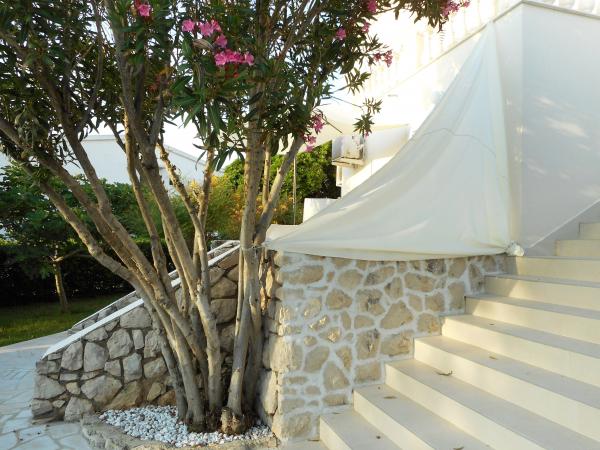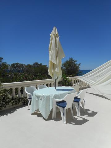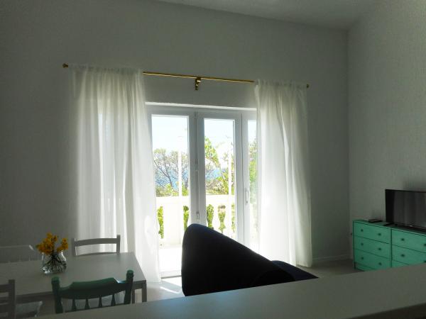 The apartment is part of a beautifully decorated house with a large garden. Everything in the apartment itself is decorated with moderation and is suitable for a vacation. The large terrace is accessible from both rooms and has a view of the sunset and is in the shade all morning, just ideal for a coffee with a view of the sea. The garden is a wonderful Mediterranean space full of pine trees, olive trees and immortelle with available deck chairs and garden furniture and stretches from the house to the beach. Ample parking is provided on the property. The photos fail to describe the comfort, cleanliness, light and all other qualities of this accommodation. The hostess is extremely kind.