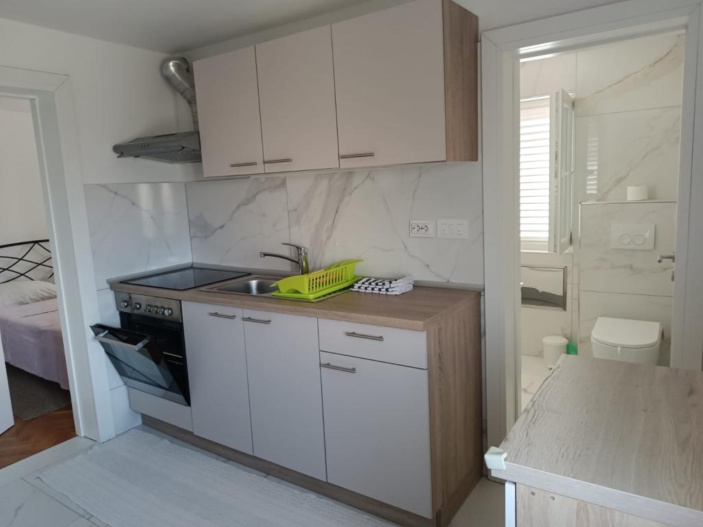 Apartment in the immediate vicinity of the Dubrovnik beach, an ideal place for a family with small children. Large terrace with sea view. The apartments are located in a house with a fenced yard and parking spaces. Each apartment has a separate entrance.