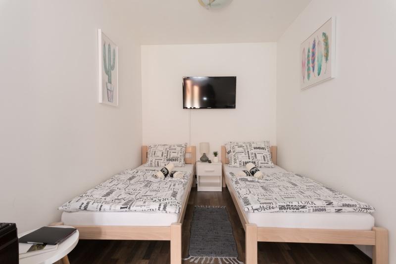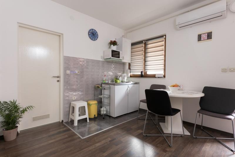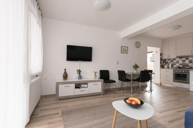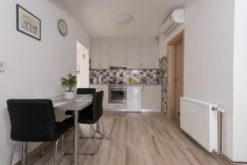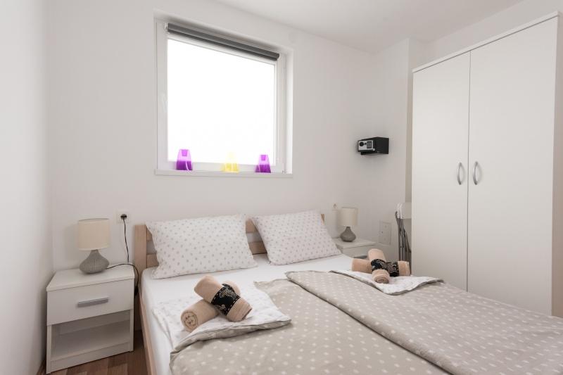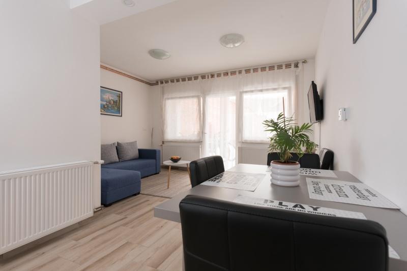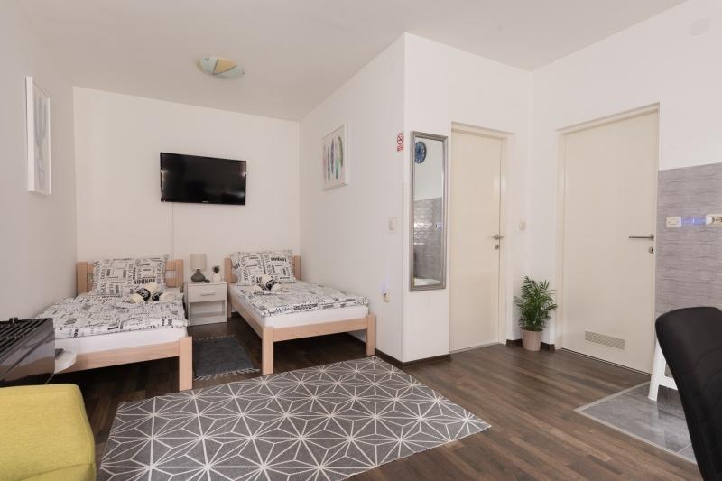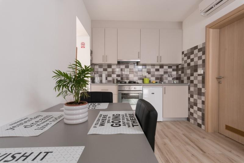 In a quiet location, only 150/250 m from the city center, there are 4 residential units with 4 beds each. The apartments are air-conditioned with parking, covered terraces and equipped kitchens (fridge, stove, microwave, outdoor grill...) - ideal for singles, couples, or families and groups, for a short or long time.