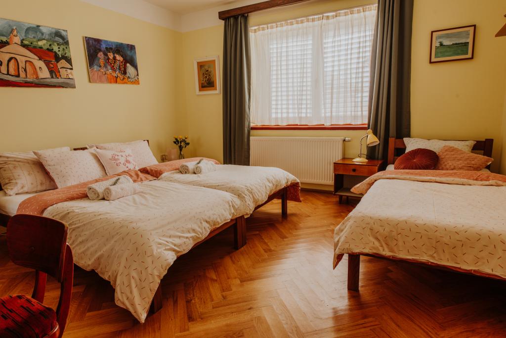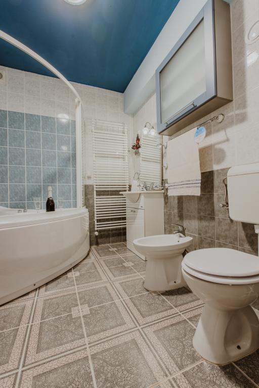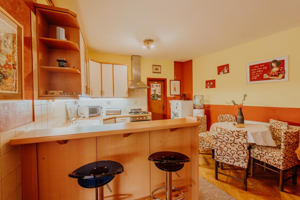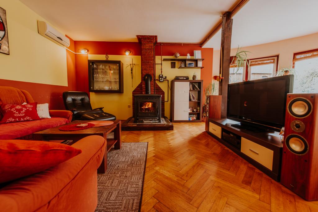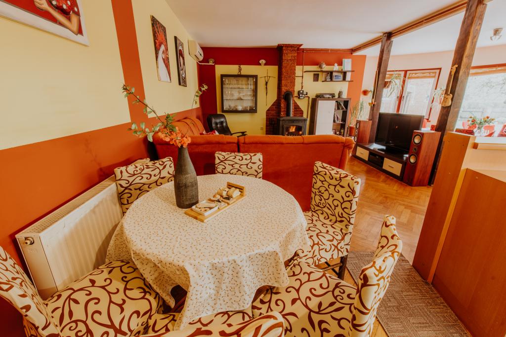 Located in the heart of the picturesque Slavonian village of Alilovci, which is only 10 km from the entrance to the Papuk Nature Park, Aquapark Shhhuma and the Duboka adrenaline park and 9 km from Požega. It is 173 km from Zagreb and 101 km from Osijek. The house has 150 m2 of interior space and 2000 m2 of outdoor green space (fenced yard, garden, orchard). It can accommodate 9 people and the maximum capacity is 11 people (2 people on an extra bed or in the living room). The house is spacious, beautiful and well equipped. It has 3 bedrooms, a bathroom, a toilet, a kitchen and a living room connected to the kitchen and dining room for 11 people. Large living room with air conditioning, Wi-Fi, fireplace, TV, stereo and darts. The kitchen is fully equipped with dishes, a dishwasher, a microwave, a refrigerator, a freezer and an oven. The bathroom has a jacuzzi tub and a washing machine. Large green yard with a warm jacuzzi from 5 to 9 months. Covered fishing area, children's playground, trampoline, deck chairs.