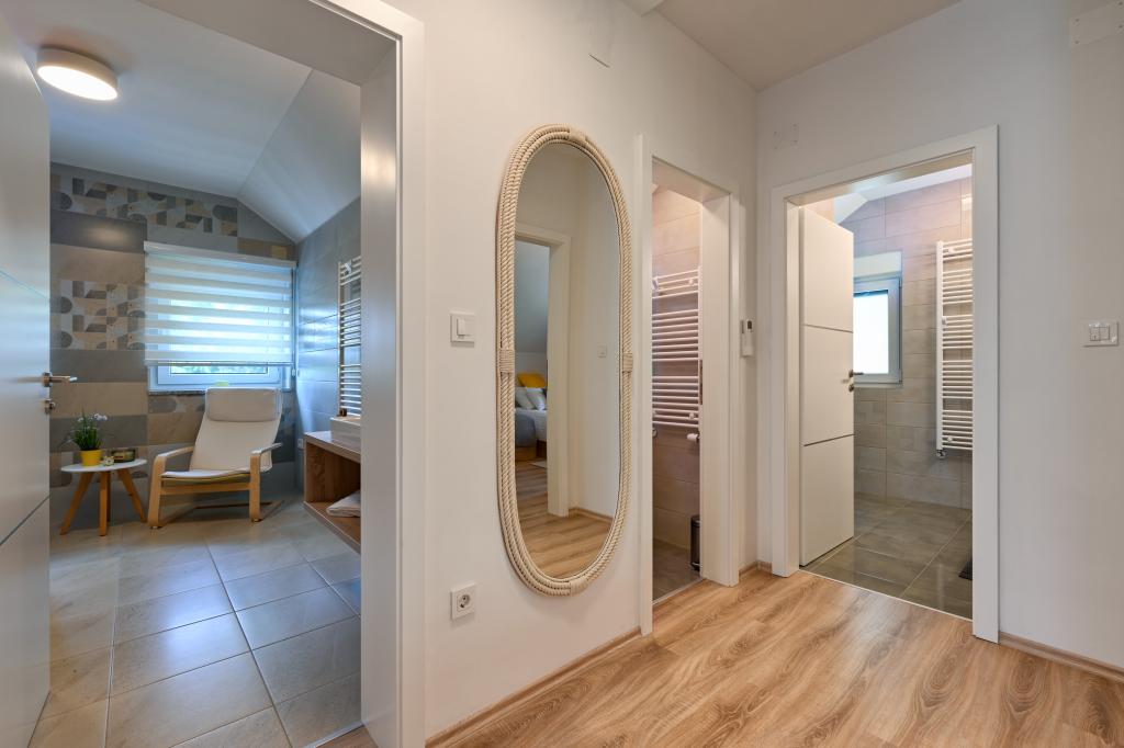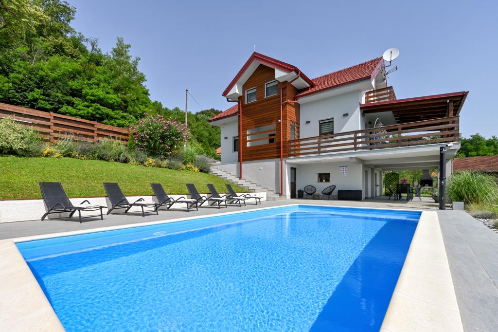 The house offers all the benefits and needs of a modern guest (wireless internet, five SMART LED TVs, Netflix, central air conditioning system, smoke alarm, CO2 detector, external video surveillance). Sunrise Hill is located about fifty km from Zagreb and 1.5 km from the center of Pregrada. There is also an infrared sauna inside the house and on the outside covered terrace and a jacuzzi which is in operation from 01.10. until 30.04. (outside the season of using the outdoor pool). And for the youngest, there is a richly equipped children's playroom (billiards, table football, darts, board games, PS4, crayons and drawing blocks...)