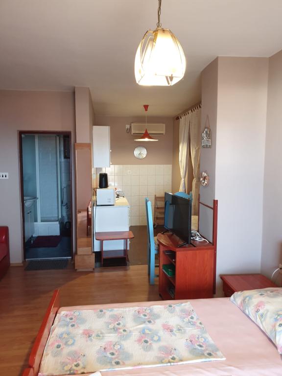We stayed in the facility for six nights, we were welcomed very warmly. The hostess is caring and kind, before we arrived in Preko she called us that the accommodation was ready ahead of time and that we could come freely. Upon arrival, she treated us with a welcome drink and a small gift that greeted us in the room. The apartment was clean and tidy, and well equipped with everything for a pleasant stay - air conditioning, refrigerator, microwave, kettle, oven, dishes, glasses, etc. House rules are respected in the accommodation and it is always very quiet, which is good for people who really want to rest. You can walk to the beach in about five minutes. The first store (Tommy supermarket) is a few minutes away from the accommodation. The town of Preko is full of wonderful beaches, restaurants, cafes, pastry shops, nature that you can visit for days. There is also the possibility of a trip to Kornati, which we definitely recommend because we went and it was great. Reservations can be made at the travel agency in Prek. It was very pleasant for us and we hope to return next year. Recommendation!