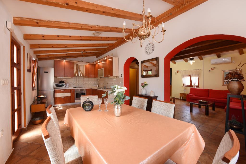 The house is located near the center where there are shops, cafes, beaches and restaurants and is far enough away for rest and relaxation. The house is fully equipped, has 2 bedrooms, one on the ground floor and the other in the gallery. It has a spacious living room, a kitchen with a dishwasher, a bathroom with a washing machine, air conditioning, satellite TV and Wi-Fi. The yard consists of a parking lot, a house with a barbecue and a covered terrace.