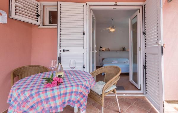 I recommend this apartment villa wholeheartedly! My girlfriend and I had an amazing time and wished we could have stayed much longer. The location is incredible and it is very easy to just take a short walk to one of the beautiful Kamenjak beaches. It is also very close to the center of Premantura, but still completely quiet and peaceful. The room and bathroom were very clean, the bed very comfortable and we slept like babies, it has a stove and fridge that are not huge, but big enough for regular use, and air conditioning and TV that we didn't really need to use because it is just so much nicer to spend the evening on the beautiful terrace that opens up into a nice garden. The host brought us some anti-mosquito incense as well, so we were taken care of very nicely. The host lady is incredibly kind and accommodating and she let us leave our car parked on their lot after check-out, so that we could still take a walk to Kamenjak and swim on our last day. All in all it was a beautiful and highly recommendable experience and we are very happy that we decided to stay here.