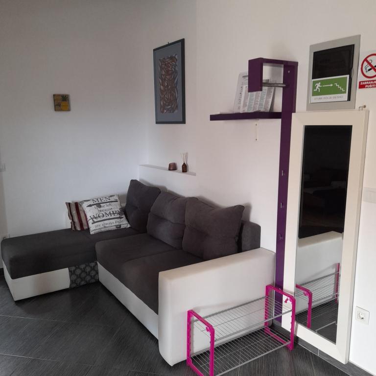Very nice accommodation in the center, the apartment corresponds to the photos, everything nice and clean, modern. Landlady, very nice person. Location excellent, shops and restaurants within easy reach. Sea nearby. Suitable for all ages. Beautiful week!