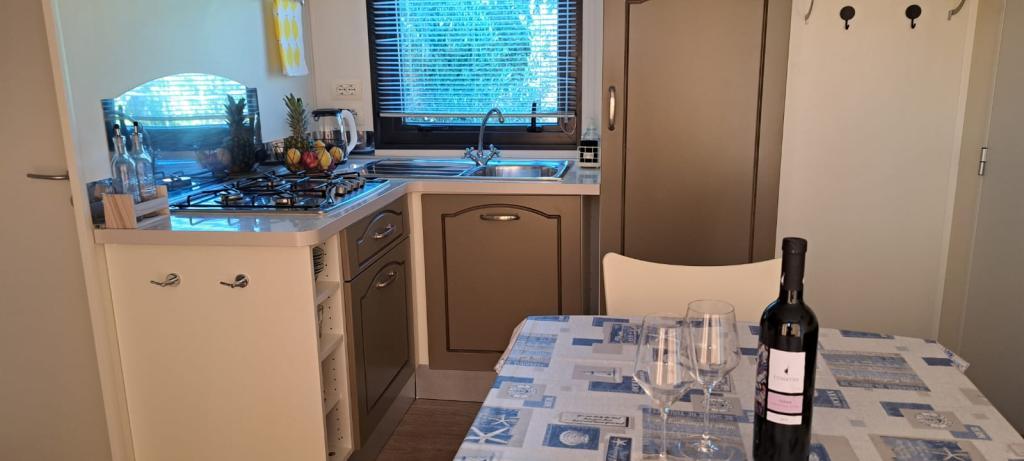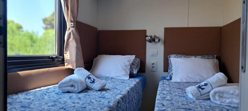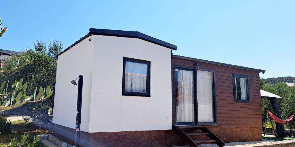 A 32 square meter mobile home is for rent on the island of Premuda, 30 m from the beach. An ideal place for your vacation on a quiet island without crowds. The main port of Krijal is 100 m away. Capacity: up to 4 people, 2 bedrooms (double bed + 2 single beds, can be joined into a double bed). Contents and equipment: air conditioning, Wi-Fi, TV, equipped kitchen (fridge, stove, coffee maker, microwave, utensils), bathroom with shower, terrace with seating furniture and deck chairs, barbecue, outdoor shower, parking next to the house.