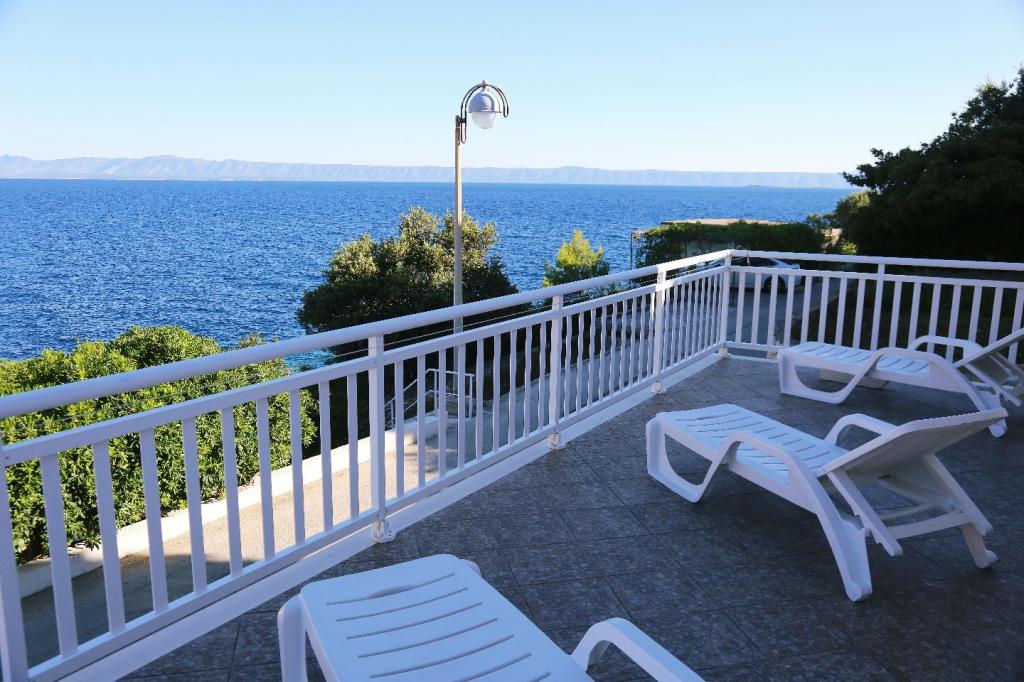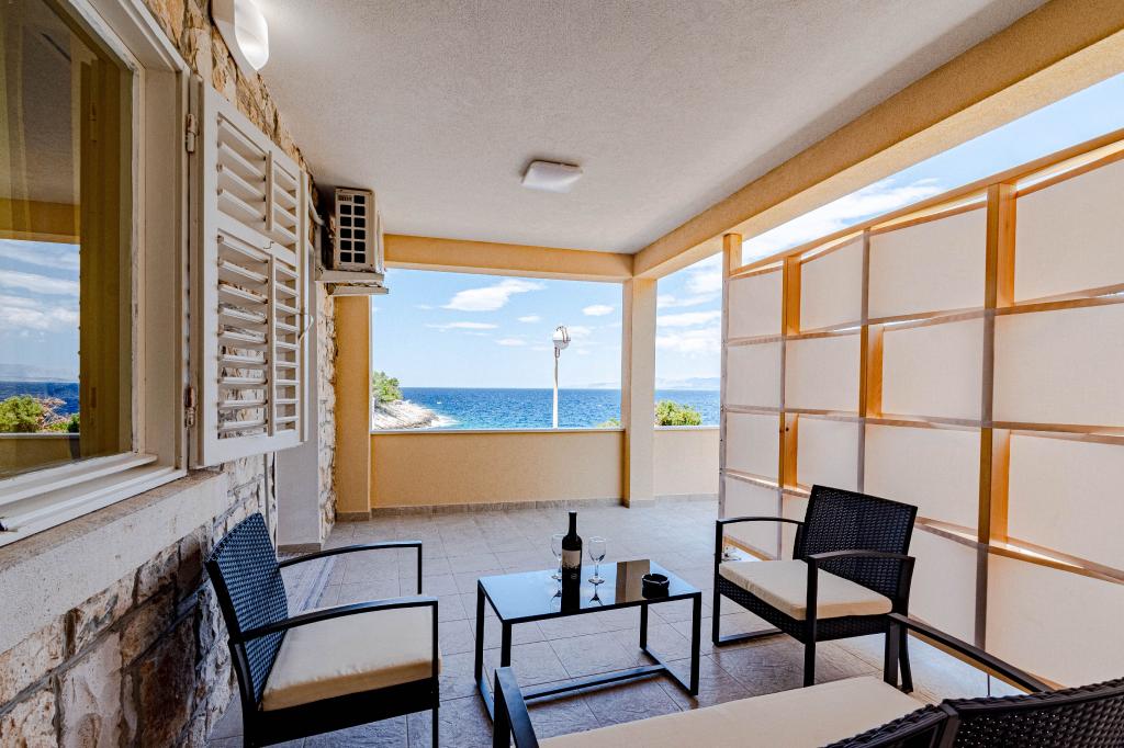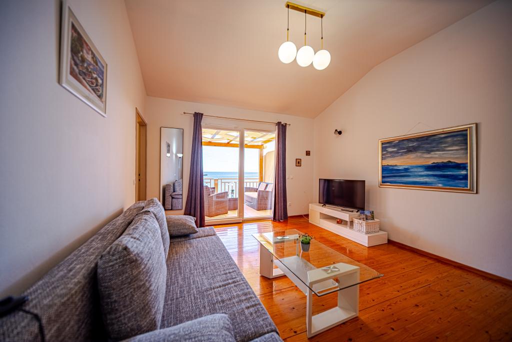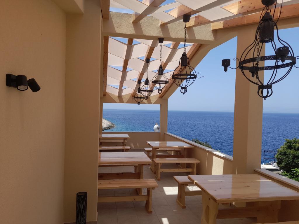 The location is unique, the sea is excellent, the apartment is clean, spacious terrace, excellent view of the sea next to the cafe on the terrace with seating, very friendly hosts, tavern - pizzeria on location with very tasty food and very friendly service. Highly recommended!