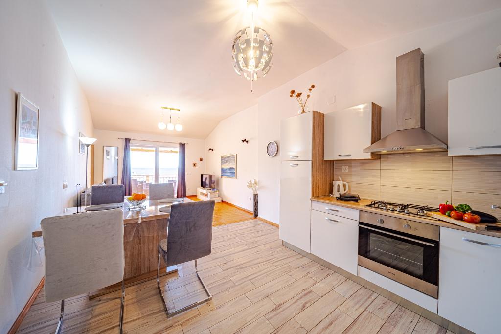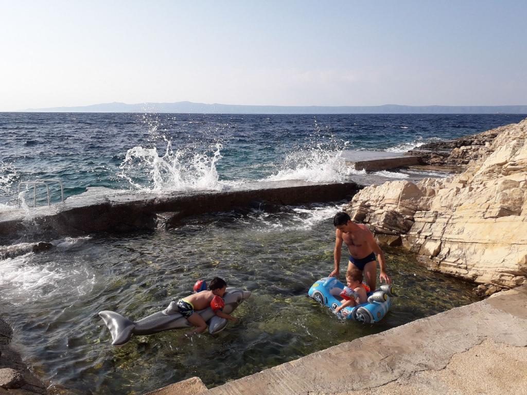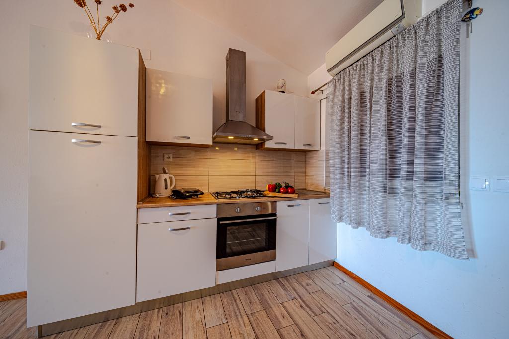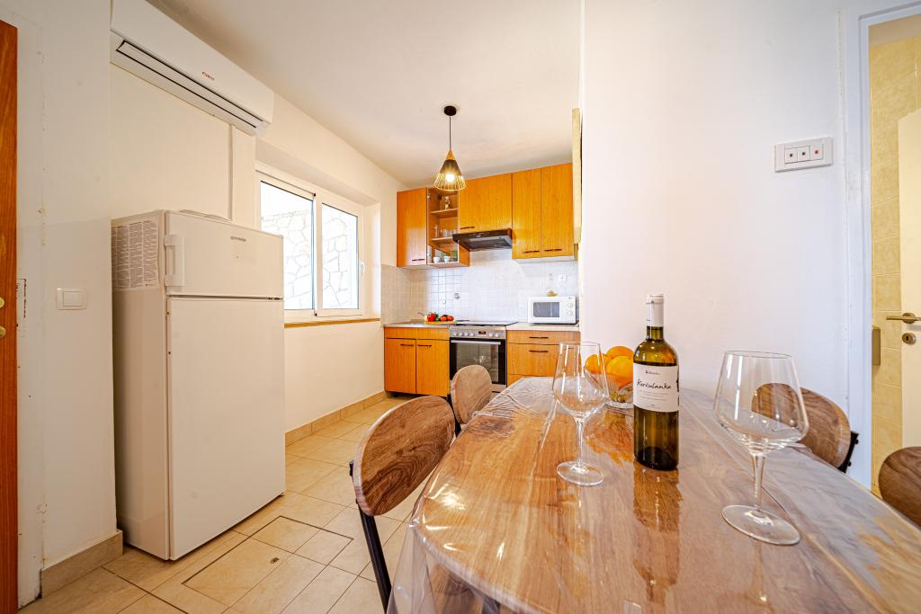 The apartment is in a beautiful, quiet place with a view of the sea and the most beautiful sunset. Ivan and his wife are nice and helpful when something is needed. Wine (black and white) and olive oil were waiting for us in the fridge. Thank you very much