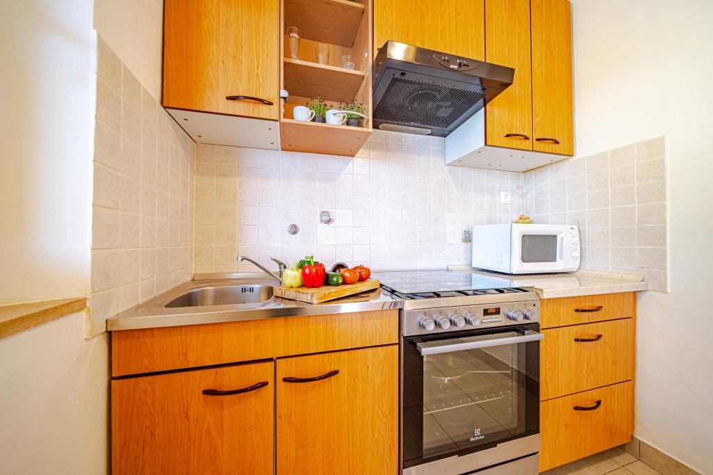 The apartment is great. It has a view of the sea and the sunset. The apartment is clean, tidy and spacious enough for 2. The surroundings are quiet. The hosts are very friendly, helpful and ready to help. There is also a pizzeria nearby where they have very good food.