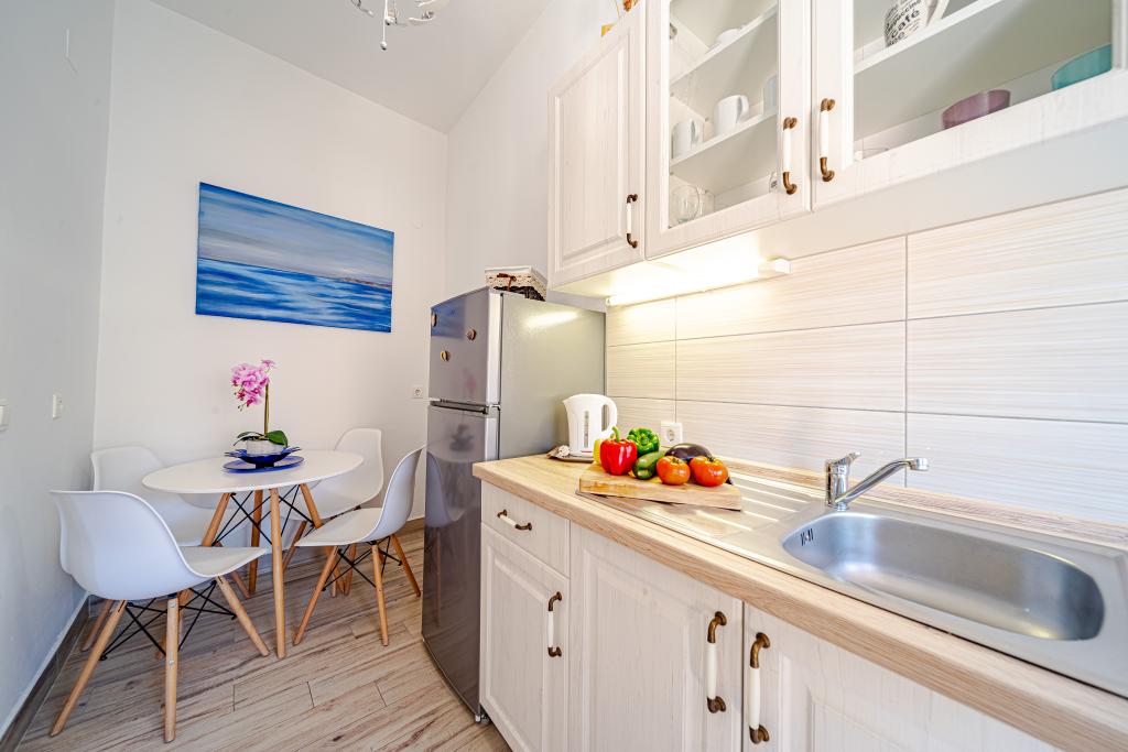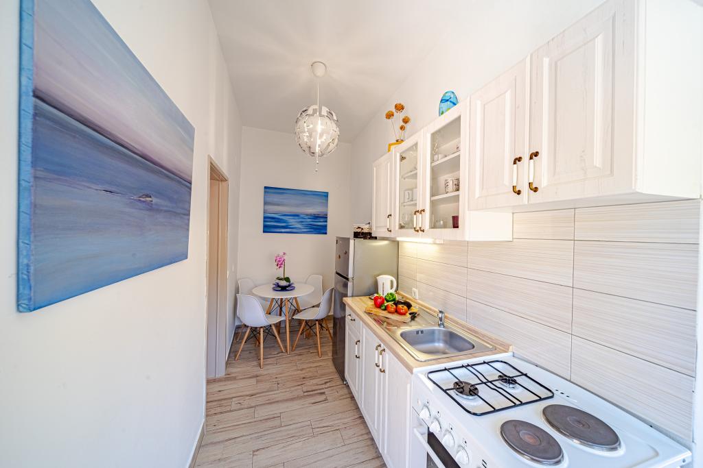 The apartment is great. In a great location, with a beautiful view of the sea and the sunset. It is in a quiet place, which is great for a relaxing holiday. The hosts are very friendly and hospitable. The apartment is big enough for two people, it is clean and tidy. There is a very large barbecue in the back. The beach is very close, just across the road. There is also a pizzeria next door for a great dinner with a view of the sunset. We were very satisfied with the apartment for the second time and would be happy to return.