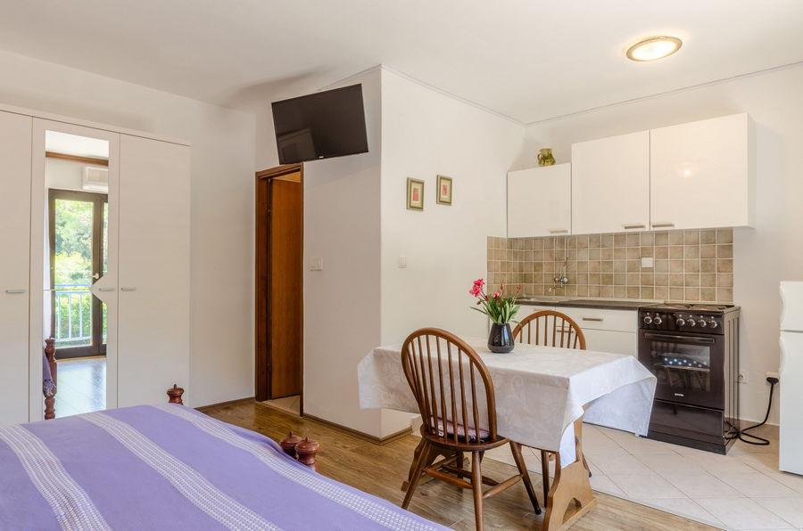 Apartments Kuzma are located in a small picturesque bay on the island of Korcula, near Blato. The house is located in a beautiful pine forest, a little away from the main road, so guests can enjoy the peace and quiet. The pine forest is conducive to an excellent microclimate, which guarantees a pleasant stay in the building and on the terraces of the building. Each apartment has air-conditioning. Next to the building there is a large terrace with barbecue and furniture that guests can use free of charge for socializing. The facility has provided free parking for its guests. It is about 200 meters away from the center of the bay, where there is a shop, two restaurants, a small cafe. There is also a beach volleyball court and a basketball court. Nearby, at a distance of 4 km is a larger place Blato where there are supermarkets, doctor, bank, post office. The facility will welcome you with hosts who will be available to you throughout your stay.