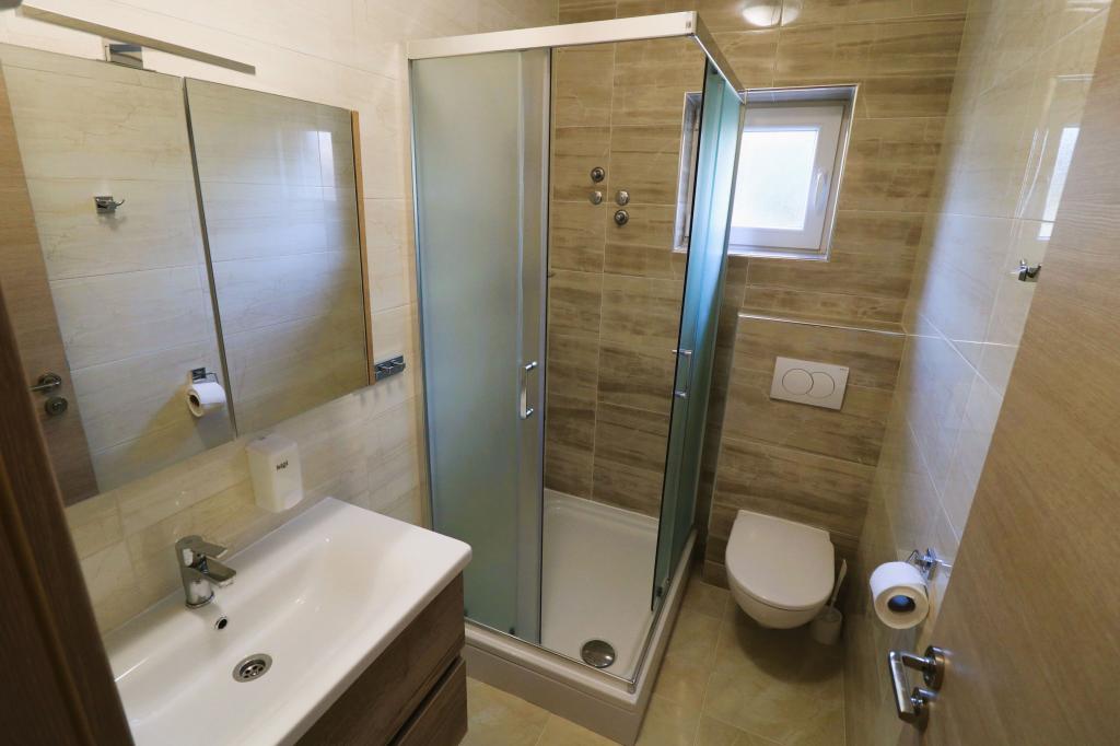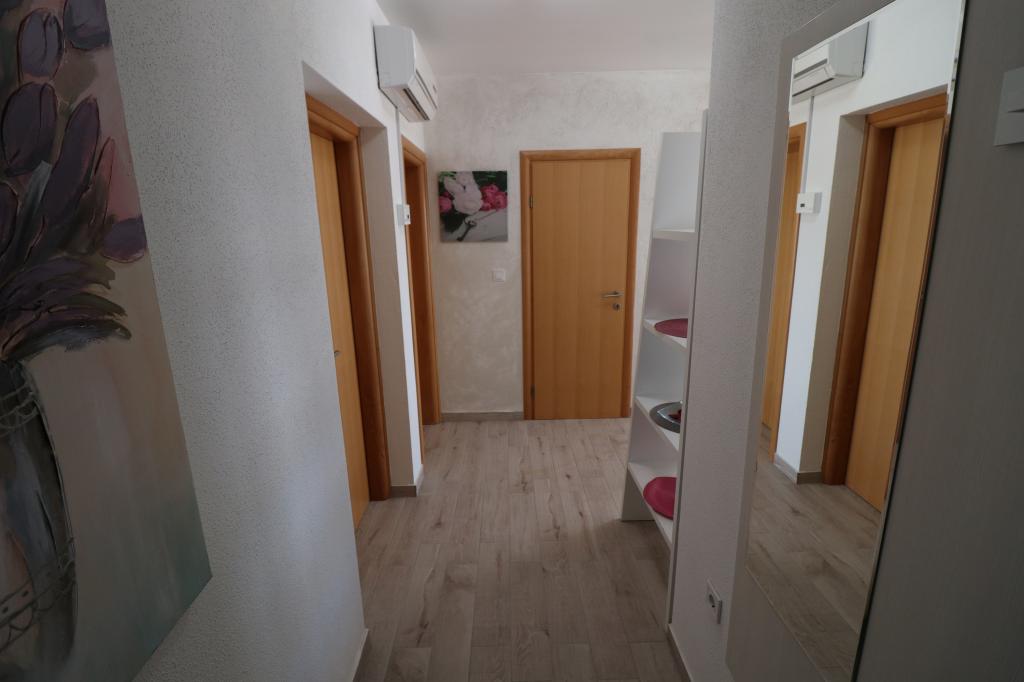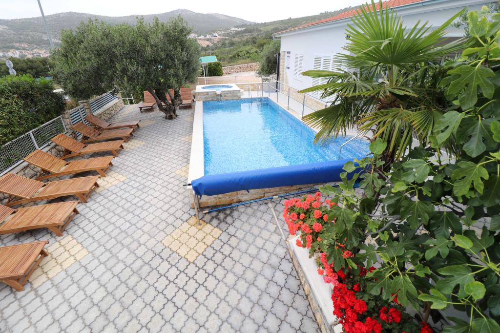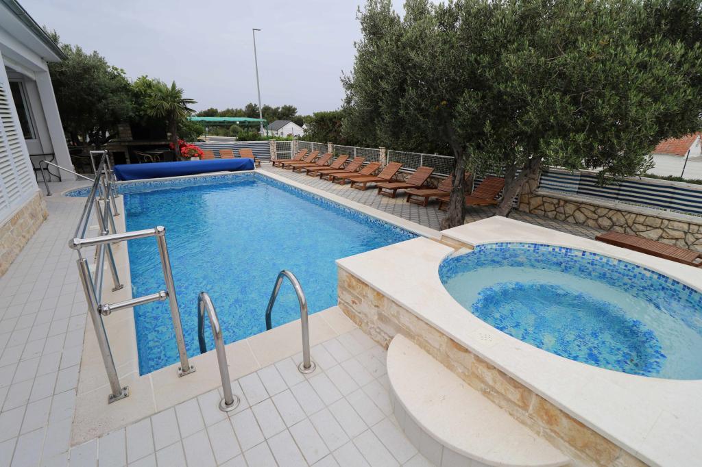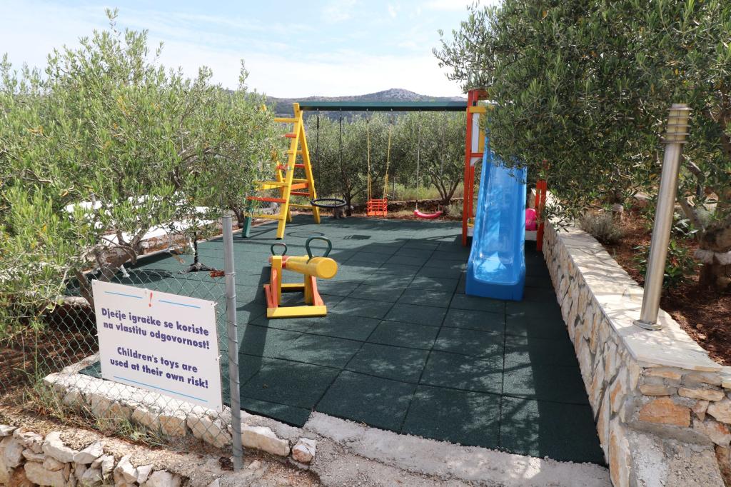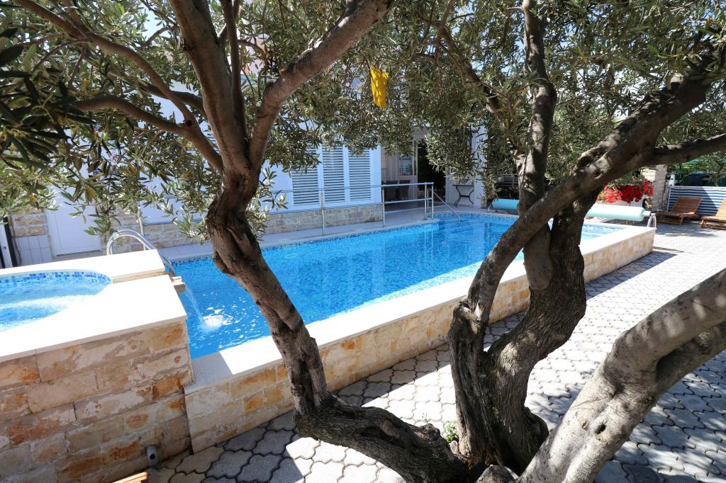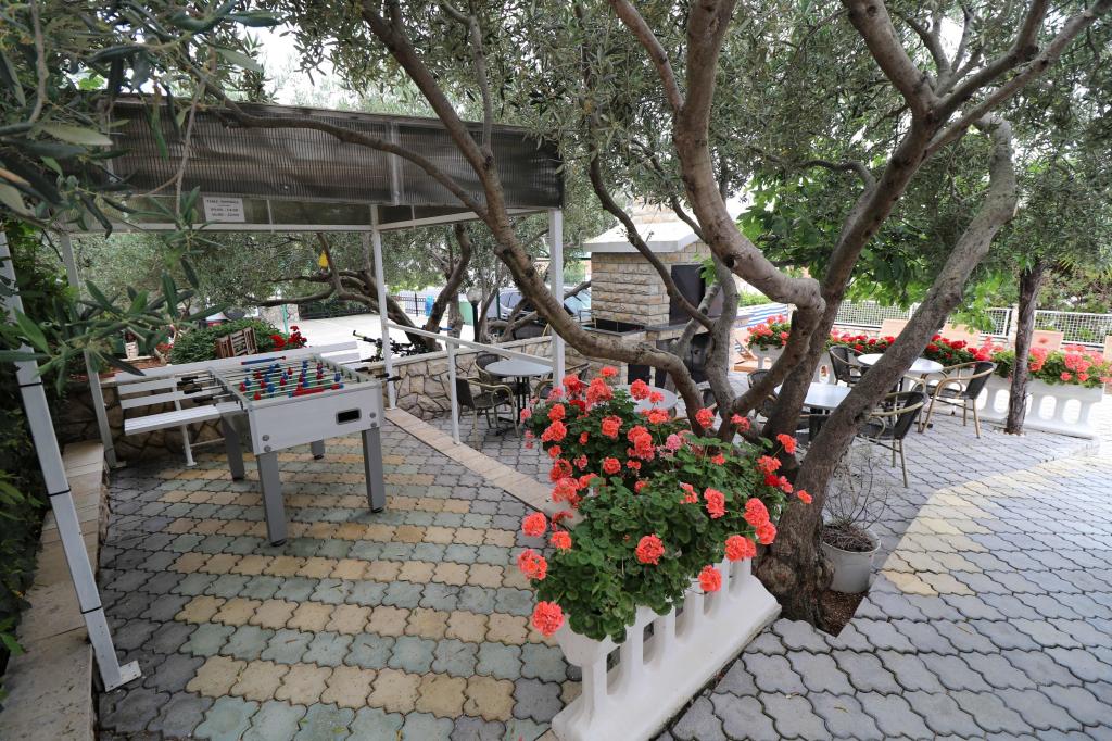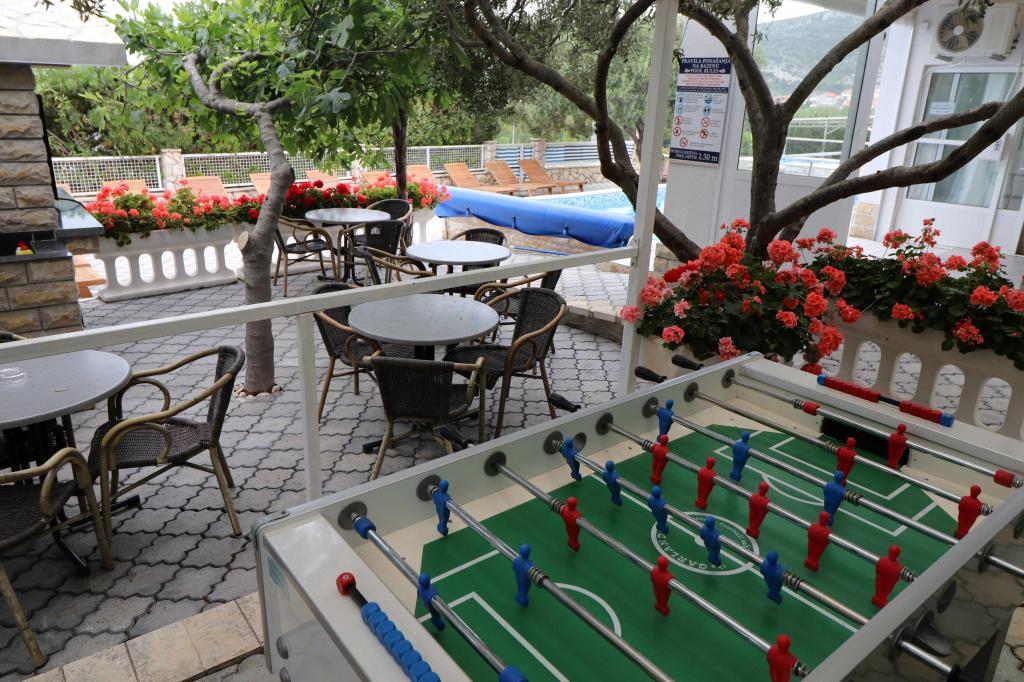 Apartments Bilokapić are located in the immediate vicinity of the Adriatic campsite in Primošten, 25 km south of Šibenik. The two houses are located in a quiet part of Primošten, surrounded by greenery and Mediterranean flora. All apartments are air-conditioned, with a modern interior. Their balconies offer a beautiful view of the Šibenik archipelago. The comfort of the accommodation will also be enhanced by the 2400 m2 courtyard, where there is a swimming pool, a hydromassage pool, sun loungers, a toilet and an outdoor shower, table football, table tennis, tables and chairs with a garden barbecue. The parking lot is mostly covered with shade. The coast and the beach are about 100 meters away. The beach is diverse, pebbly in combination with gentle rocks, with most of it in the shade of pine trees and our guests can use it at no additional charge. There is a supermarket, restaurant, cafe bar, and pastry shop in the immediate vicinity. The center of Primošten with its rich tourist content is about 3 km away. Krka National Park is about 40 km away, and Split Airport is about 45 km away.