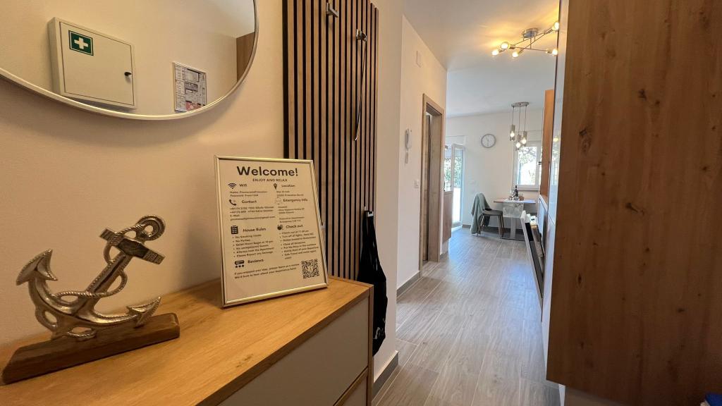 Apartment Promenada is located in the quiet bay of Dolac, three kilometers from Primošten. The area is known for its beautiful, less crowded beaches with a combination of sun and shade of pine trees and very clean sea. Along the coast there is a well-maintained promenade about 17.5 kilometers long, which connects Dolac with Primošten and is suitable for walking, jogging and cycling. Nearby there are restaurants and bars with a sea view. The location is easily accessible, and the nearest airport is in Split. In the vicinity there are the Krka and Kornati national parks and the city of Šibenik with cultural attractions. There are also shops and bakeries. This is an ideal place for a peaceful holiday by the sea.