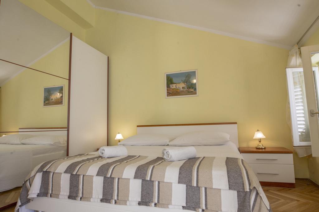 If you are in the old historical core of Primošten and decide to walk from the main square in the direction of the local church, after two minutes (or a little more if you are welcomed by the numerous souvenir shops and restaurants in the street) you will come across the Soža apartment. Although the apartment is located in the very center of the city, the nearest beach is only a minute's walk away. The apartment is located on the first floor of the house where the hosts stay during the year. The building contains two spacious bedrooms, a kitchen, a bathroom, two terraces and a living room. Guests are provided with an internet connection and a parking space near the apartment. The facility was recently renovated and equipped with modern equipment to provide guests with the best possible atmosphere. The apartment is spacious and offers a lot of natural light. It was created for rest and complete relaxation.