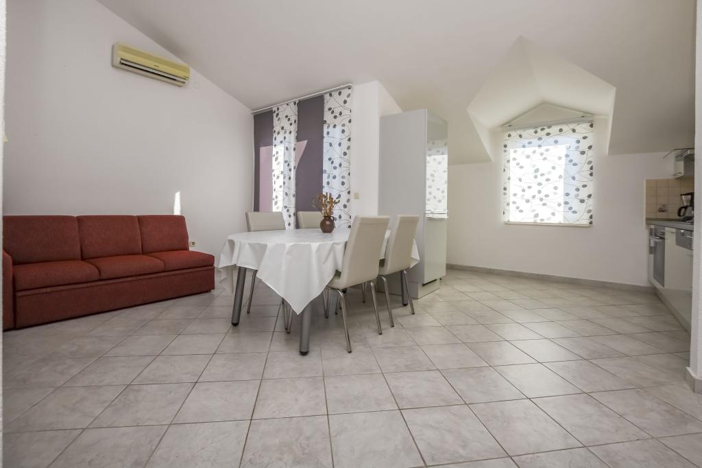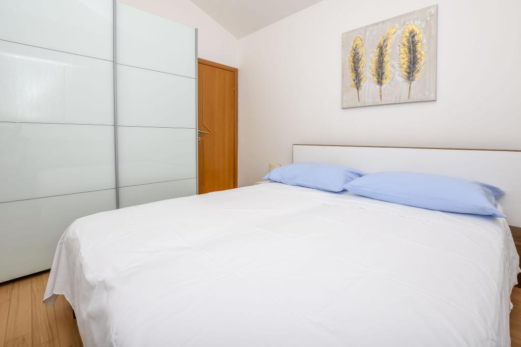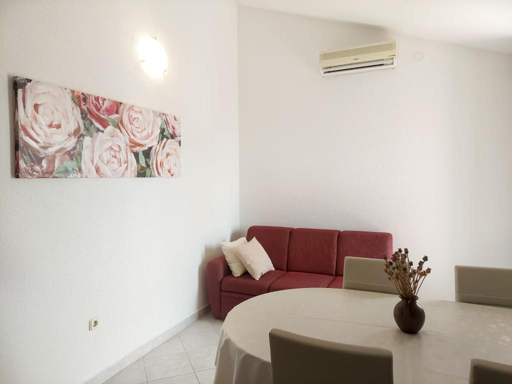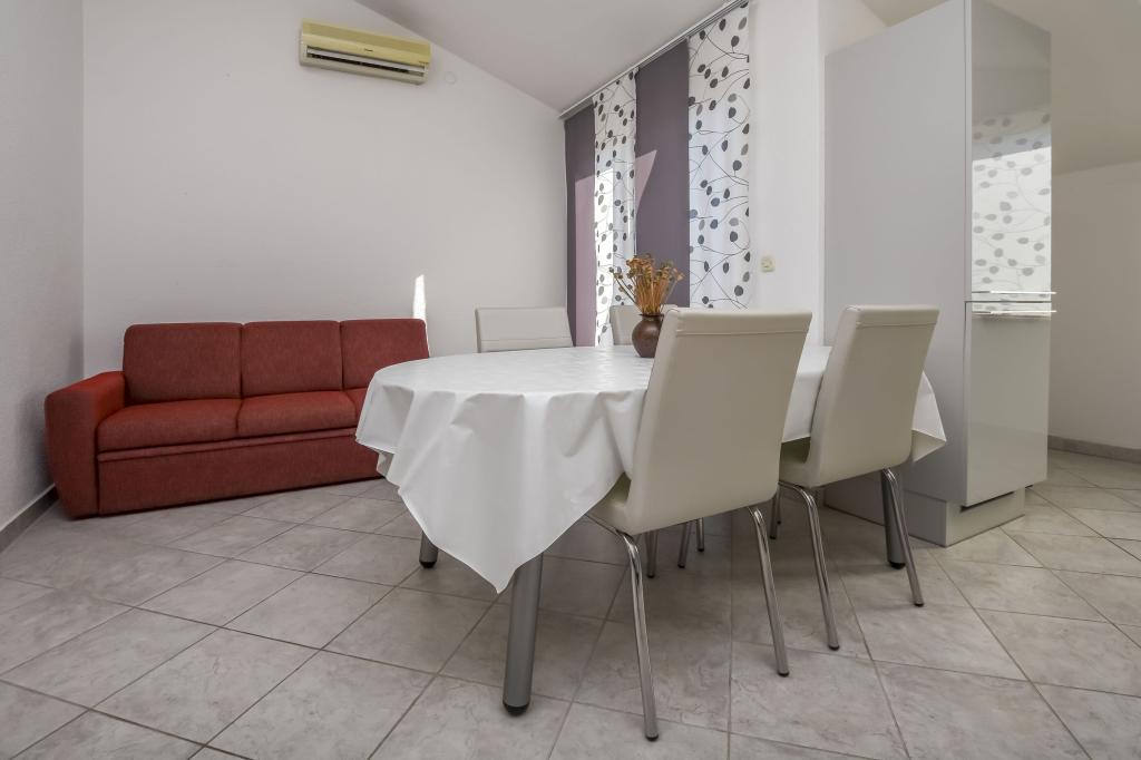 Apartment Zdravka is located in a quiet part of Primošten, just a few minutes walk from the main beaches and the city center. It is located on the 1st floor and consists of 2 bedrooms, a bathroom, and a spacious kitchen with a dining area. The apartment has a balcony with a partial sea view. It is equipped with a refrigerator with a freezer, an oven, a dishwasher, a microwave, a SMART TV and wireless internet. Free parking for 1 car is right in front of the house.