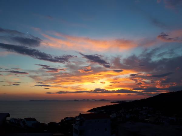 Picnic and after a May Day. A beautiful and above all quiet place. Beaches at a distance of 300-400 meters, there are also pubs where you can easily eat while admiring the sunsets. A great place to relax with children and animals - we were here with two cats and there is no problem or extra charges. There is everything we needed - a fully equipped kitchen, wifi, TV, grill, air conditioning and during this period fragrant roses at the balcony. To welcome a smile and tinctures to try. The host - very nice and helpful (we had a small problem with the car but Tata mechanic helped us instantly). We are in Croatia for the third time (previously - Tucepi, Igrane -Seline) and the price we pay for these moments of silence and rest is the lowest taking into account the standards. There are places worth of rest and silence and views, especially Gospa of Loreta (in the day and evening). are close to the main shops: konzum 10 min ,, tommy 12 and what the most important fish market (delicious grilled) 20 min, so why not want more Thank you very much for your hospitality