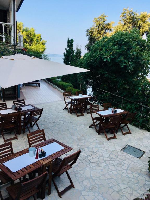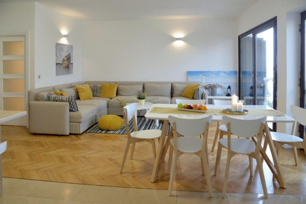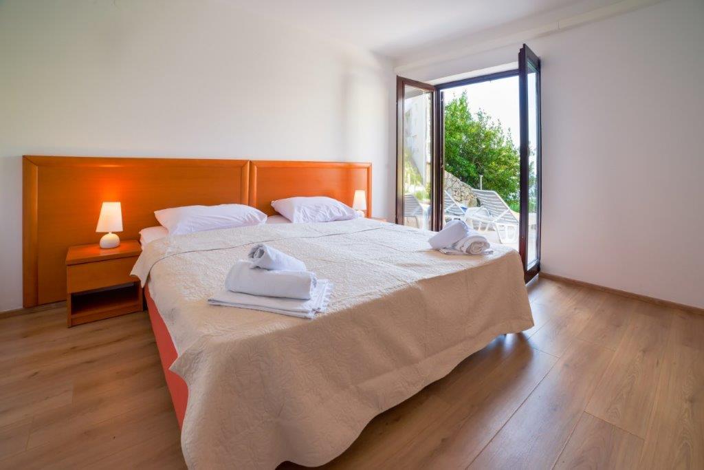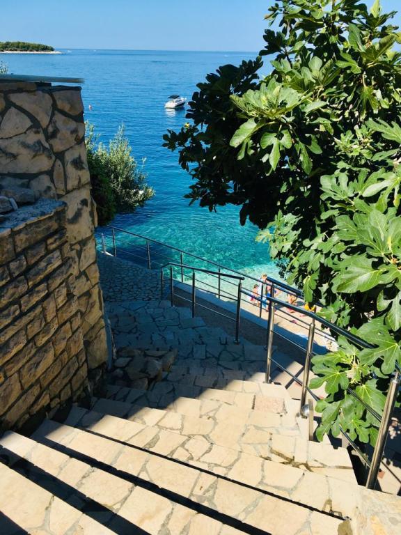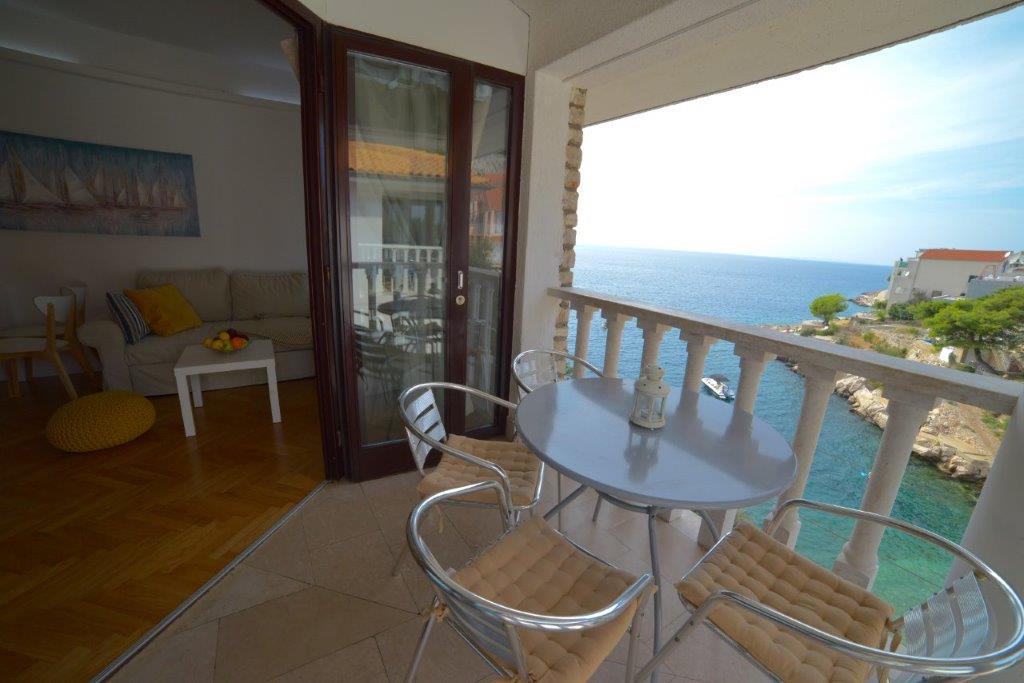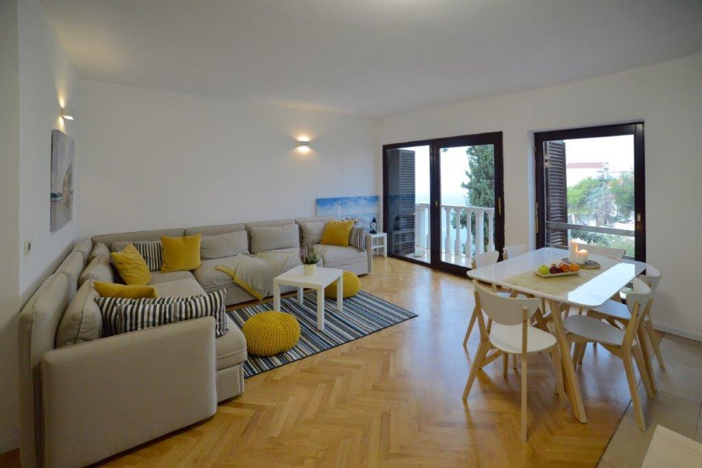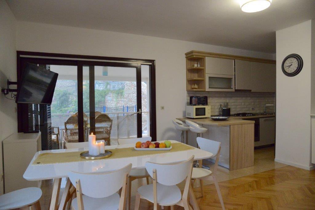 The apartments are located by the sea, first row to the sea, with a beach where guests can use the beach deck chairs. From the center of the center we have just 1000 meters away. The center of Primostena can be reached by the sea. This is a nice place to spend your vacation!