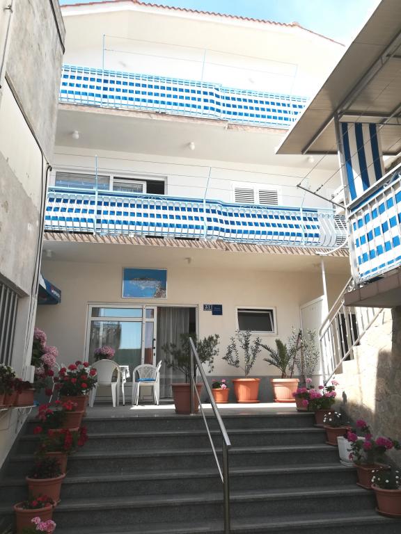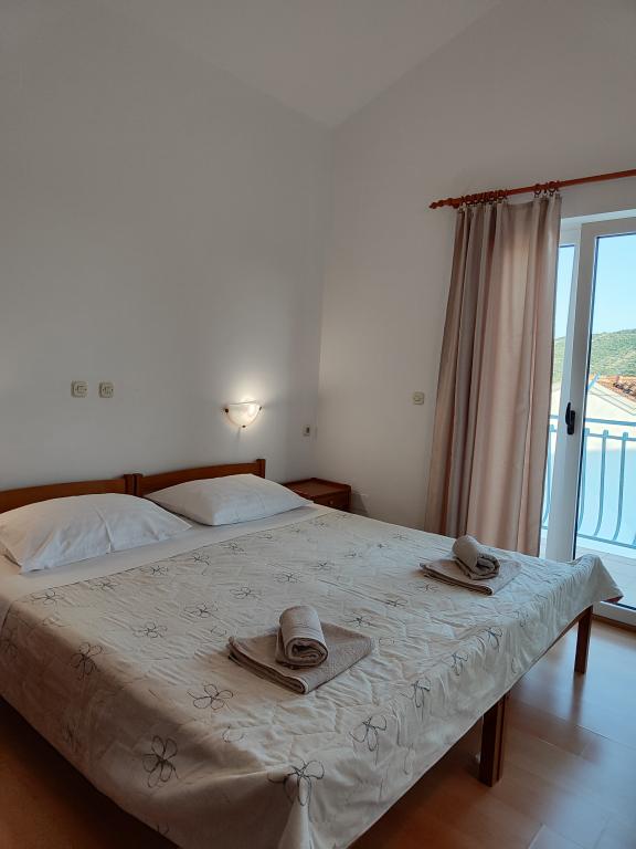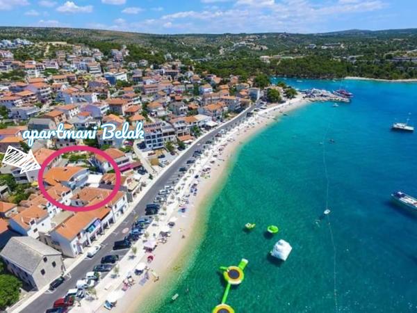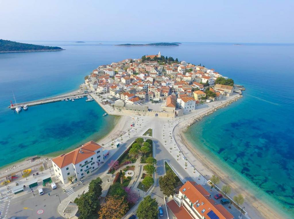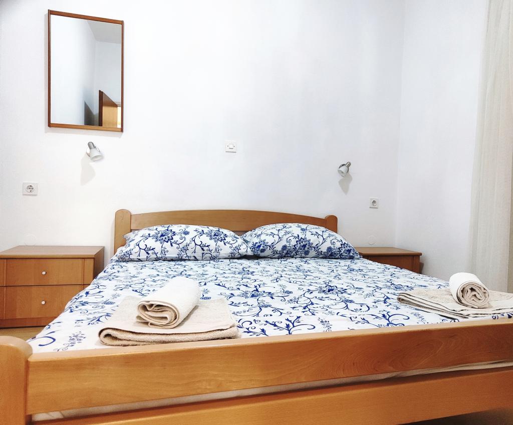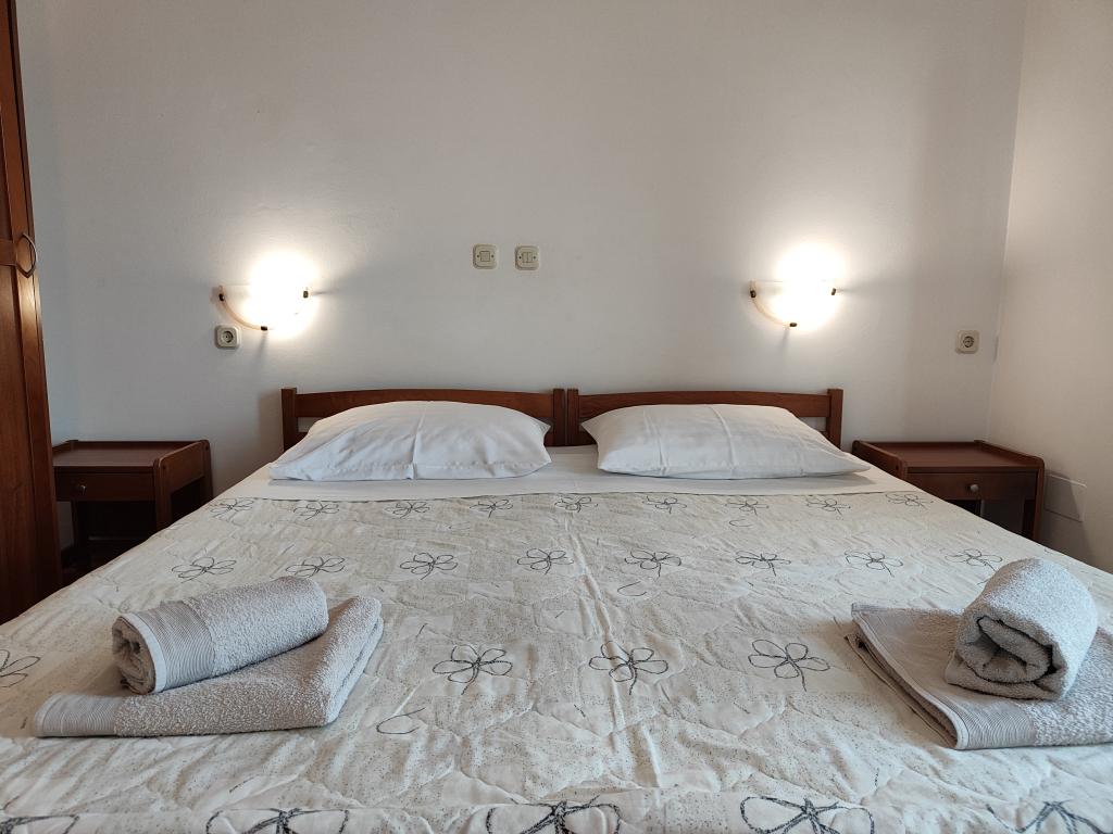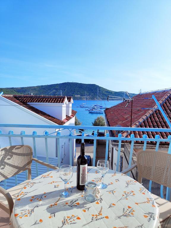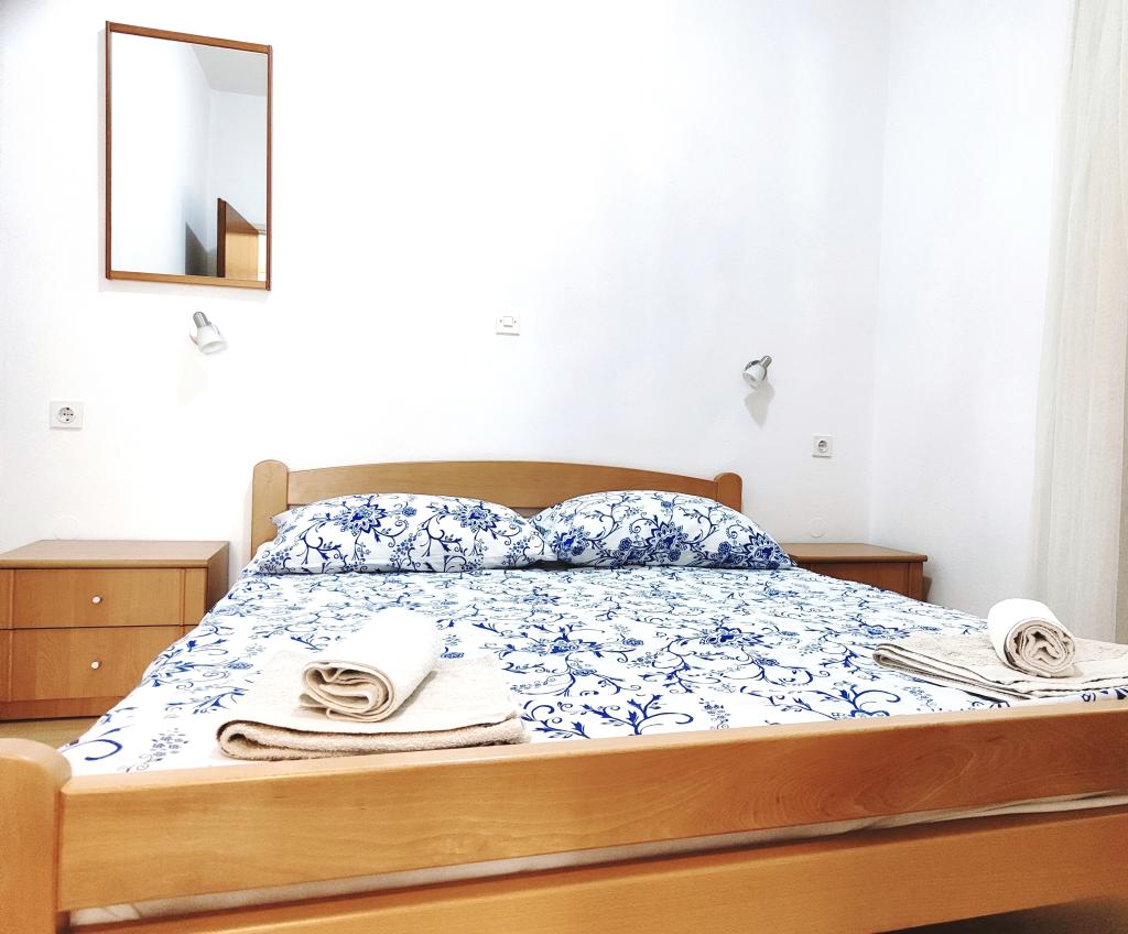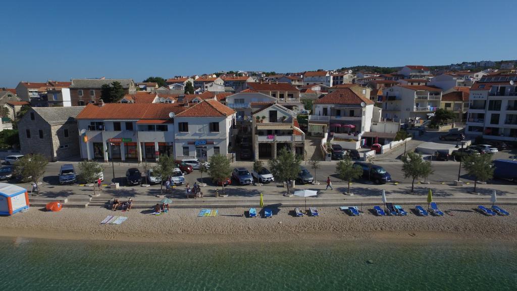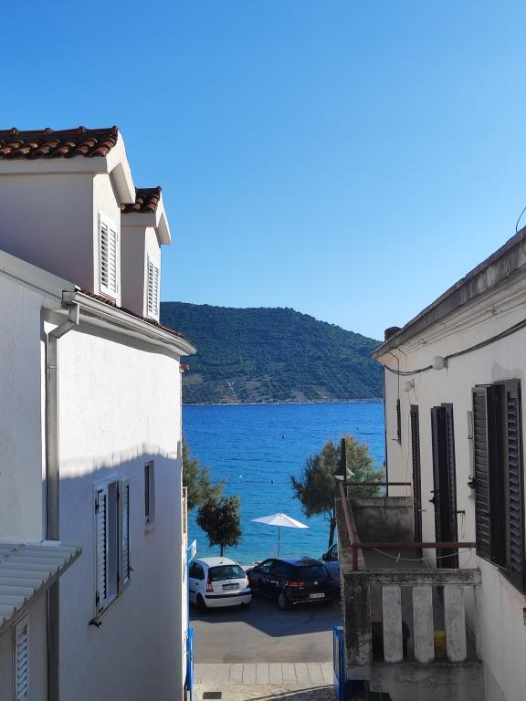 The apartments are located seafront in the family house. The house is a beach overlooking the old place. Parking and Wi-Fi is free.