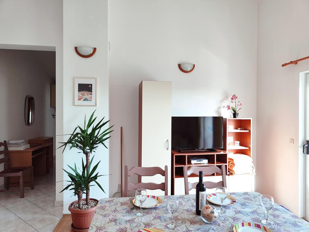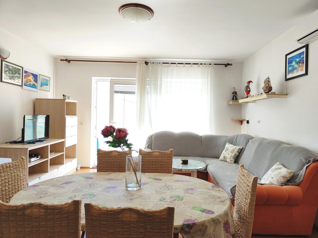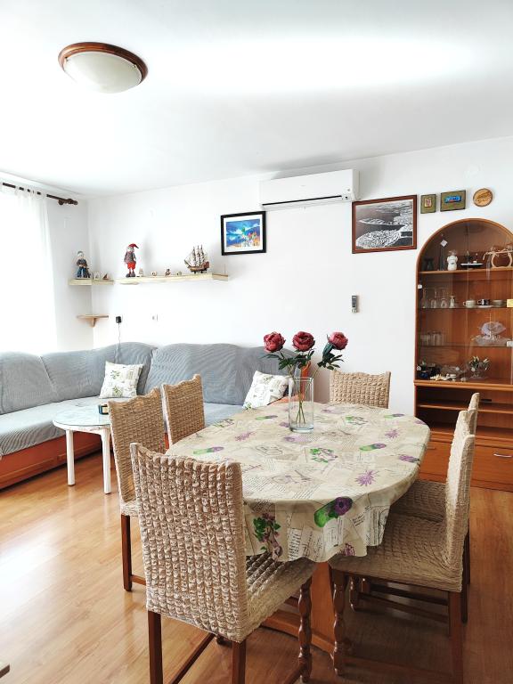 The apartment may not be the newest, but very clean and in very good condition. Very spacious and well equipped. Great location, very close to the beach and the town center. Very friendly and willing to help hosts with whom you can buy great home wine and rakija.